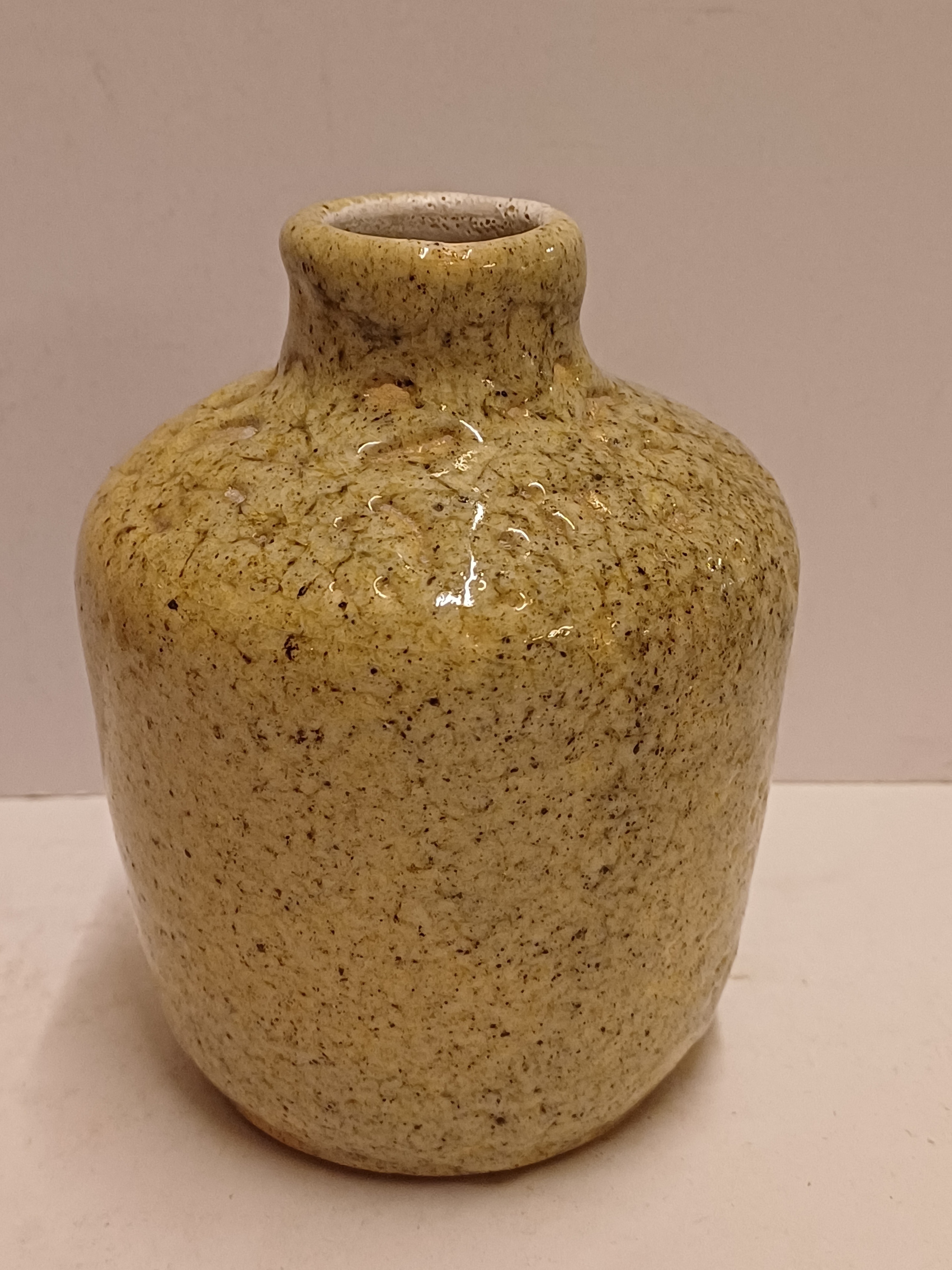 Earthenware turned vase with thick beige glaze. Bottom signed and dated 1945.