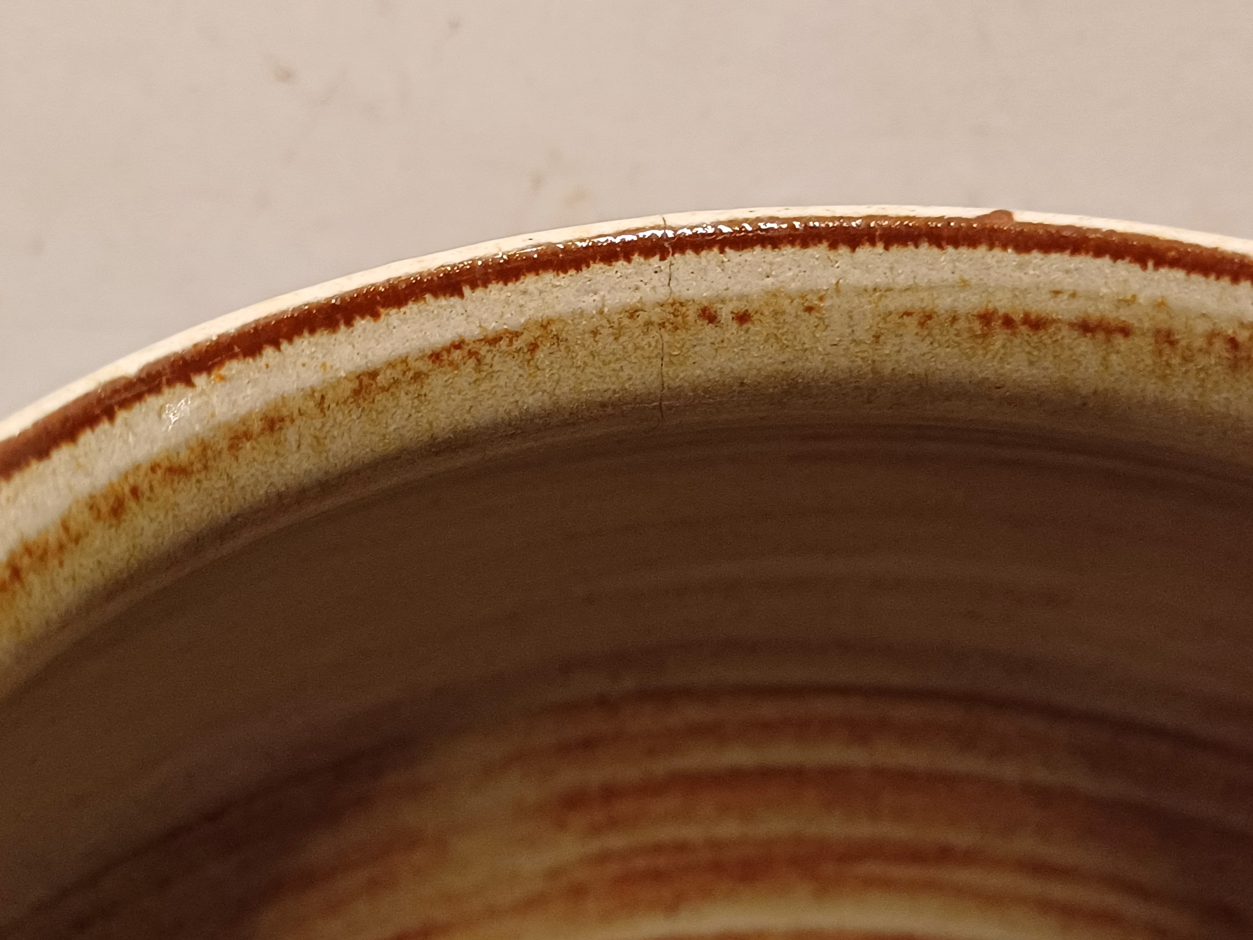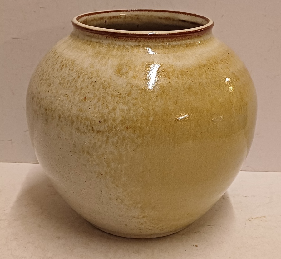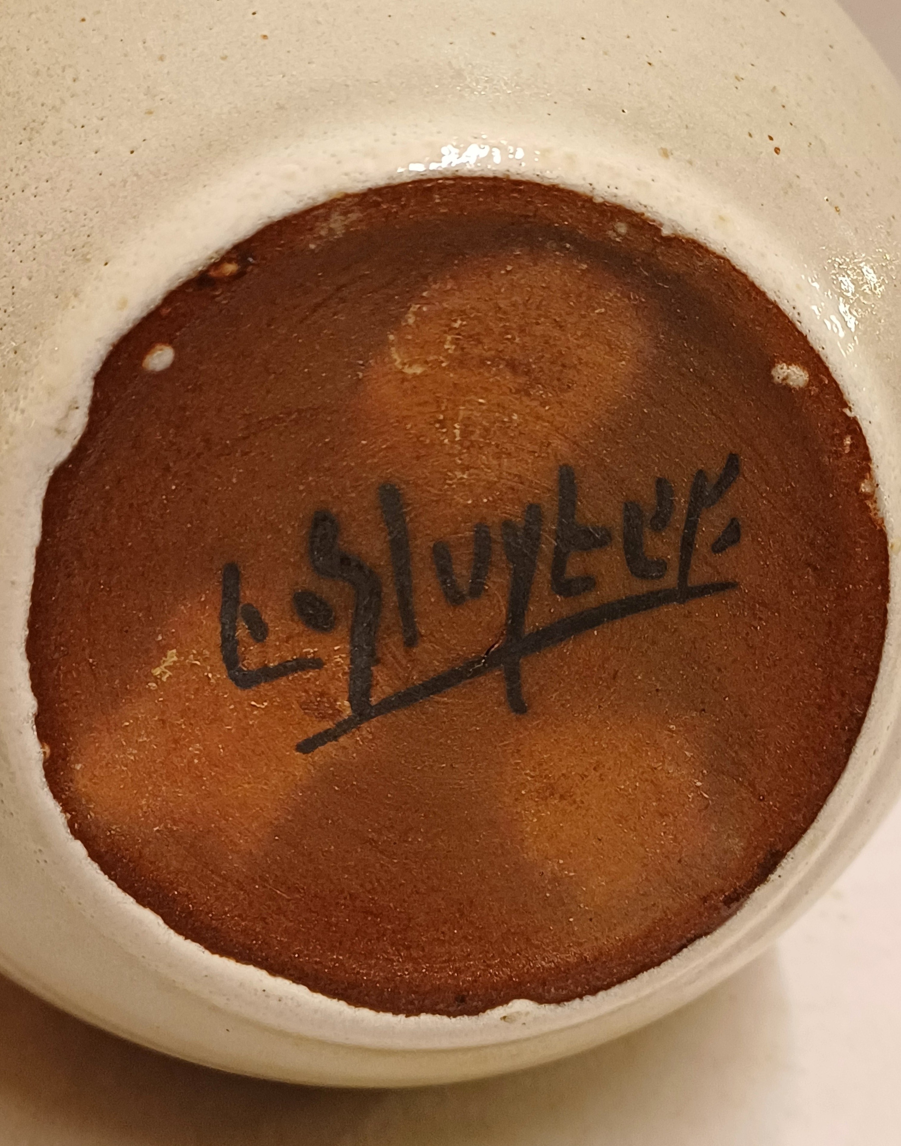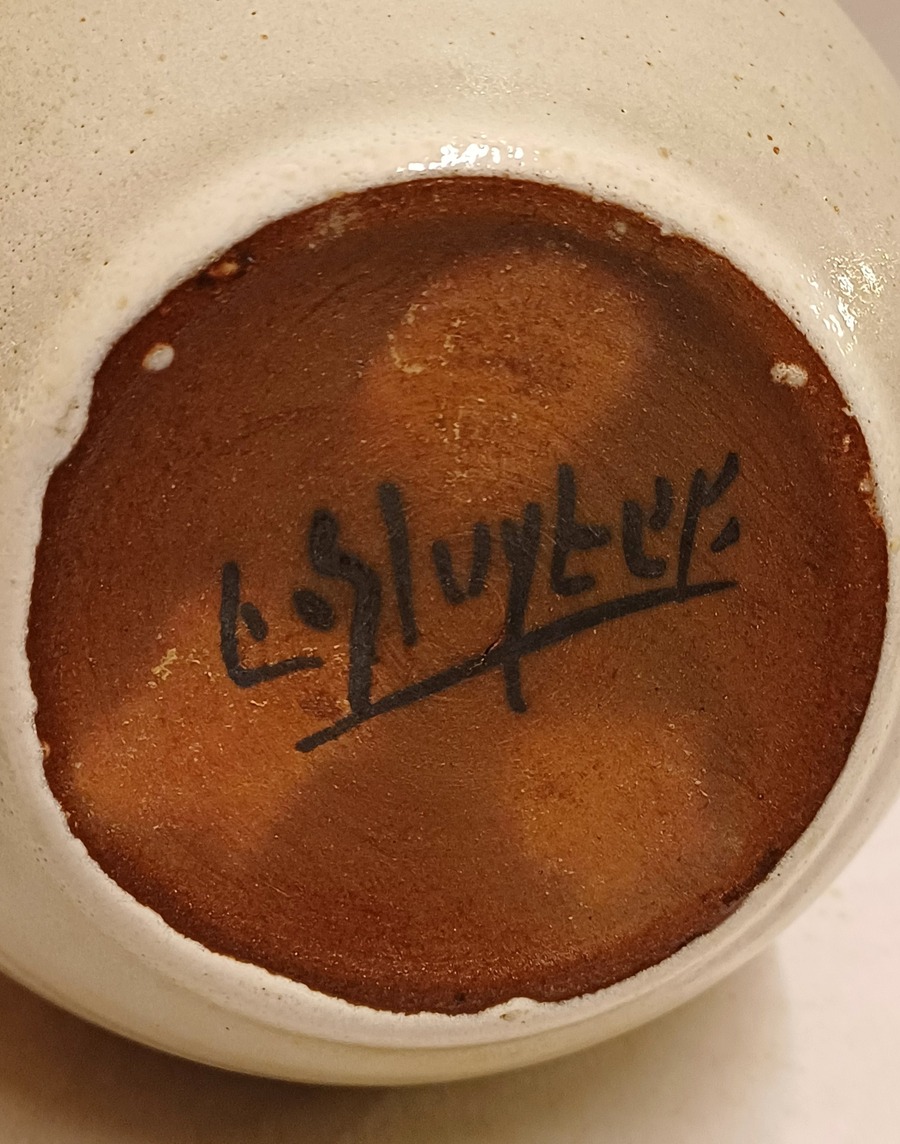 Handgedraaide vaas met lichte galzuur in bruin grijs tinten. Onderzijde voluit gesigneerd.