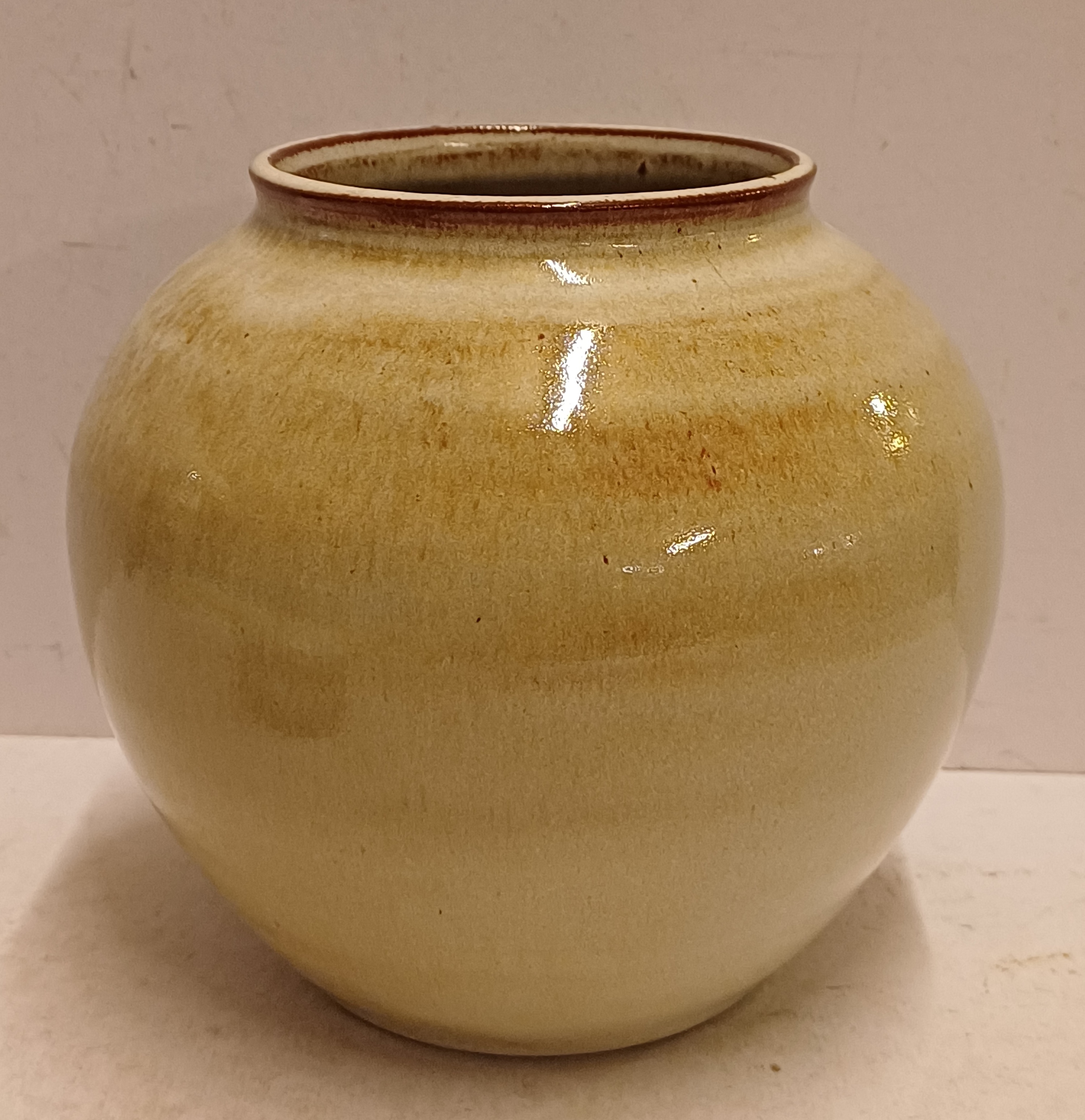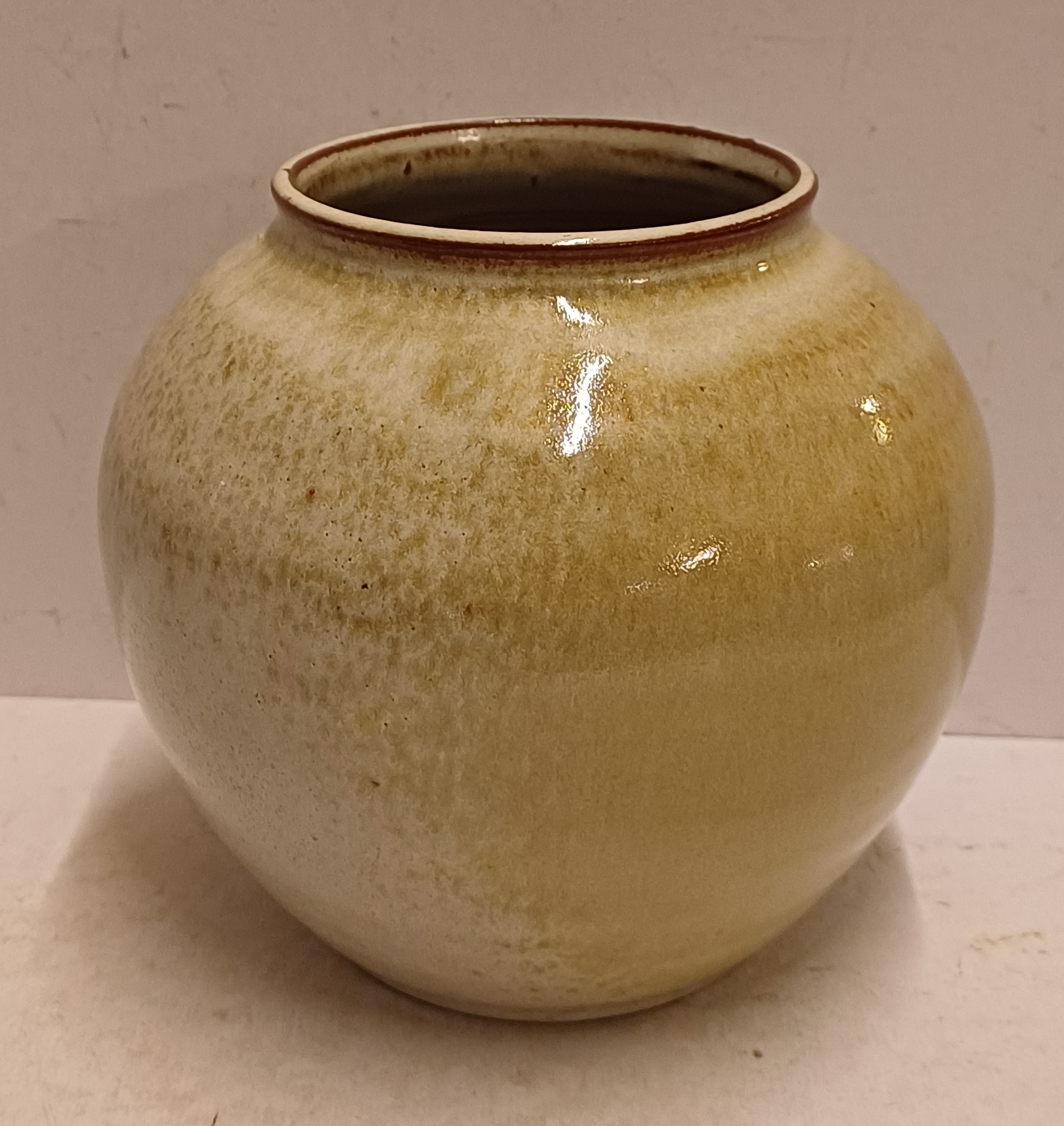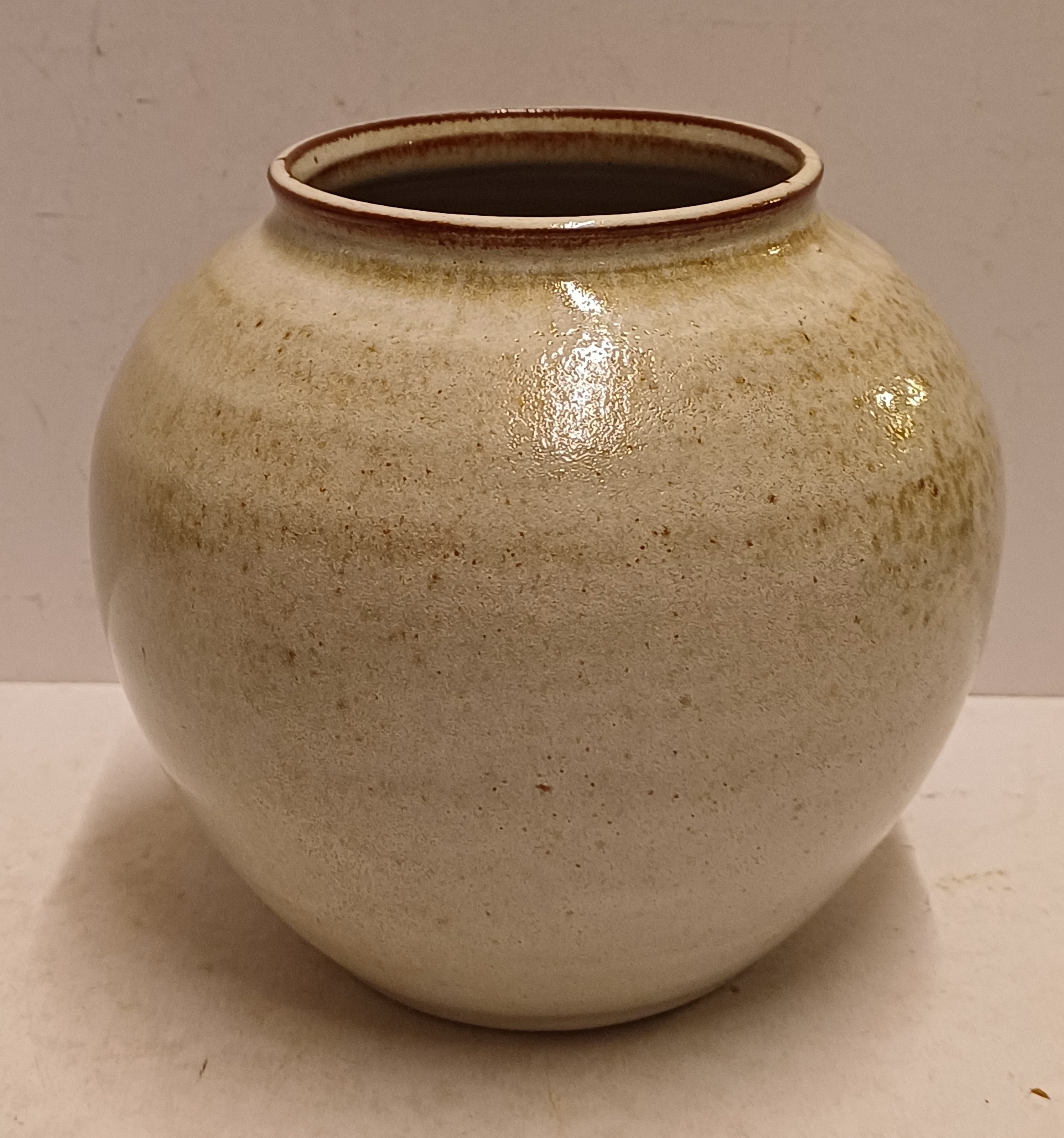 Handgedraaide vaas met lichte galzuur in bruin grijs tinten. Onderzijde voluit gesigneerd.