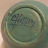 Handgedraaide vaas met zeegroen glazuur. Onderzijde met signatuur in blauw.