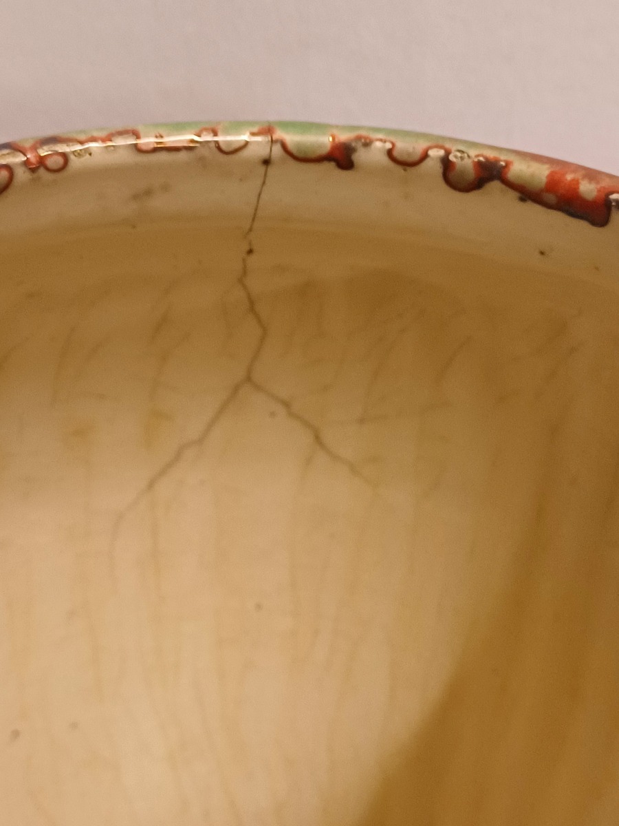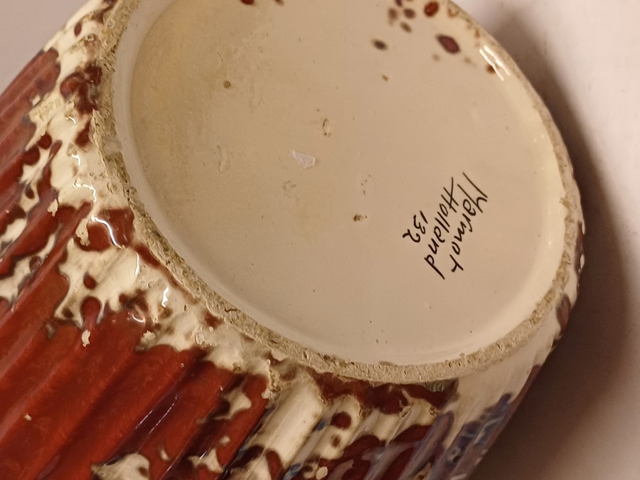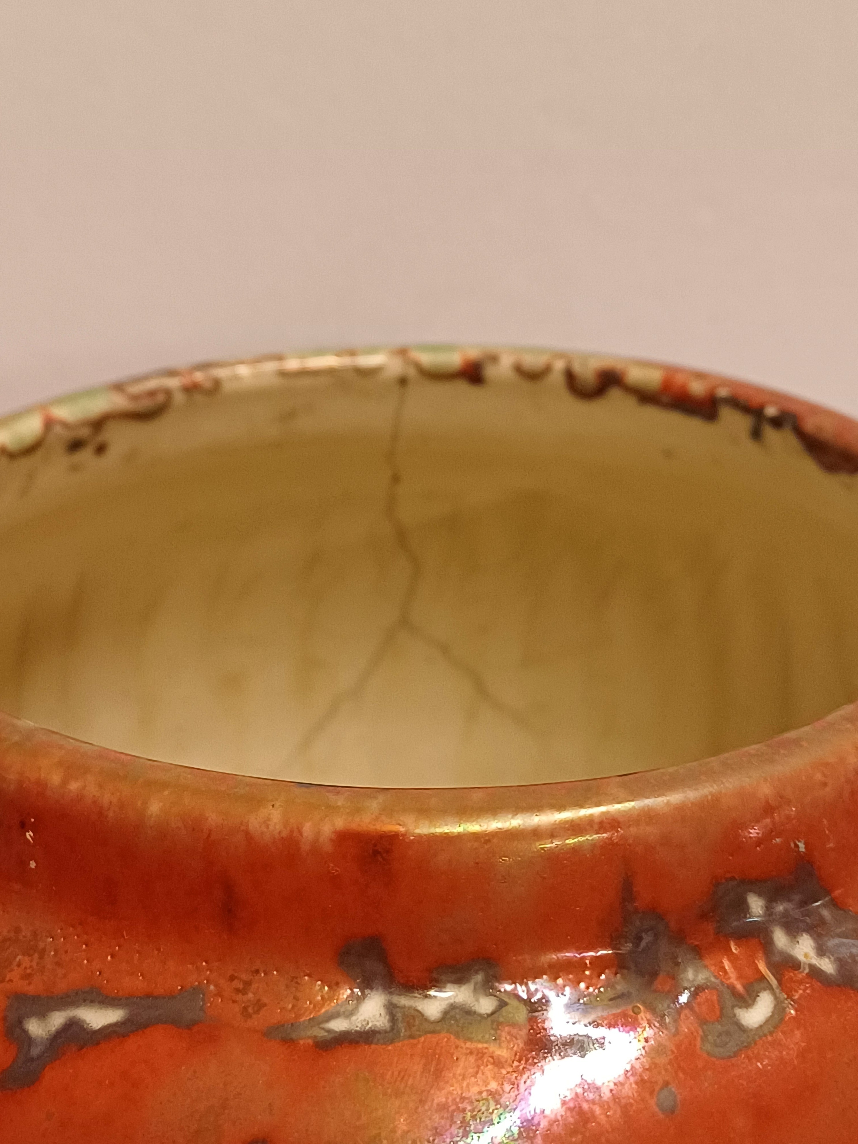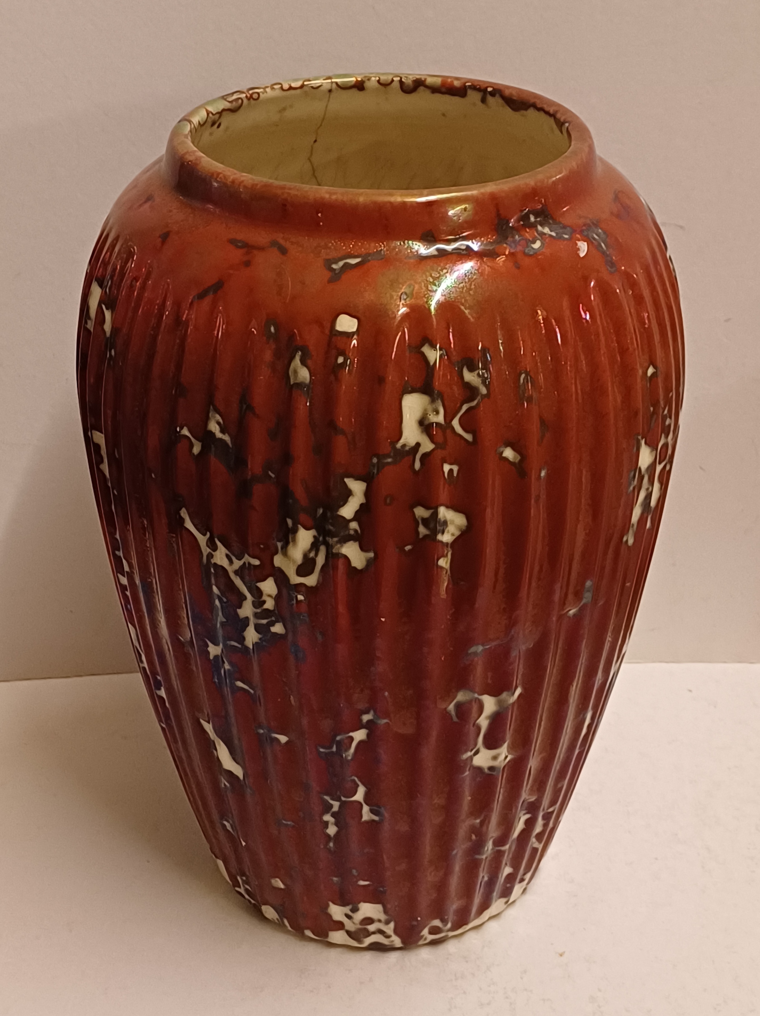 Grote vaas met rode reflet metalique glazuur. Onderzijde met fabrieksmerk.