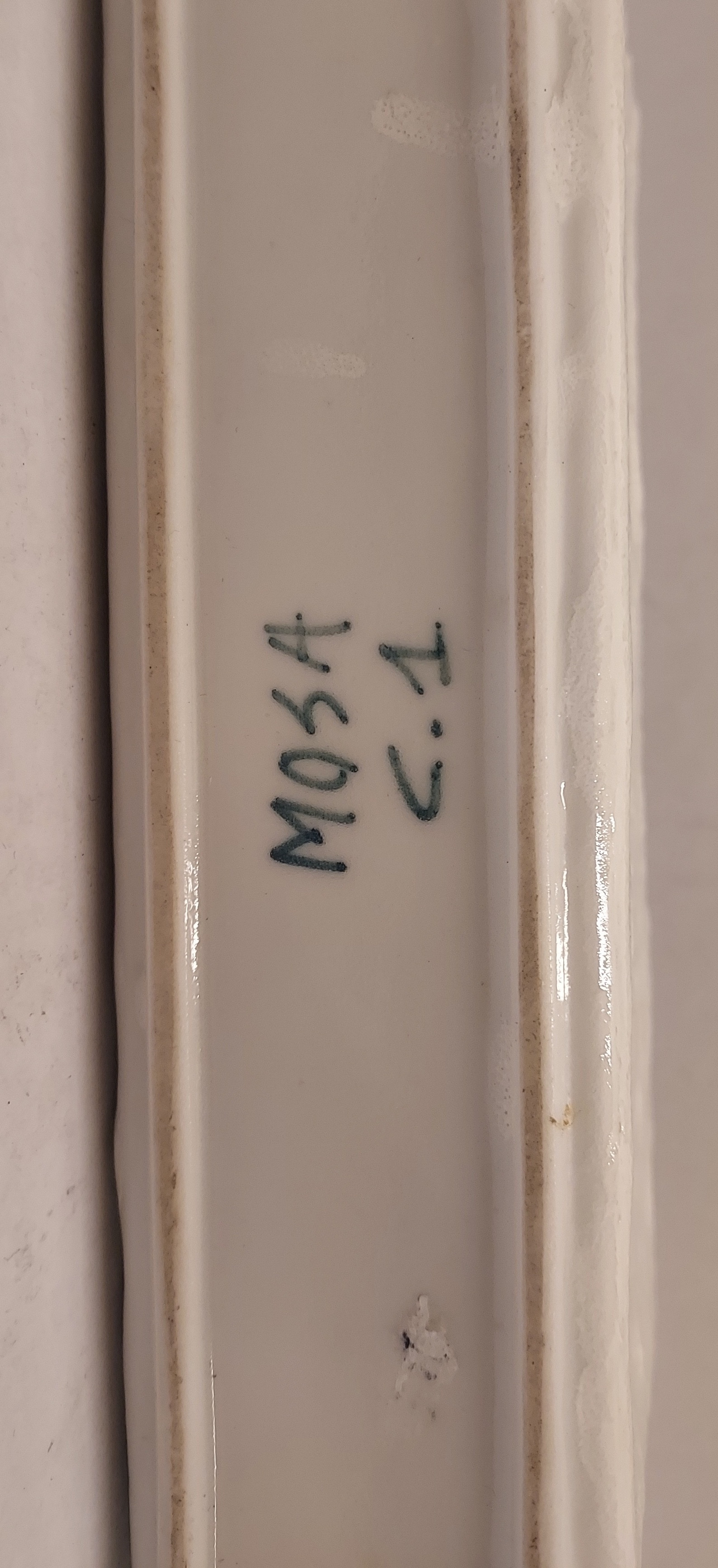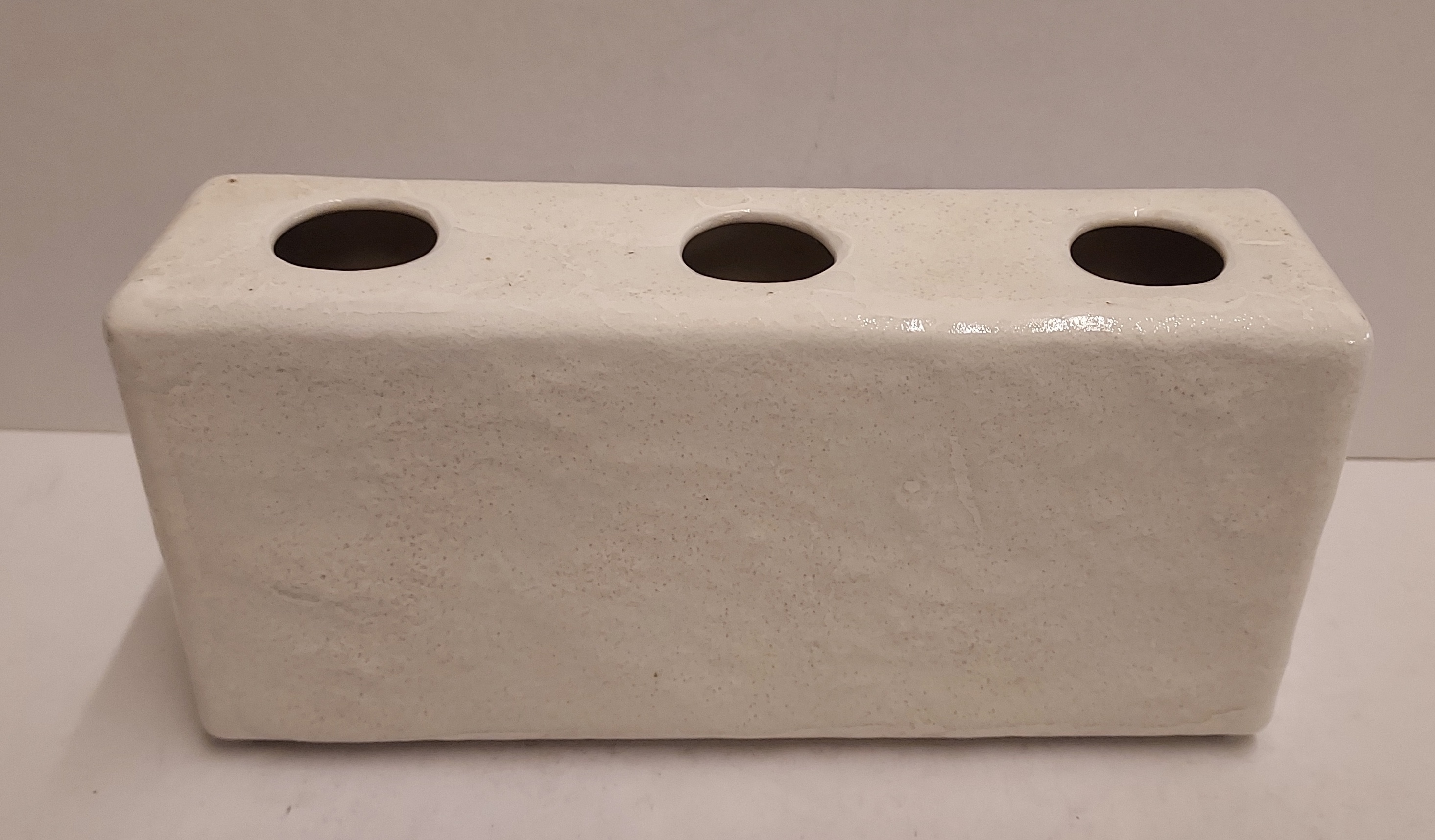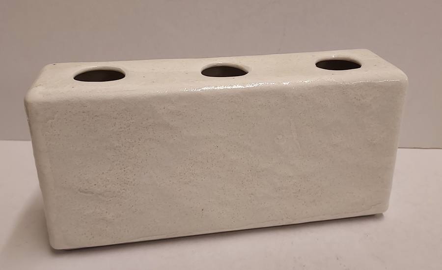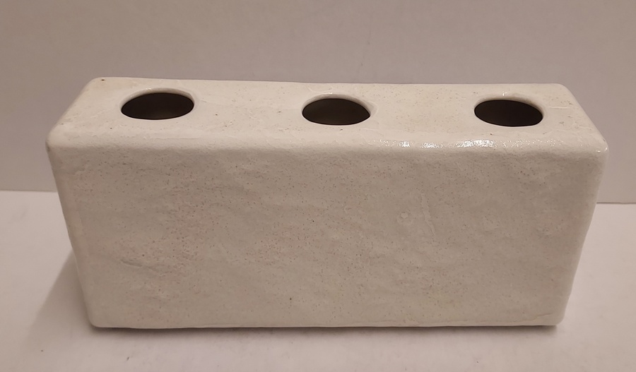 Rectangular porcelain vase with 3 openings. Bottom marked Mosa C.1.