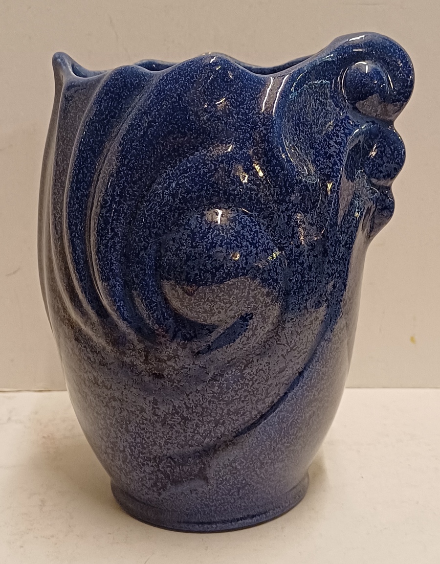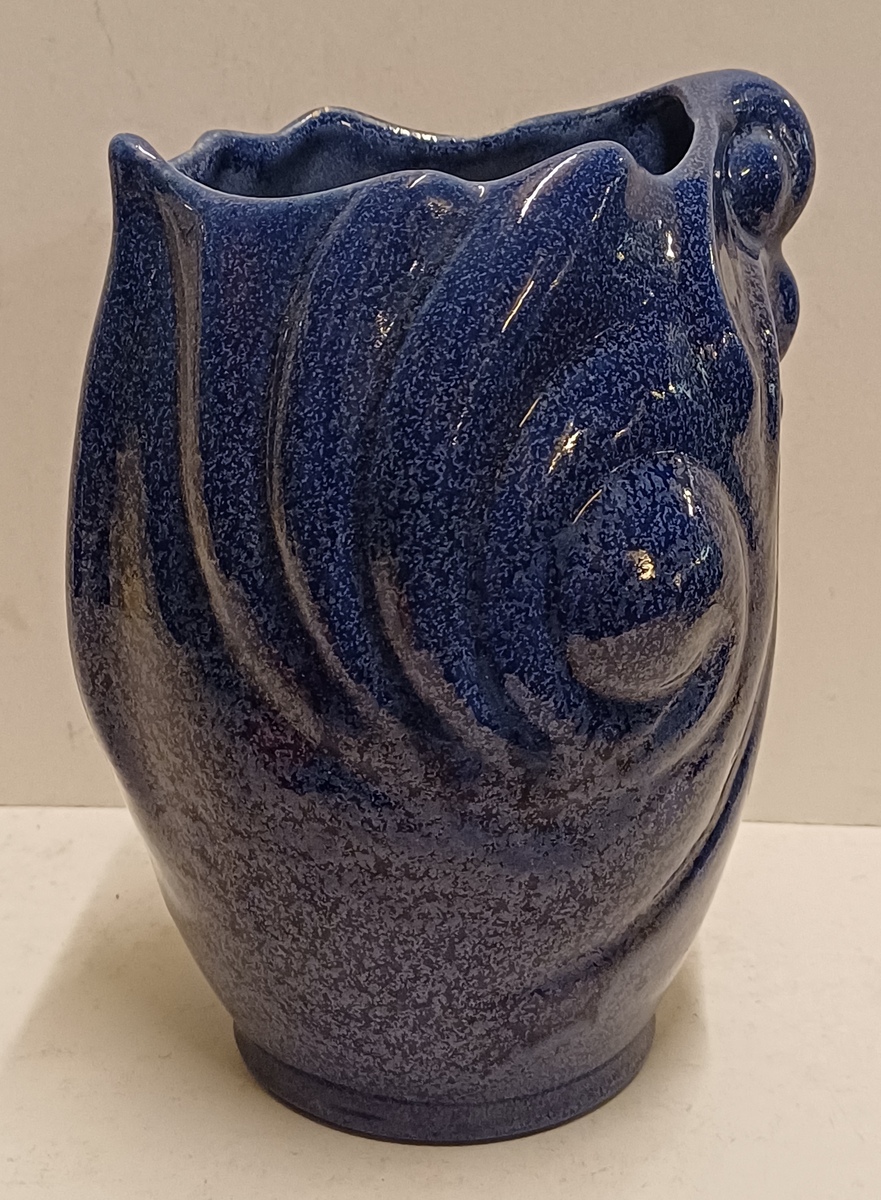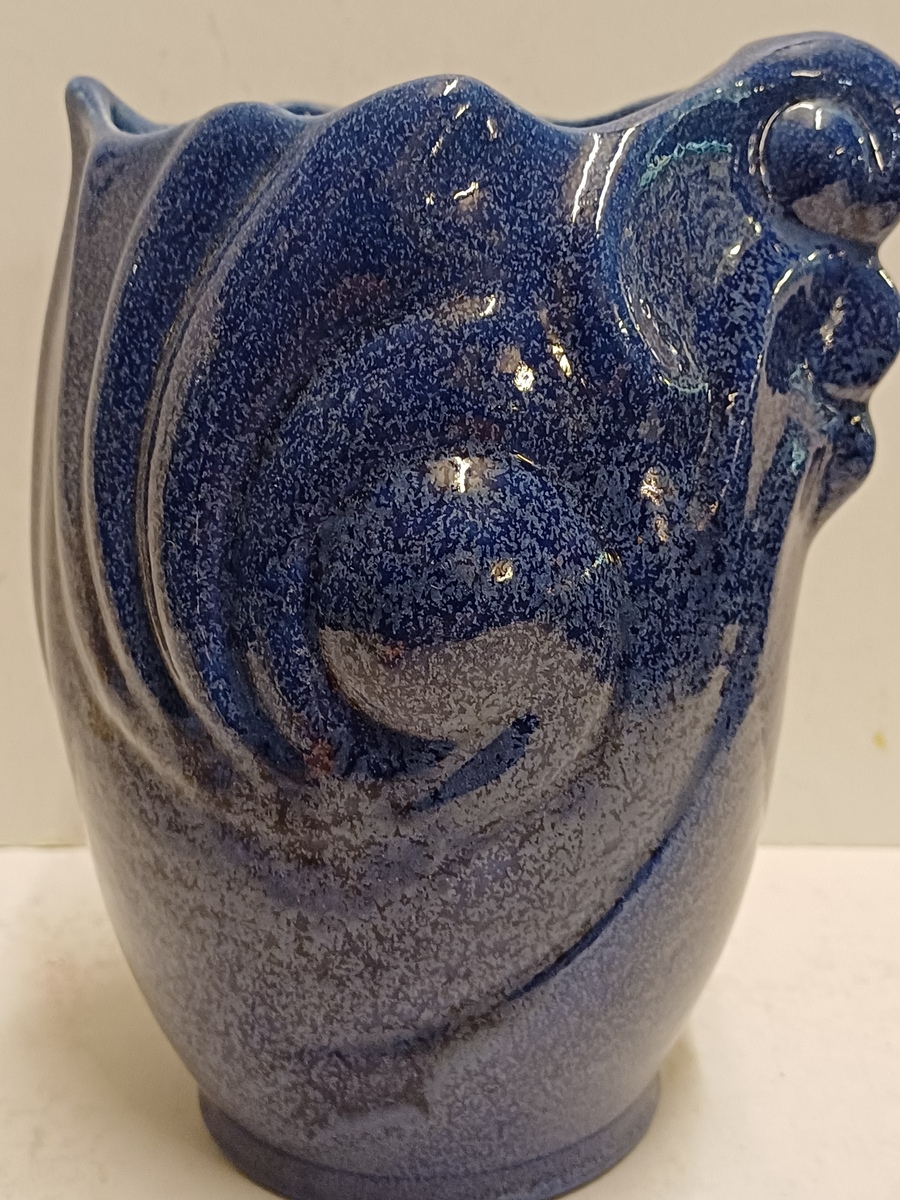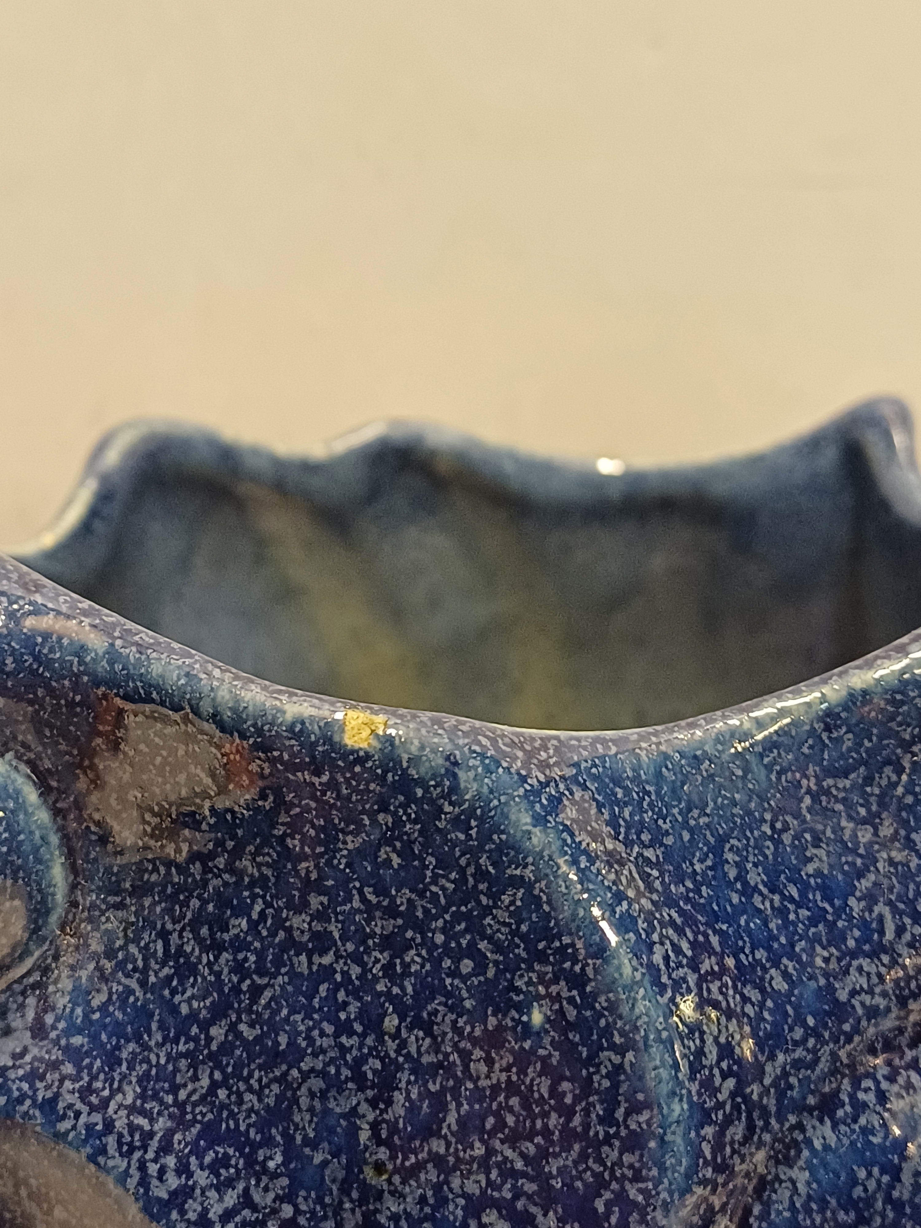 Blauw geglazuurde vaas met grillige vorm. Uitvoering Eskaf. Niet gesigneerd