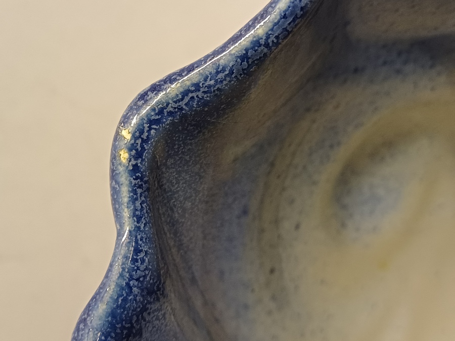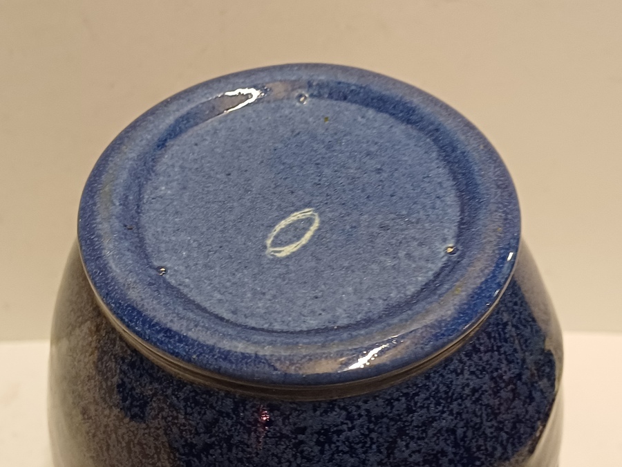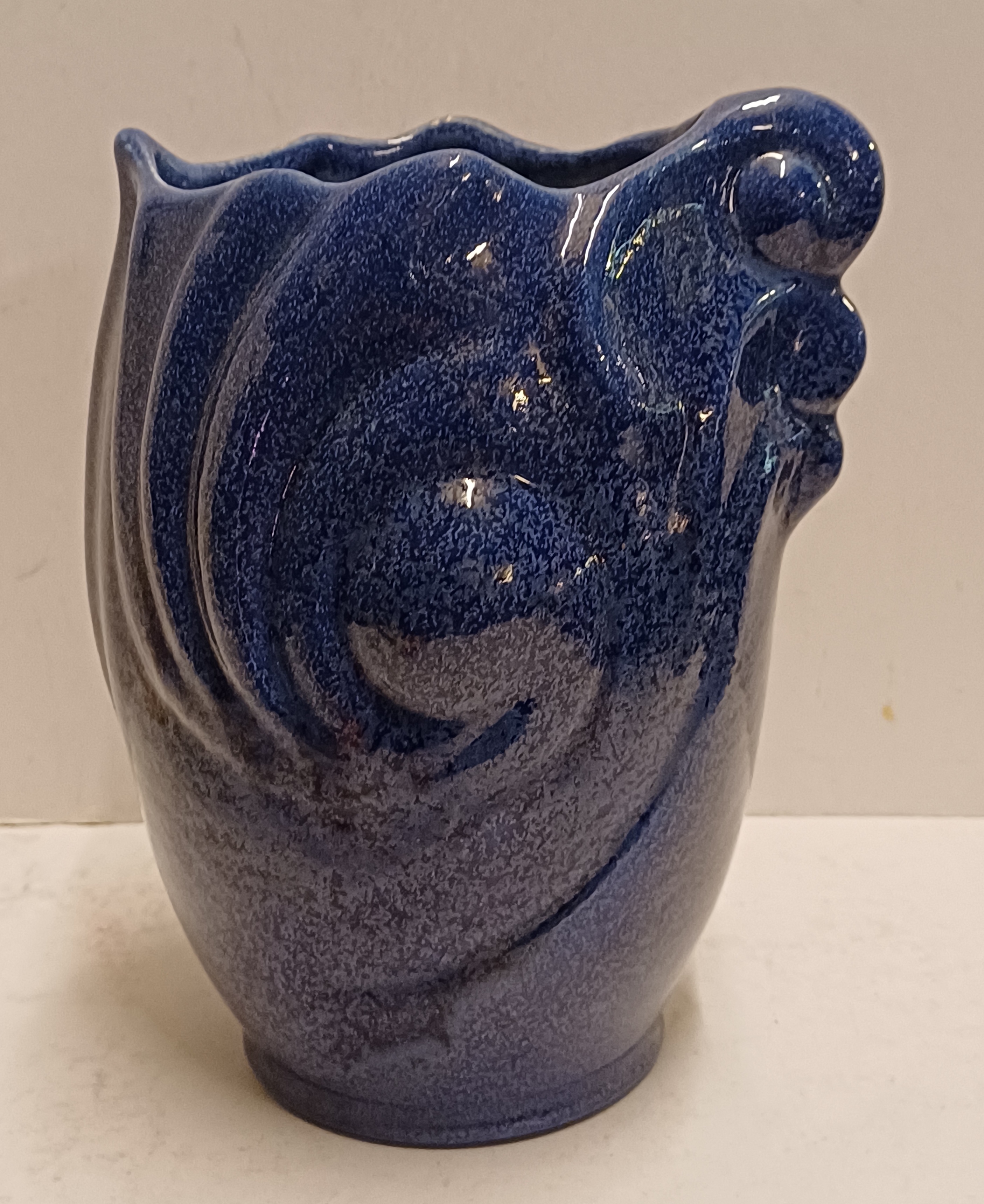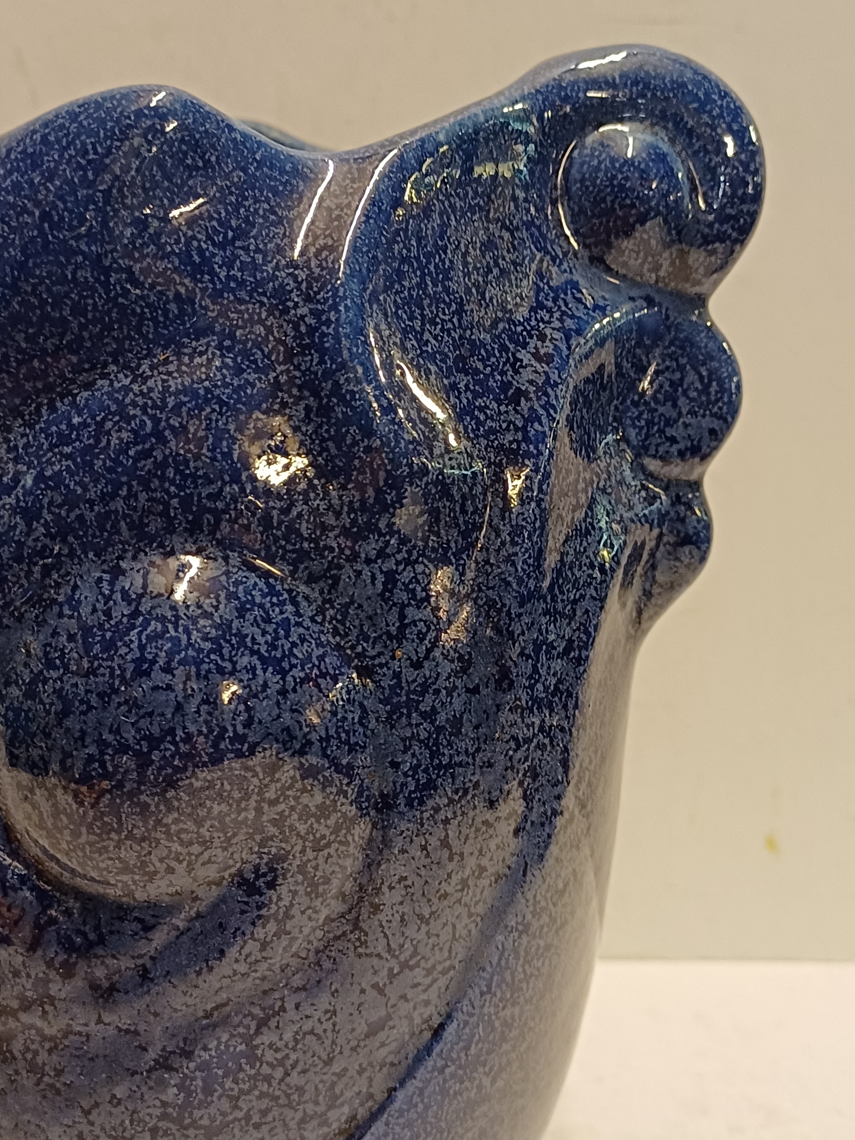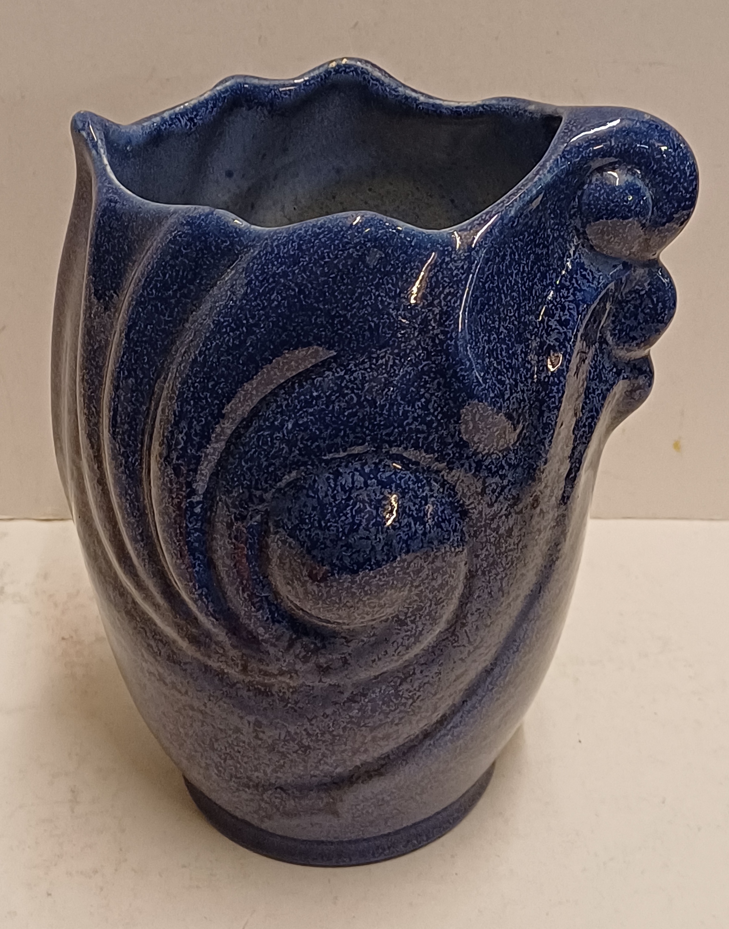 Blauw geglazuurde vaas met grillige vorm. Uitvoering Eskaf. Niet gesigneerd