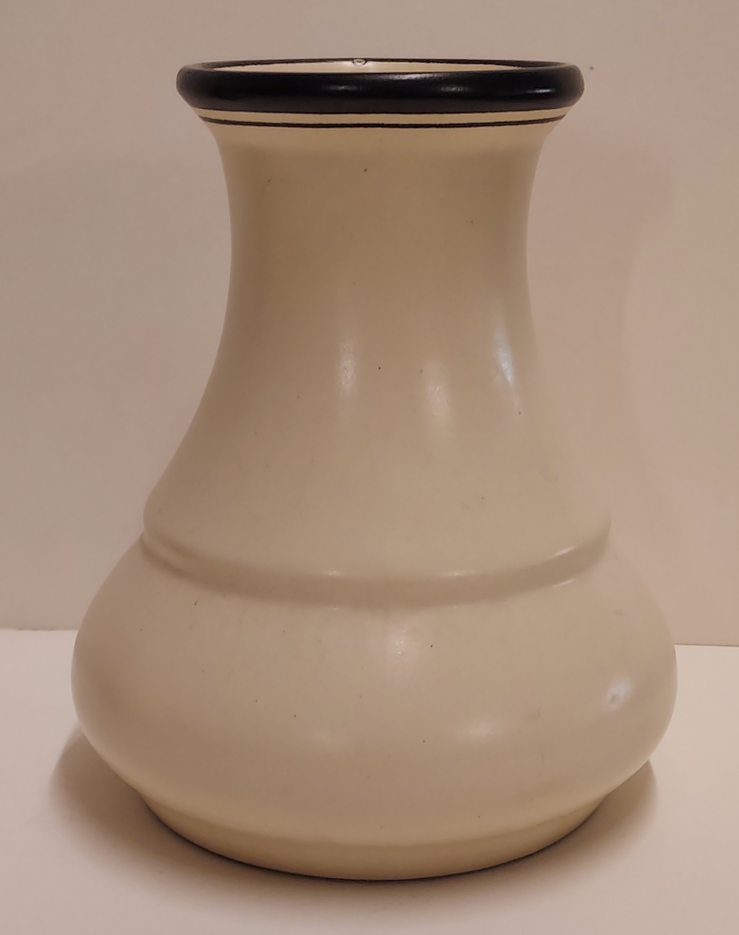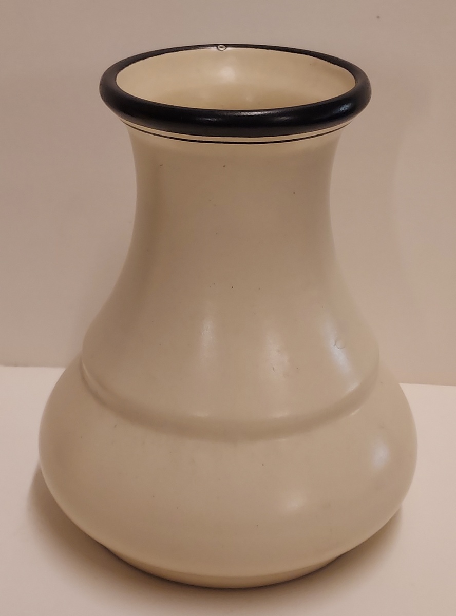 Cream glazed with black bands. Model number 803, vase design by P Stam. Not signed.