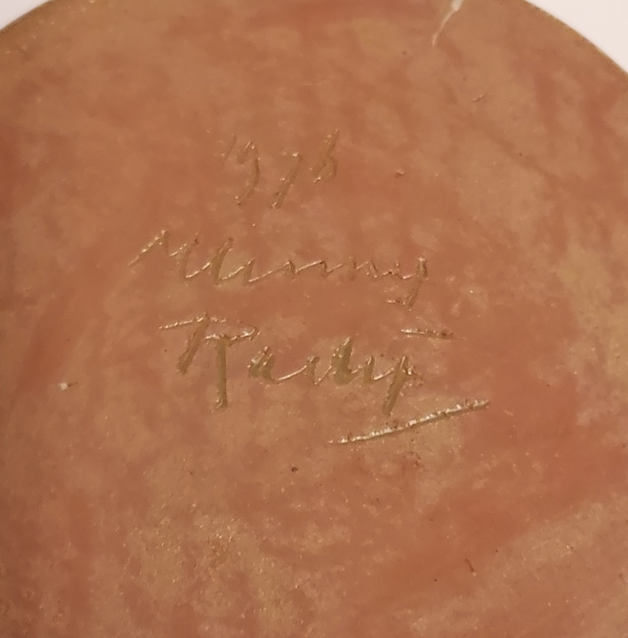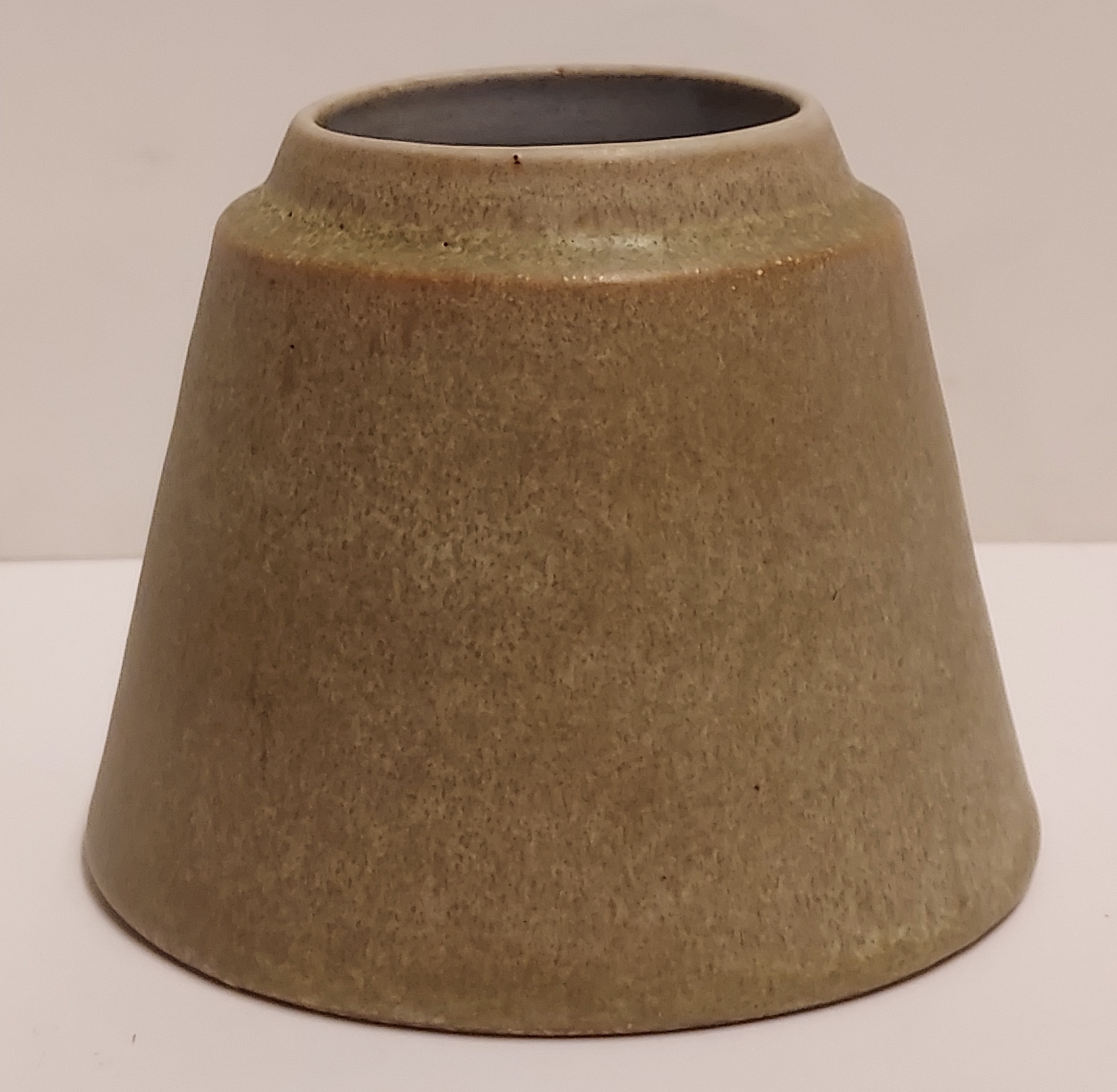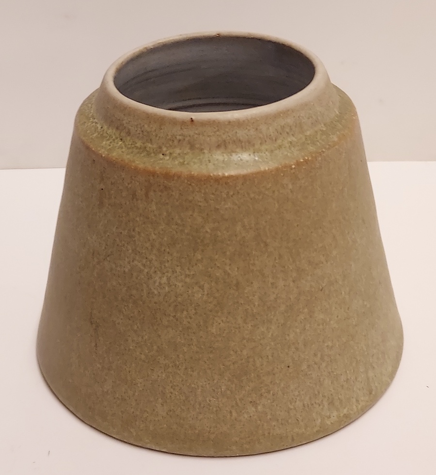 Conical vase with yellow-green glaze. Fully signed on the bottom and dated 1976.