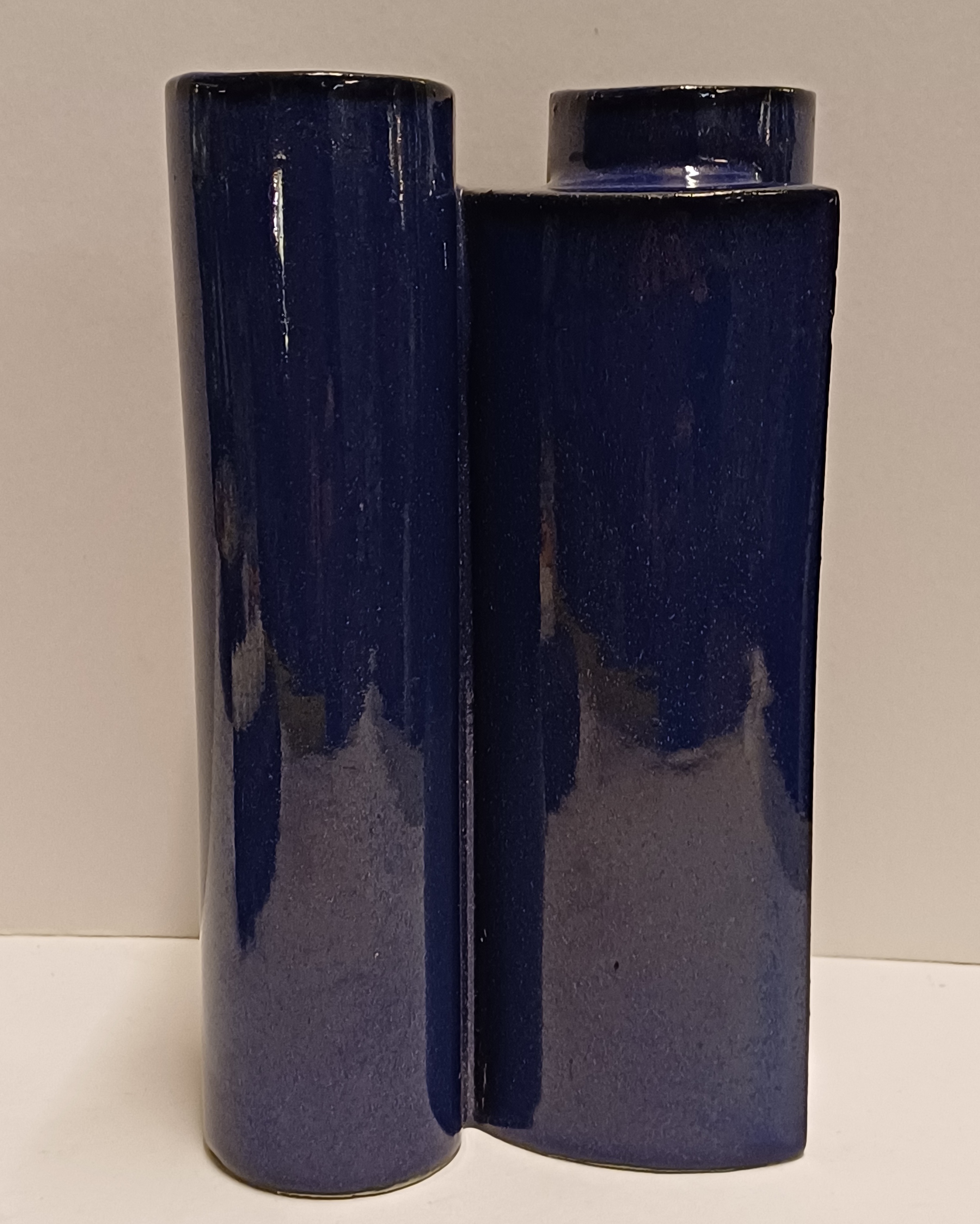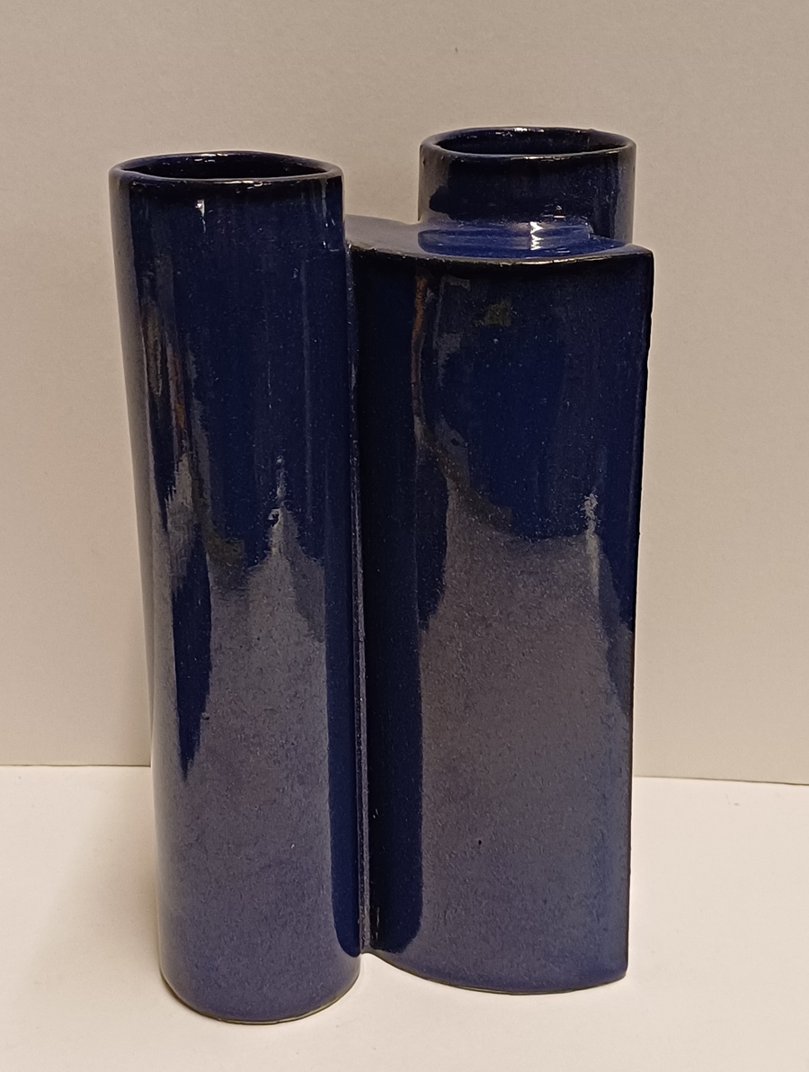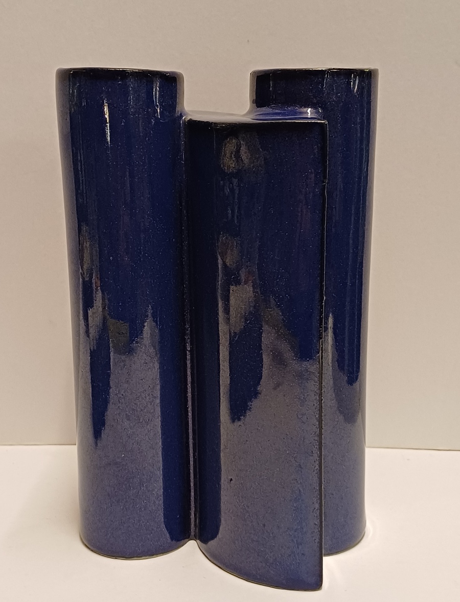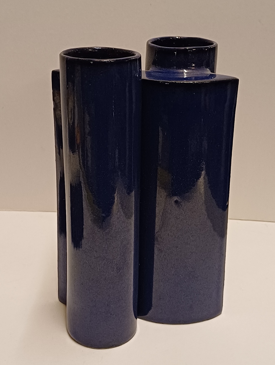 Blauw geglazuurde aardewerken schakelvaas, ontwerp & uitvoering Jan van der Vaart 1988, in eigen atelier