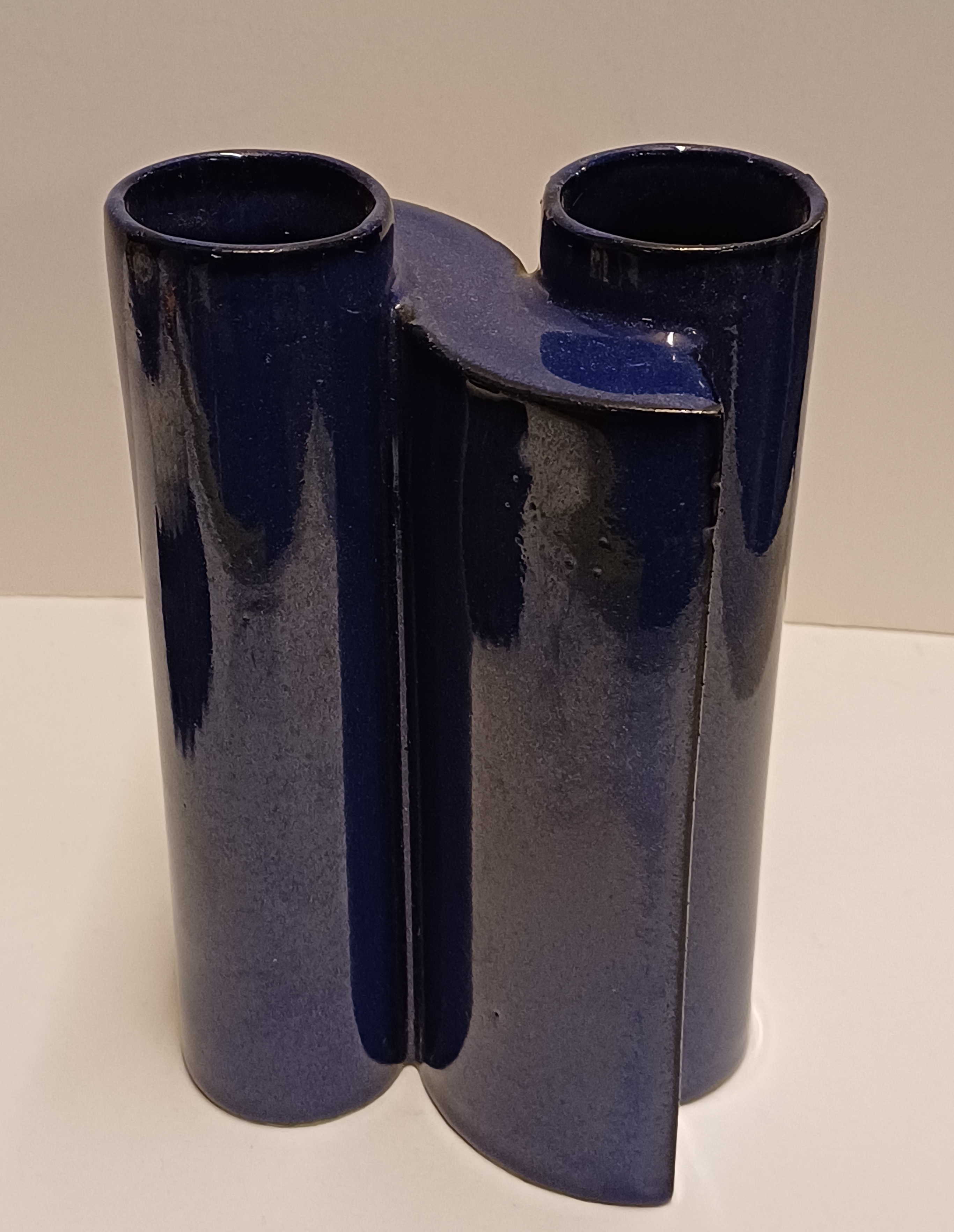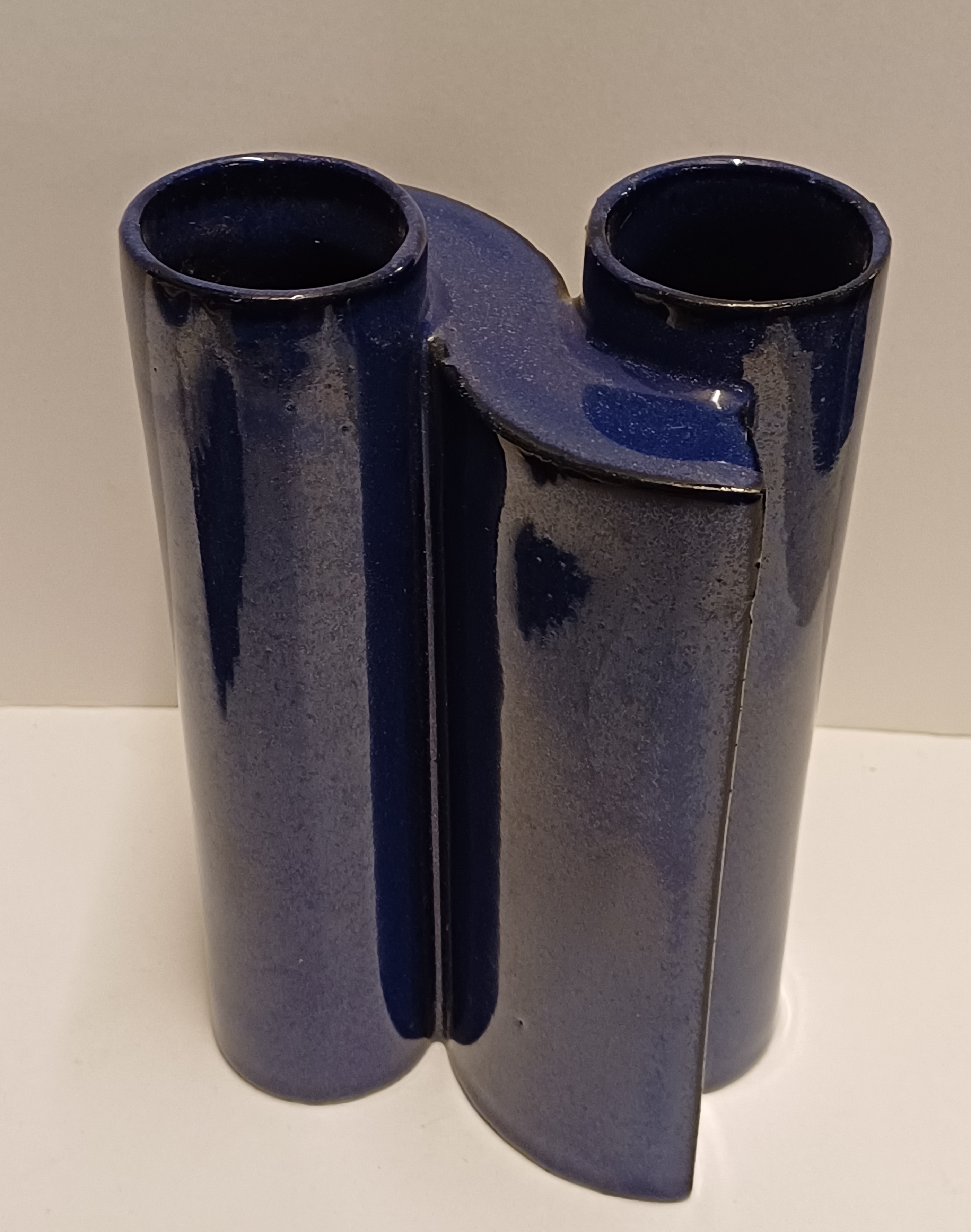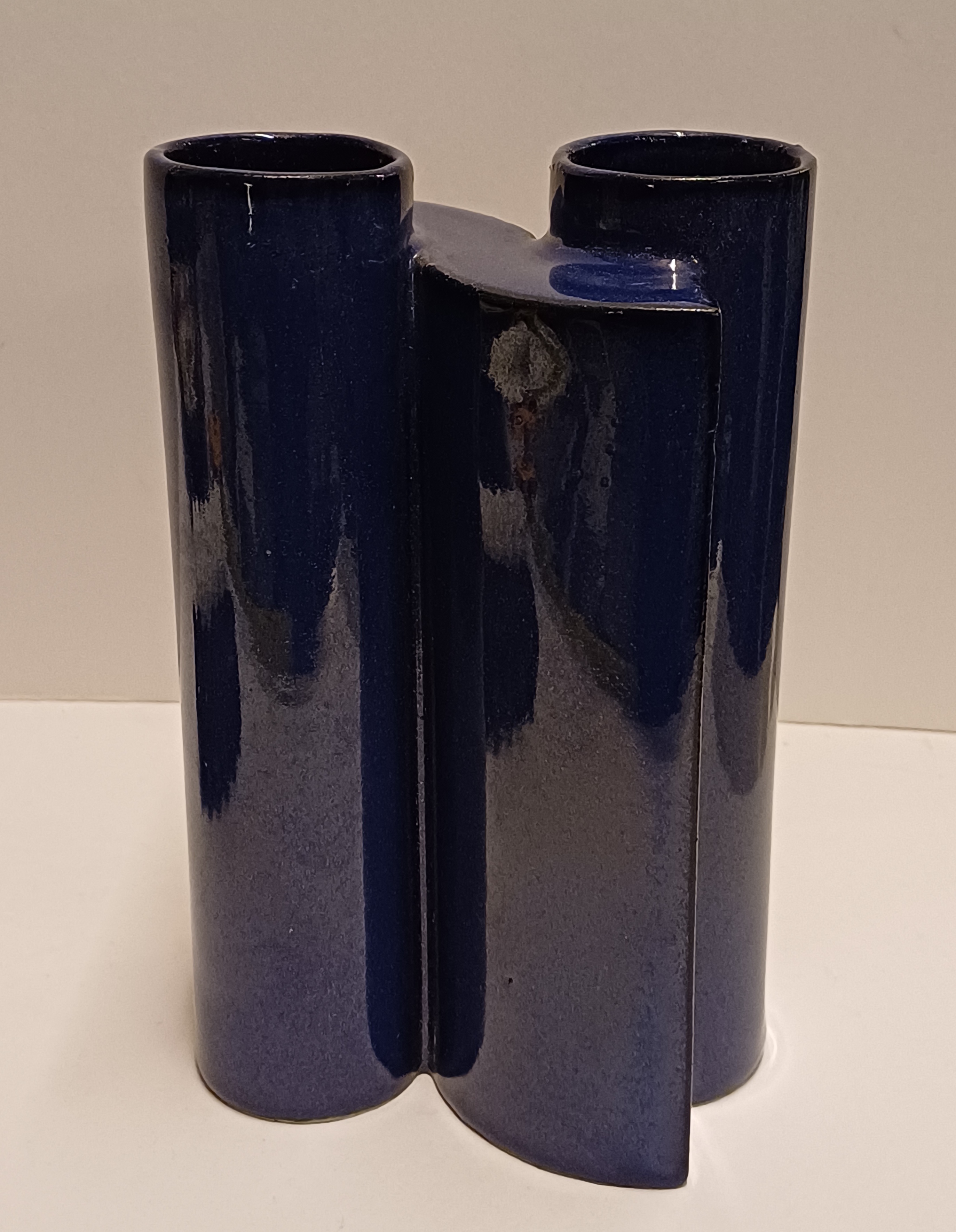 Blauw geglazuurde aardewerken schakelvaas, ontwerp & uitvoering Jan van der Vaart 1988, in eigen atelier