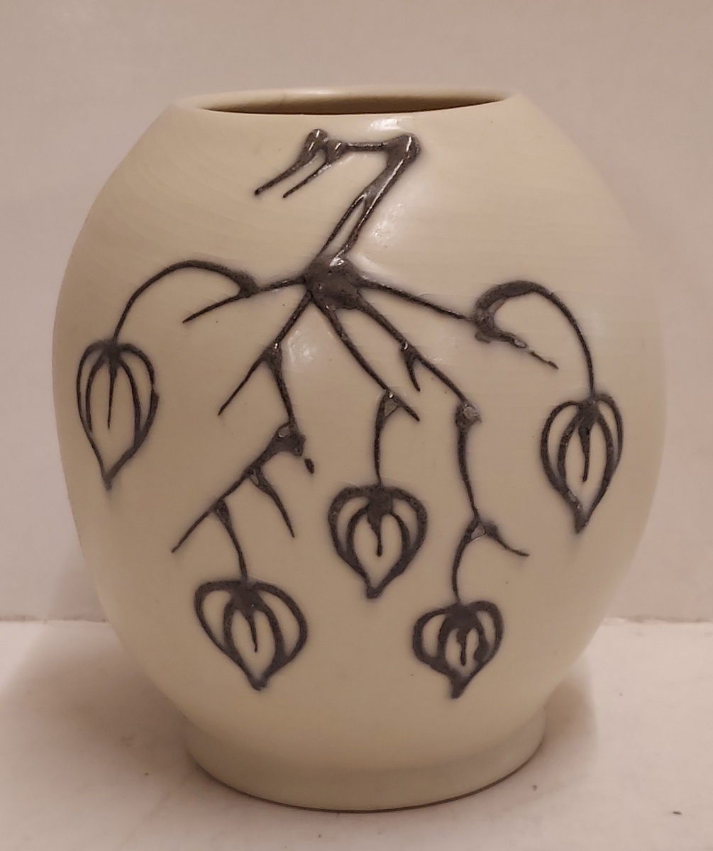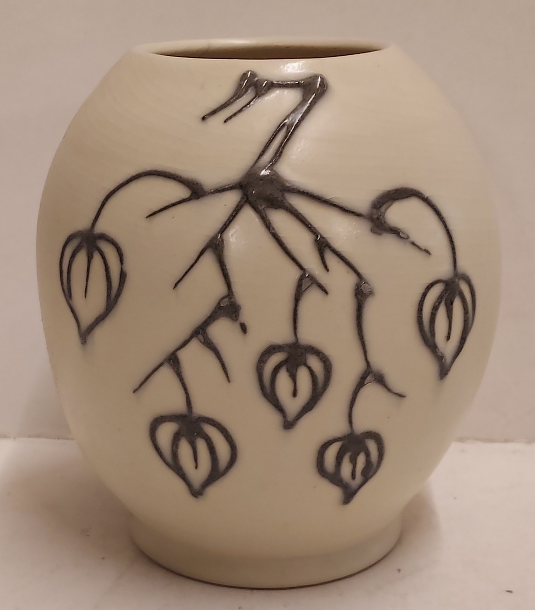 Vase with matte glaze and decor of a branch with lanterns. Bottom is only numbered.