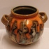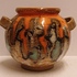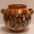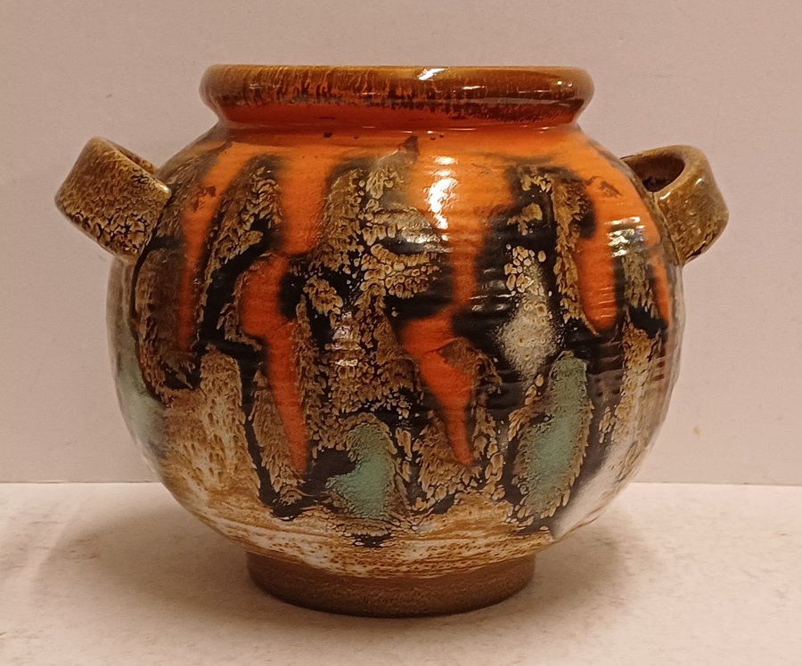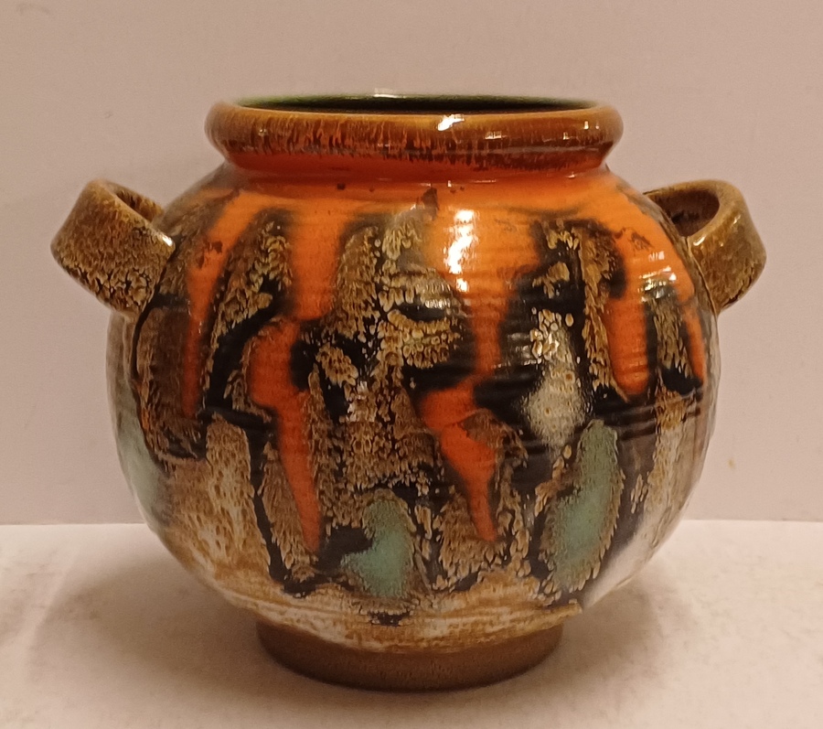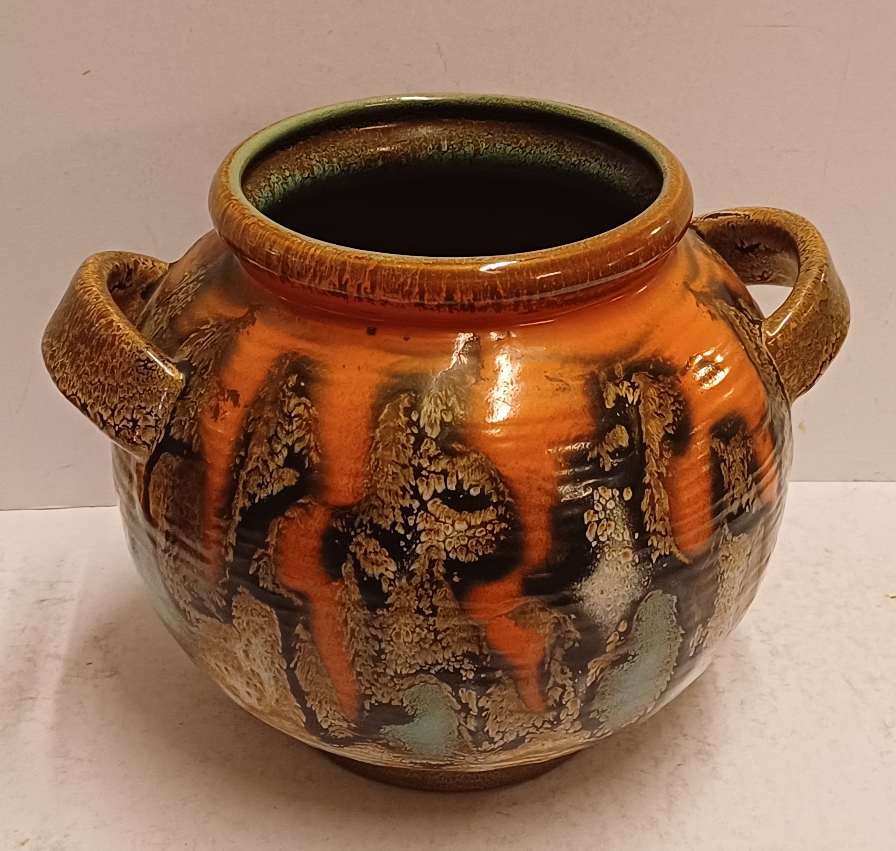 Vaas met 2 grepen met Muvelee decor in oranje. Onderzijde met signatuur en coderingen.