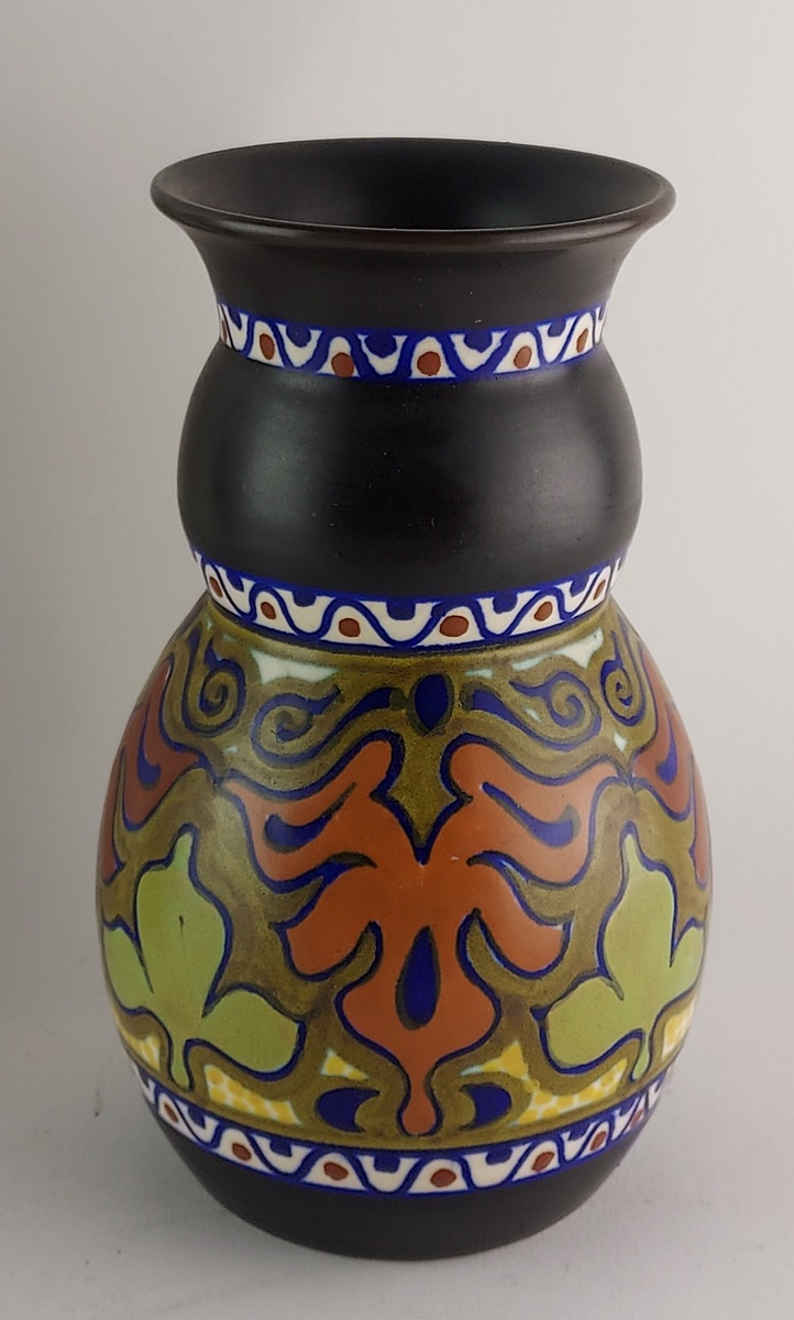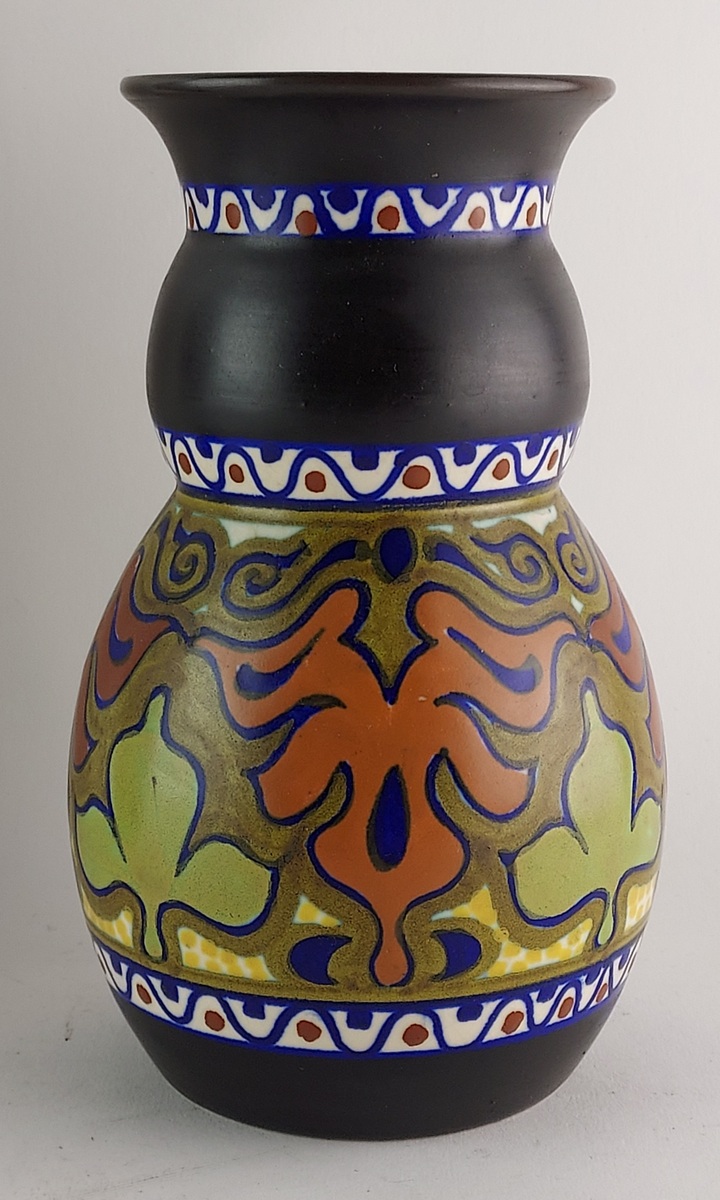 Vase with stylized floral decor. Base marked with factory brand Decor Beek, year letter 1929.