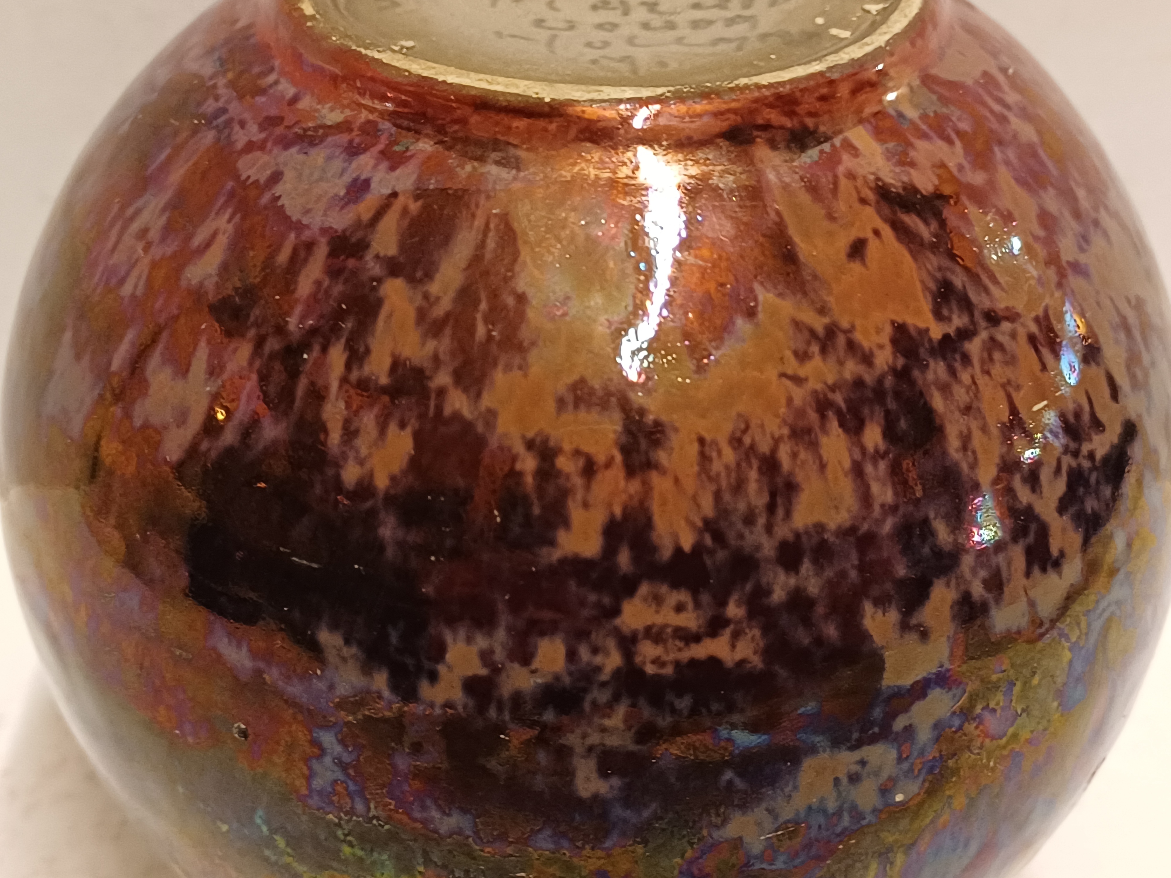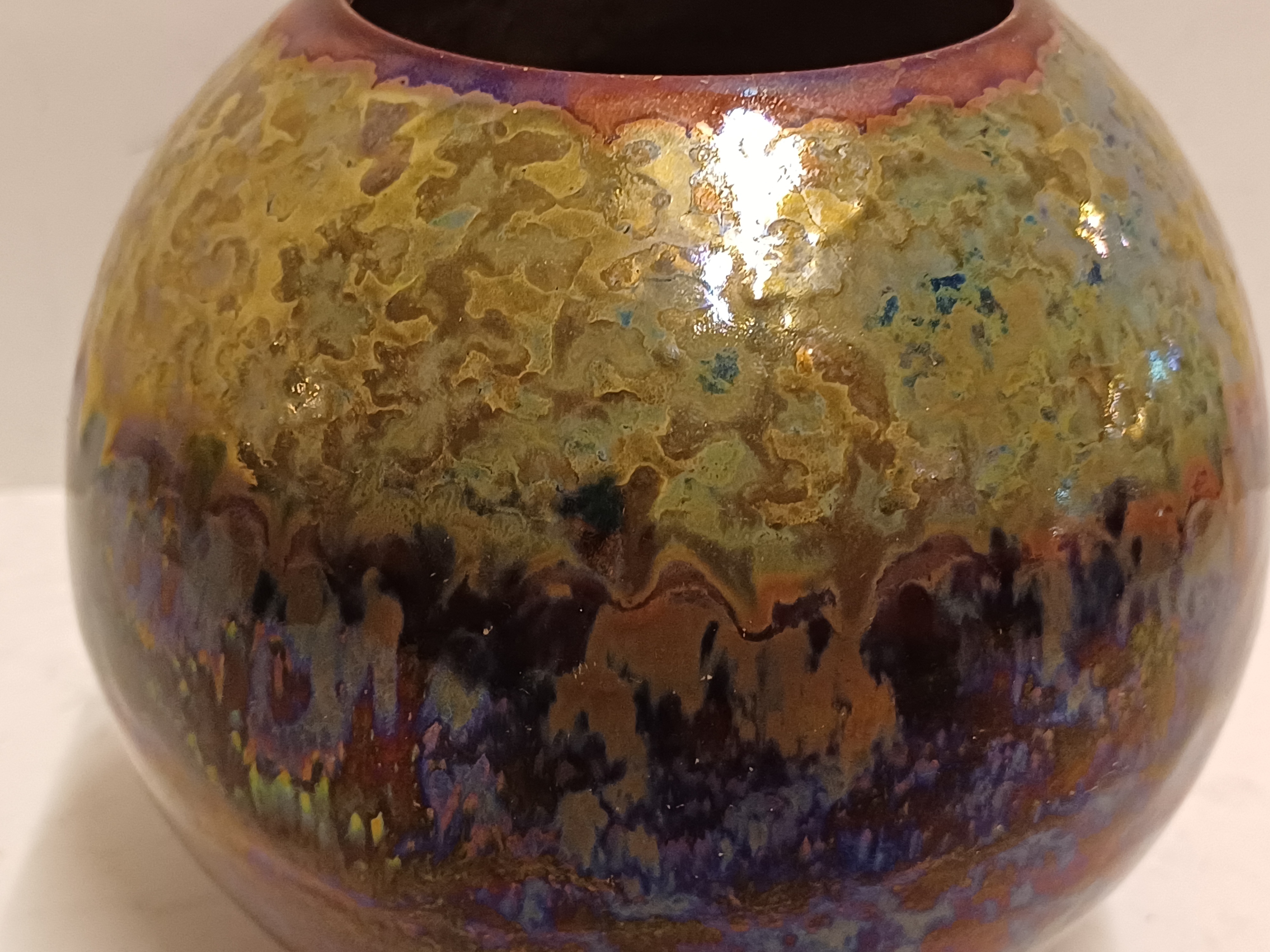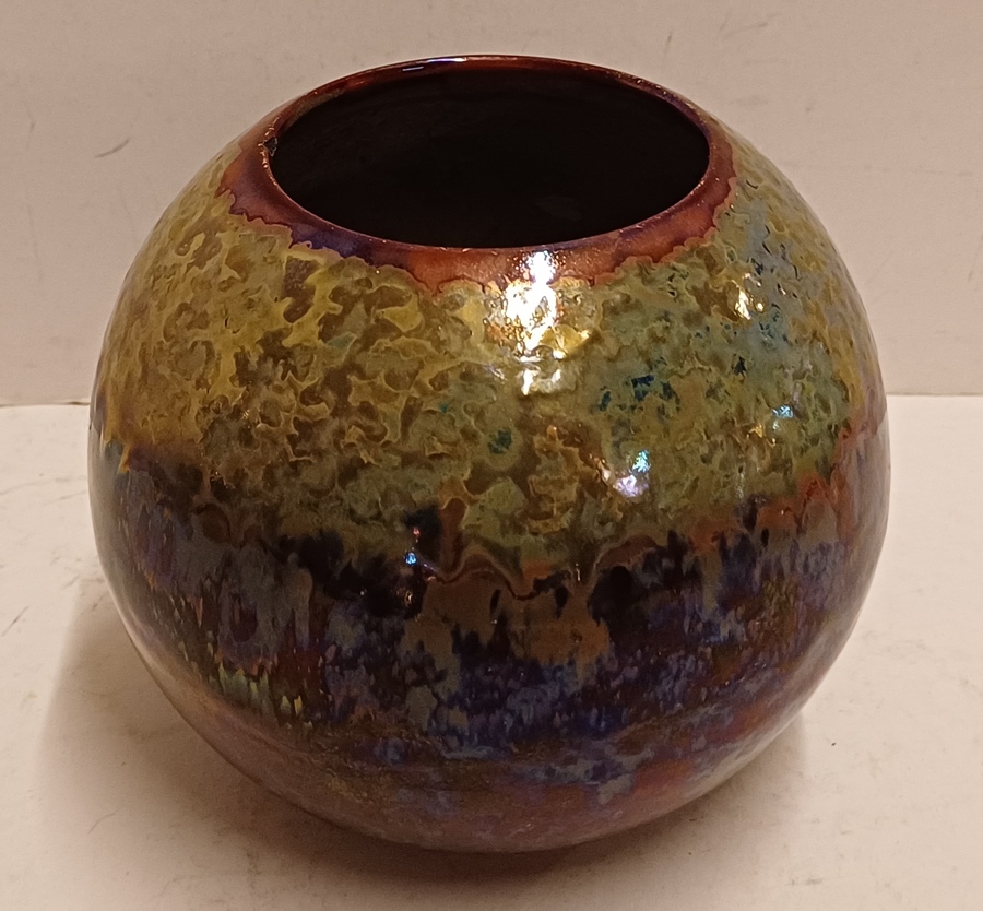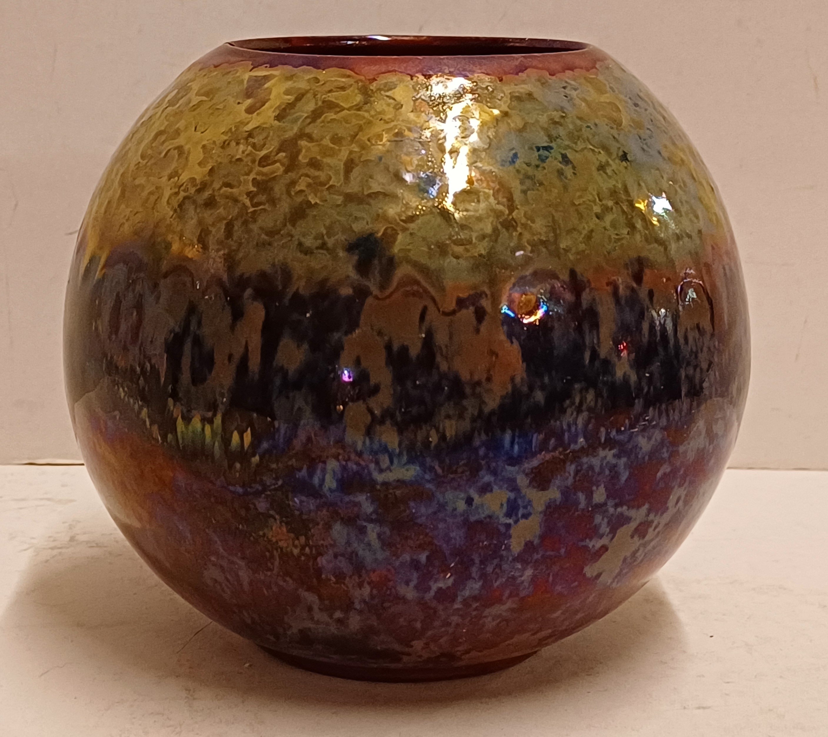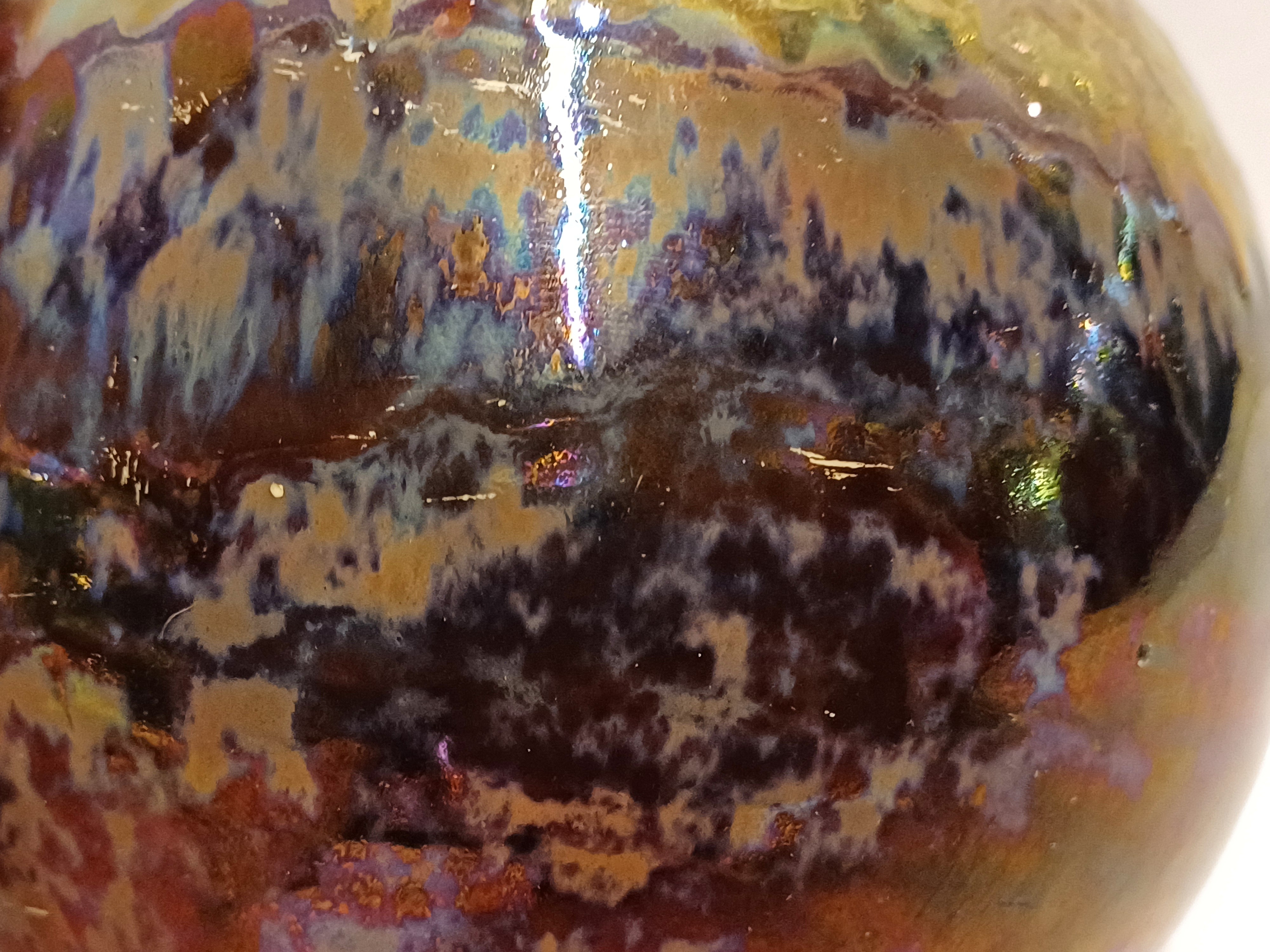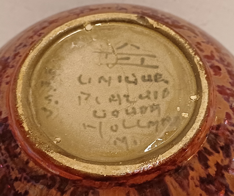 Bol plateel vaasje met decor unique metalique. Onderzijde gemerkt.