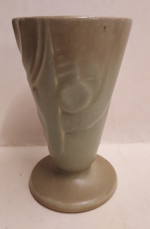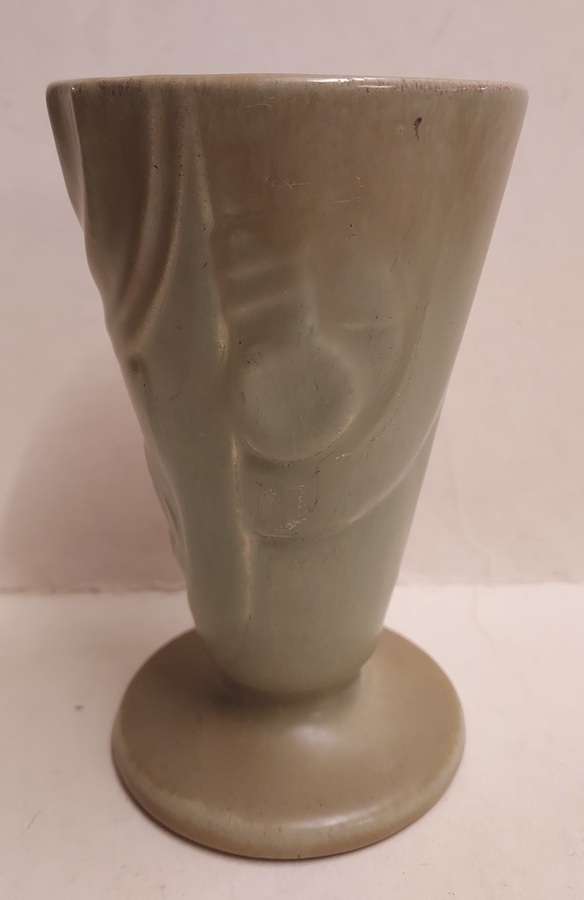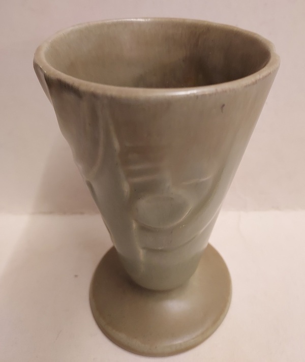 With green spray glaze and geometric decoration. Not signed.