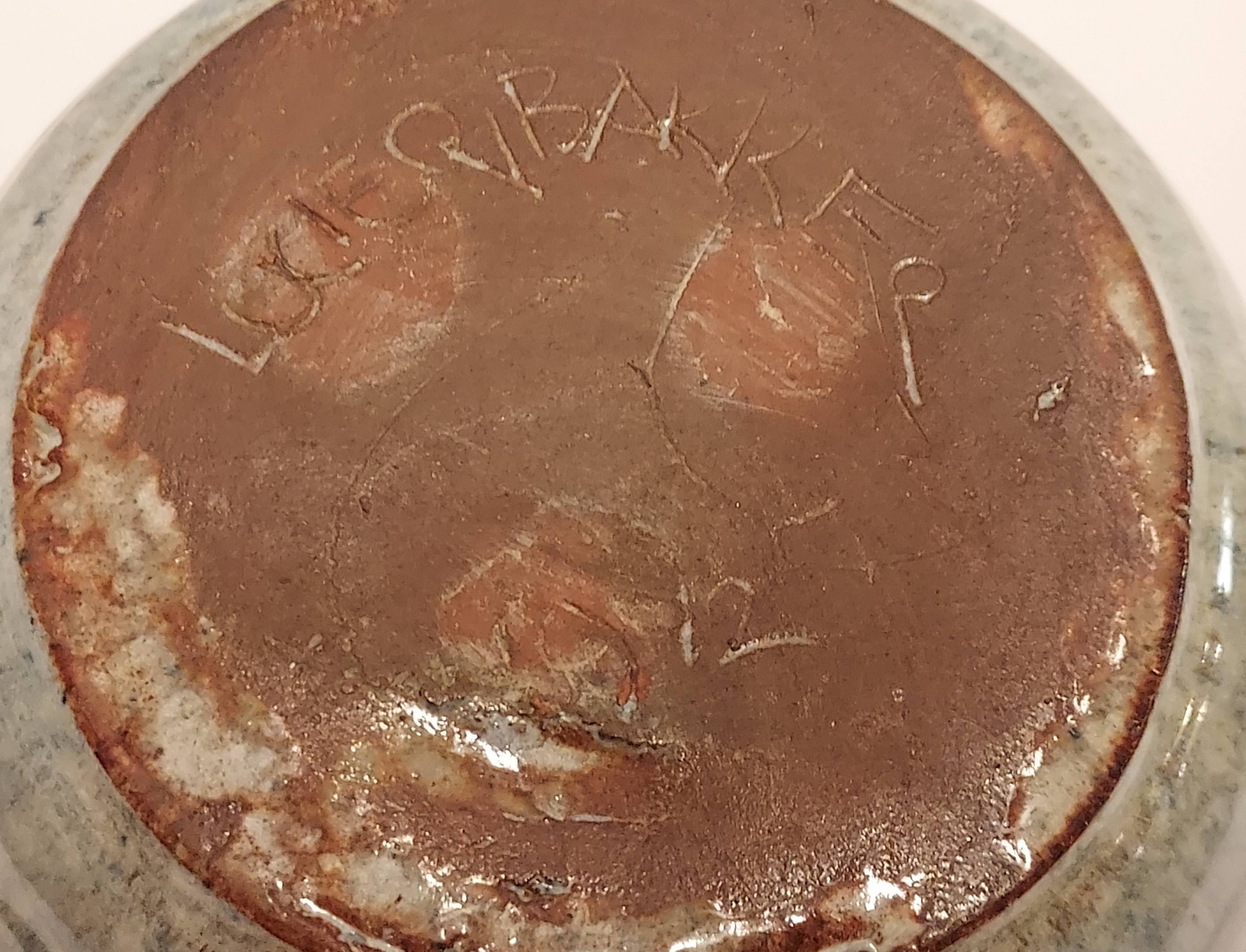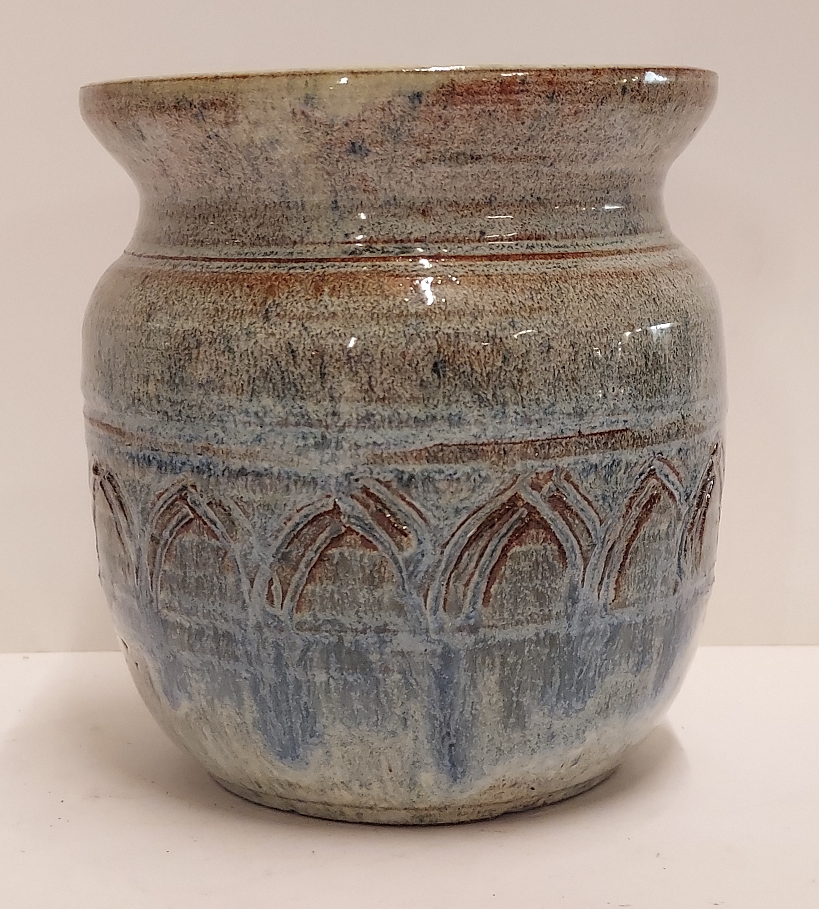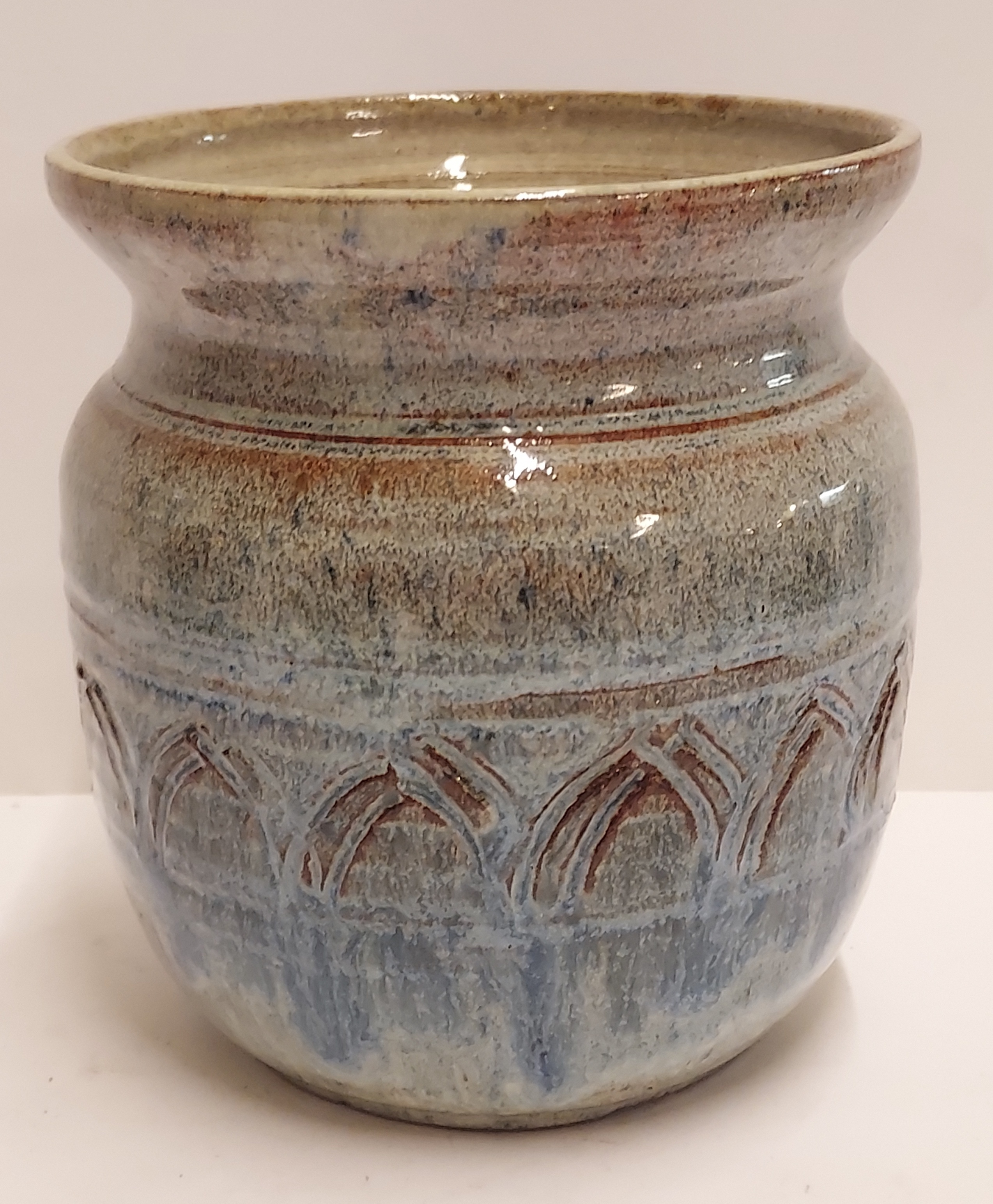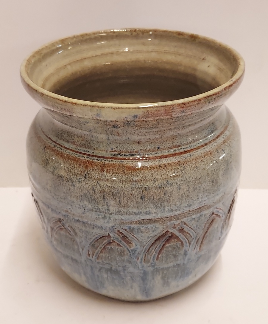 Vase with incised decorative band. Fully signed on the bottom and dated 1942.