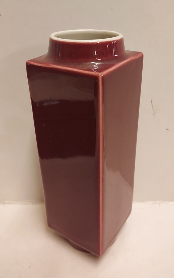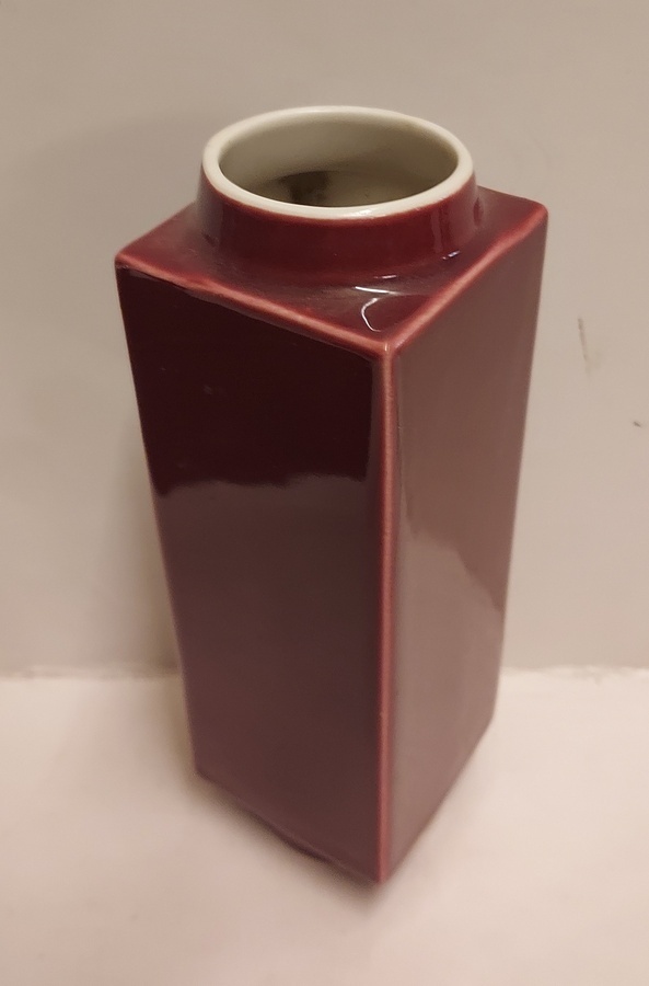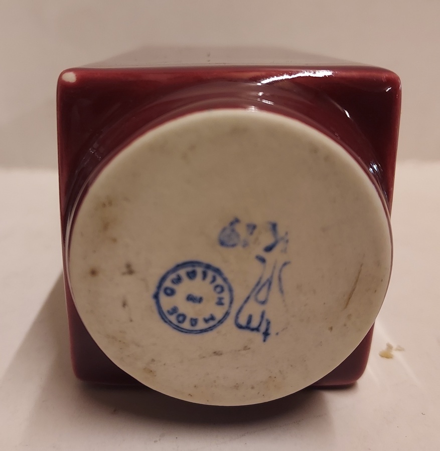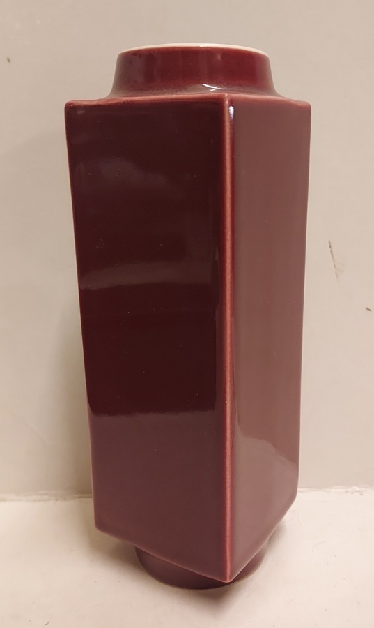 Jarrón con esmalte rojo burdeos. Diseño de Han Knaap. Parte inferior con marca de fábrica.