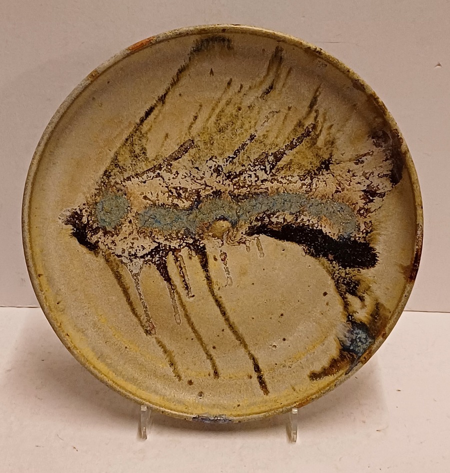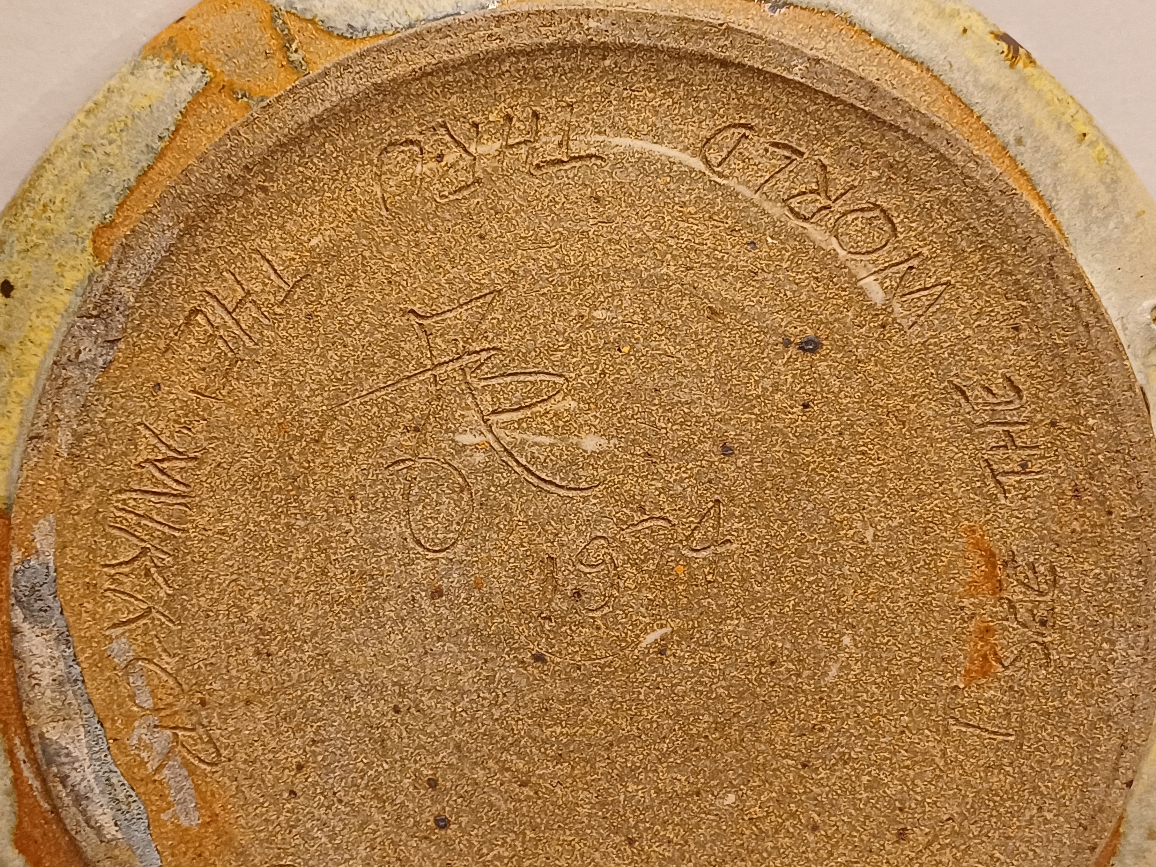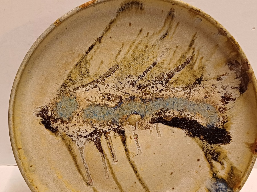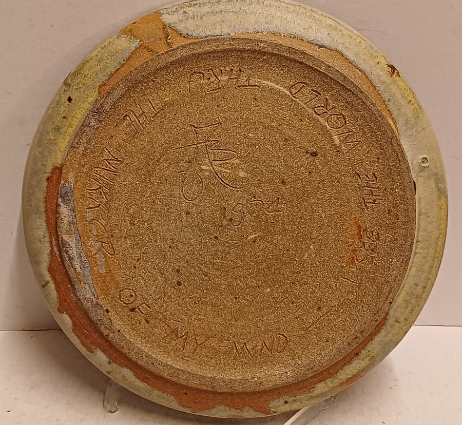 Con decoración de un esqueleto de pescado. Parte trasera firmada y con el texto "i see the world thru the mirror of my mind" 1974.
