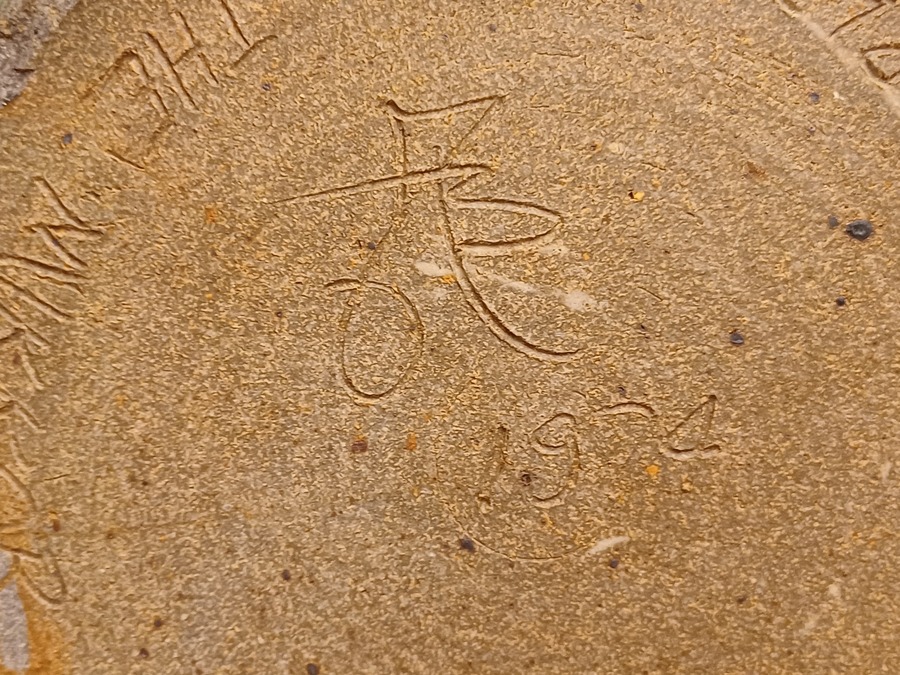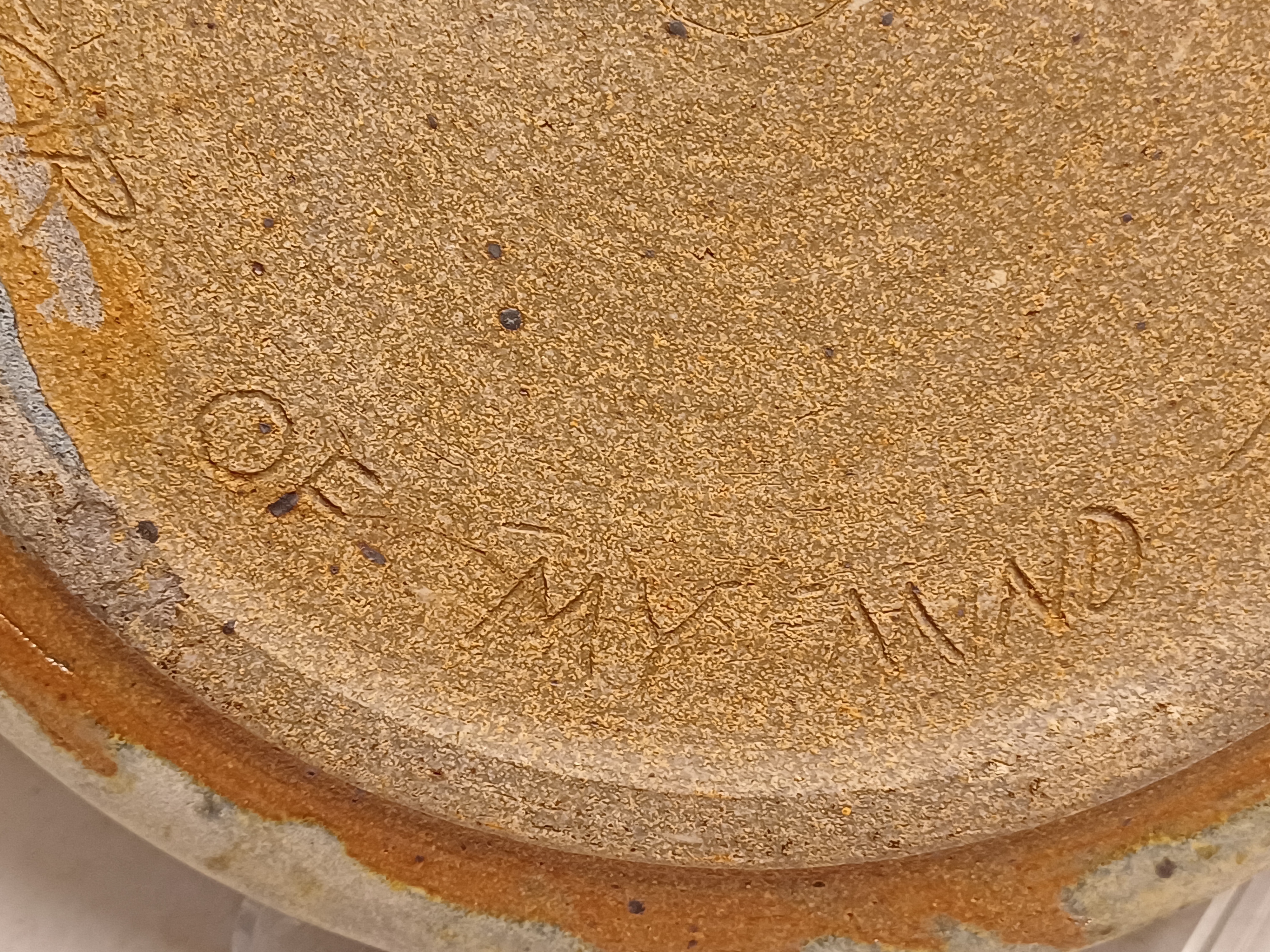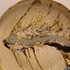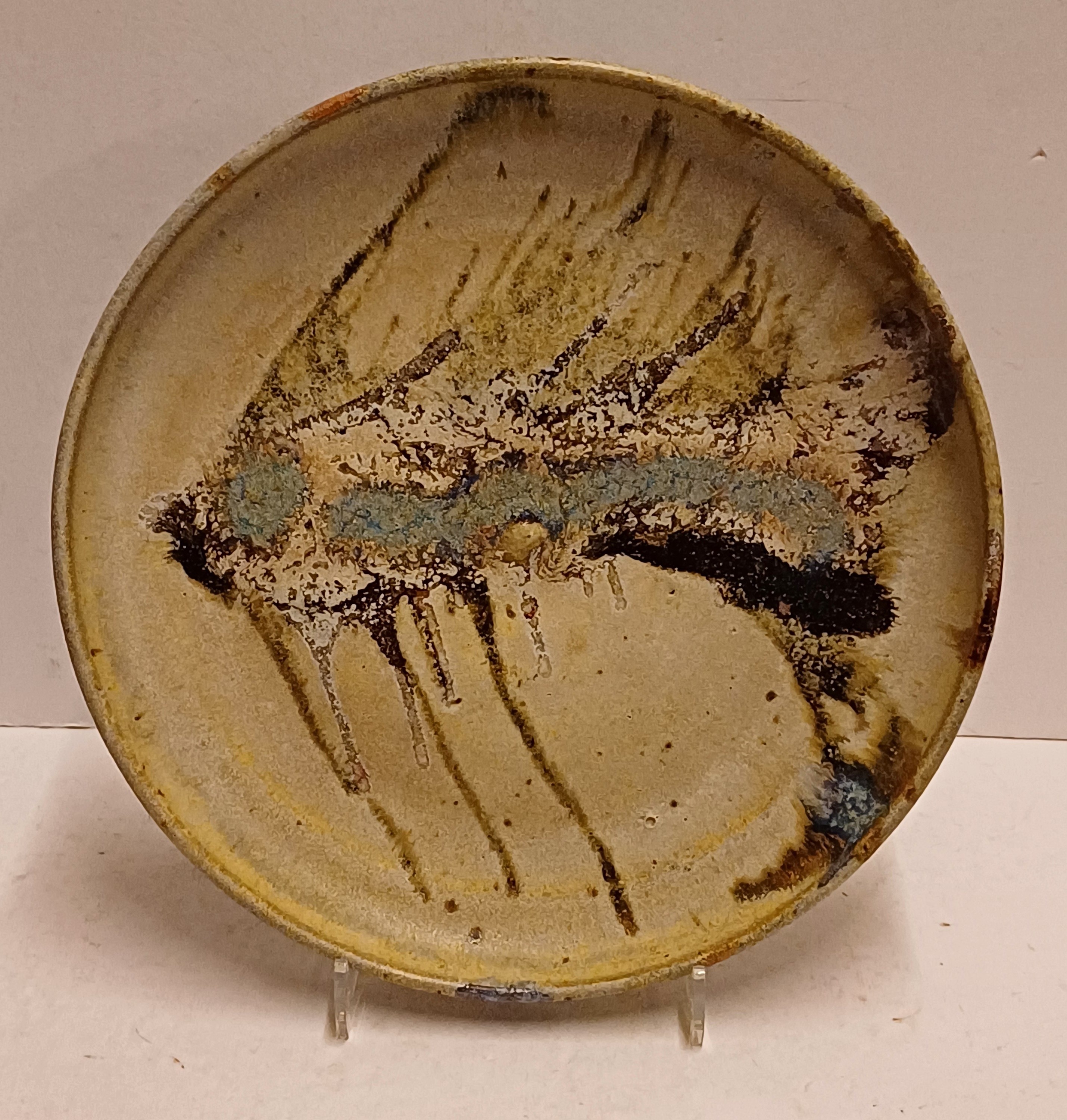Con decoración de un esqueleto de pescado. Parte trasera firmada y con el texto "i see the world thru the mirror of my mind" 1974.