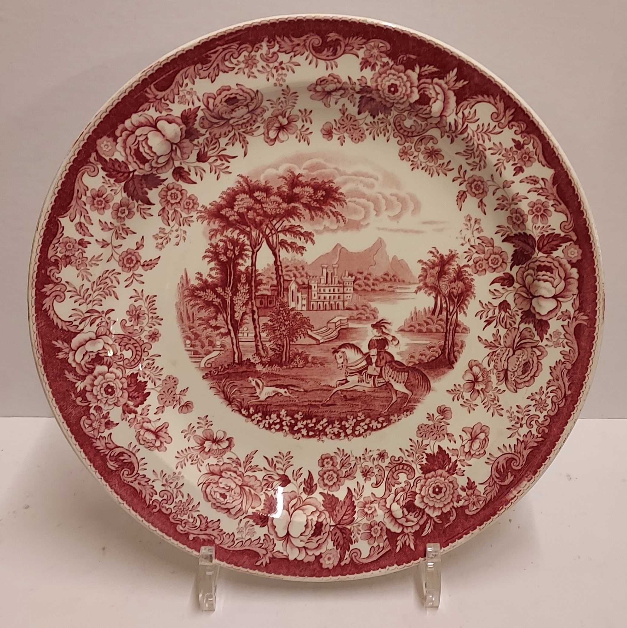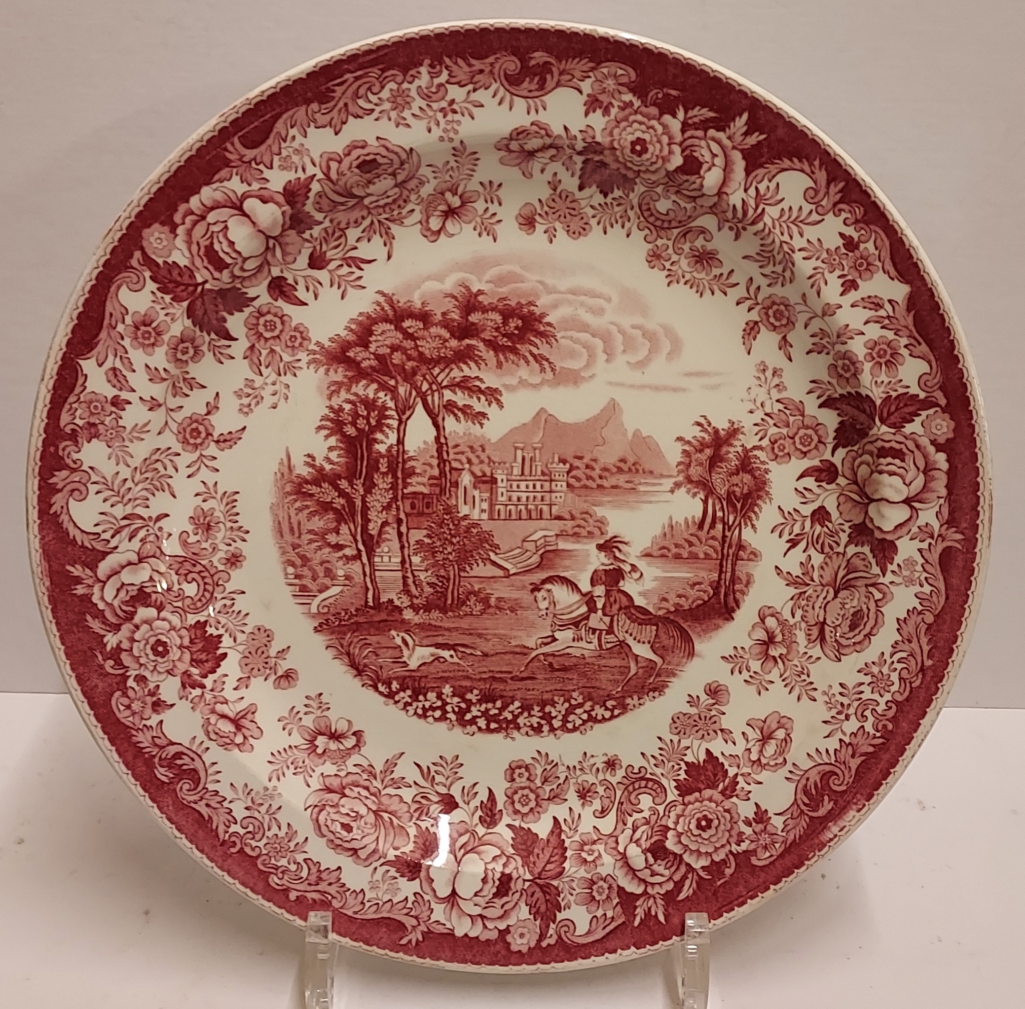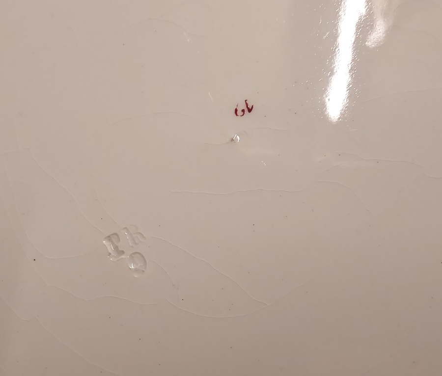 Decoración de transferencia en monocromo rojo. Parte trasera con marca de fábrica.