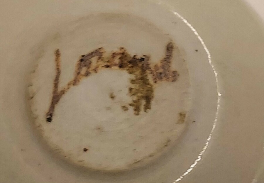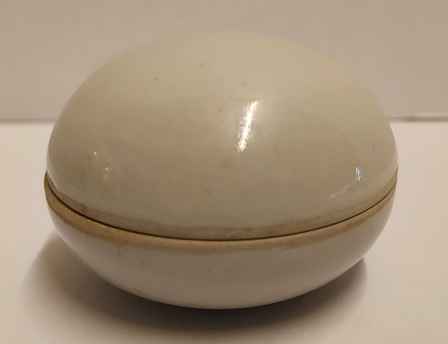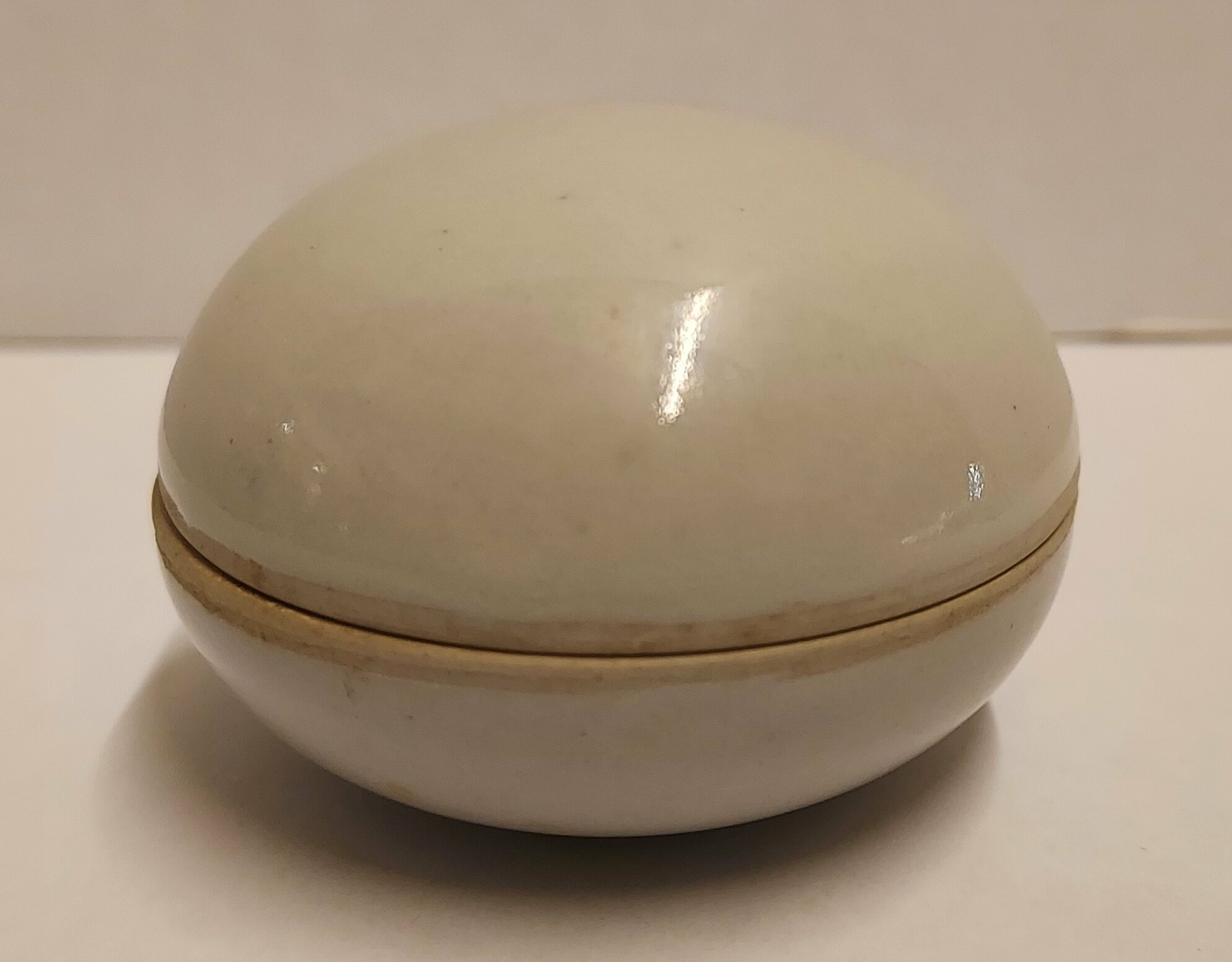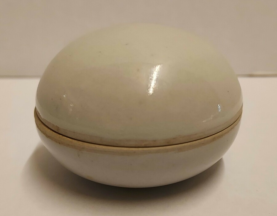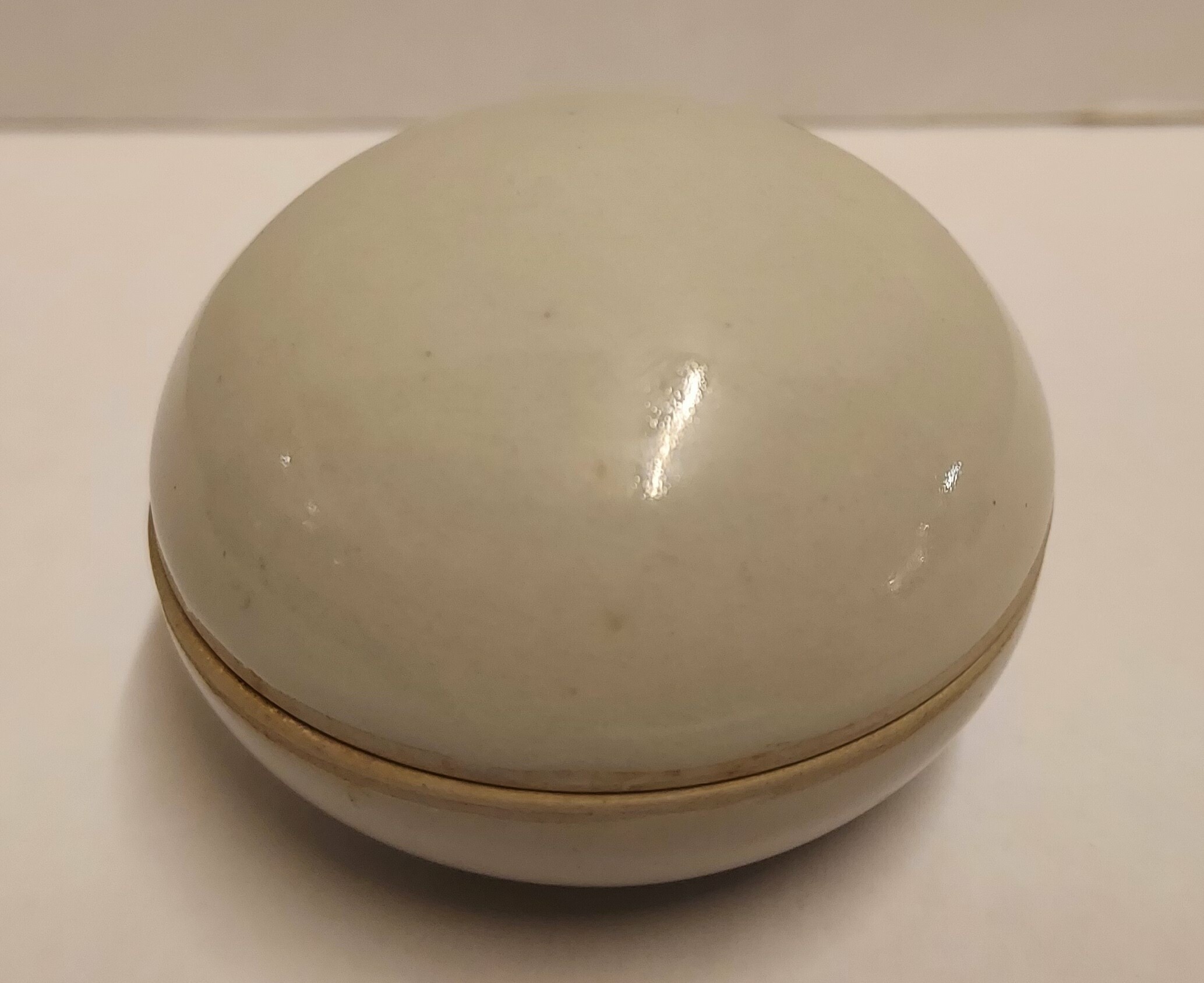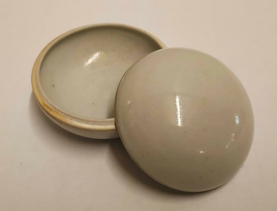 Pequeña caja con tapa esférica con esmalte celadón claro. Parte inferior firmada.