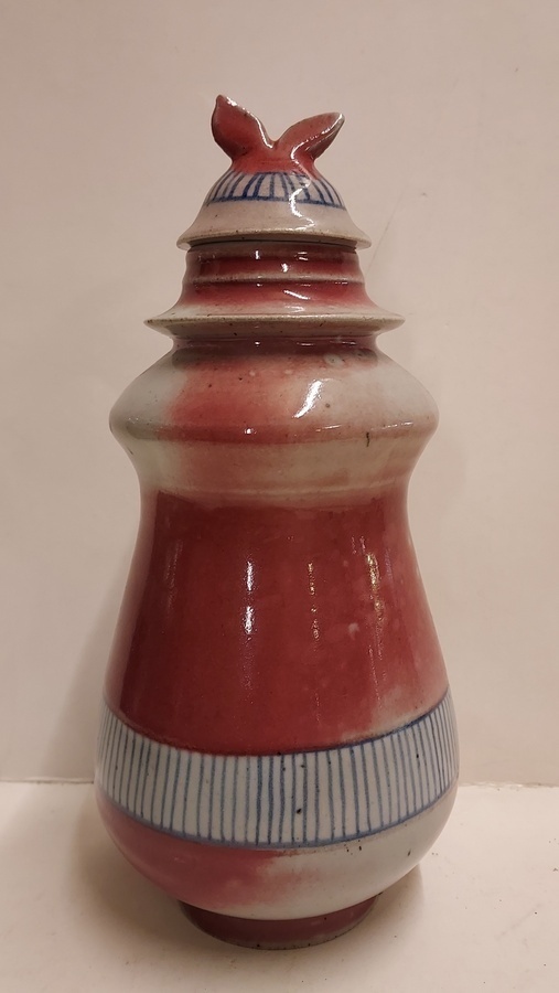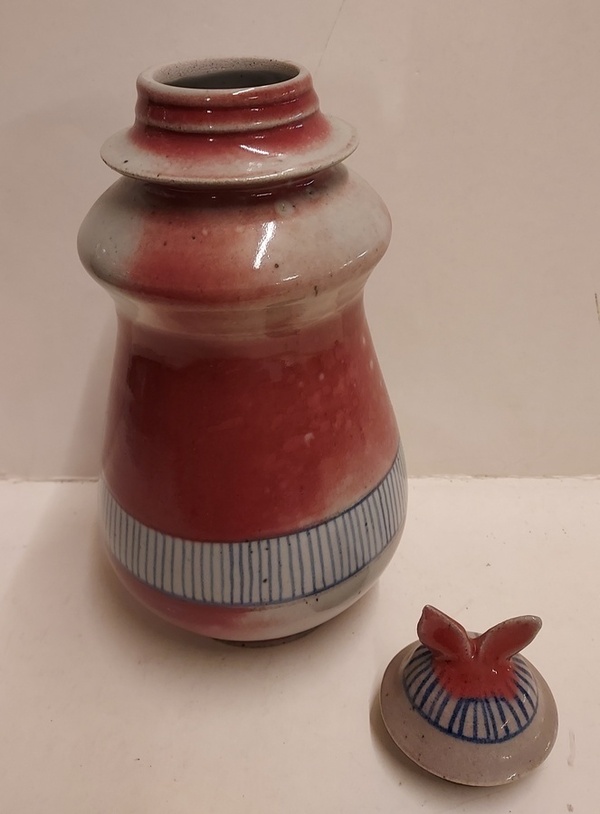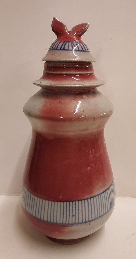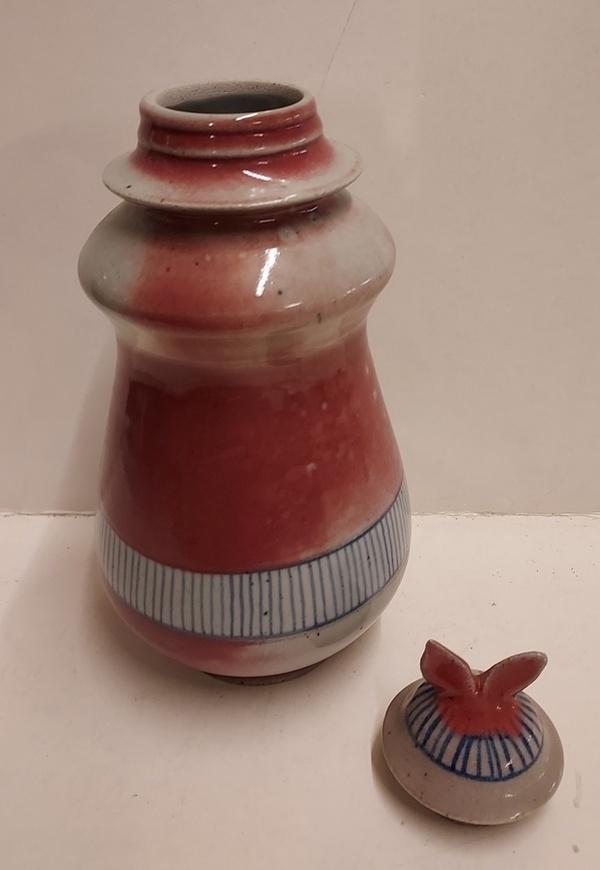 Cuenco de cerámica moldeada con decoración recortada de ciervos pastando. La parte inferior no está firmada y está fechada en 1958.