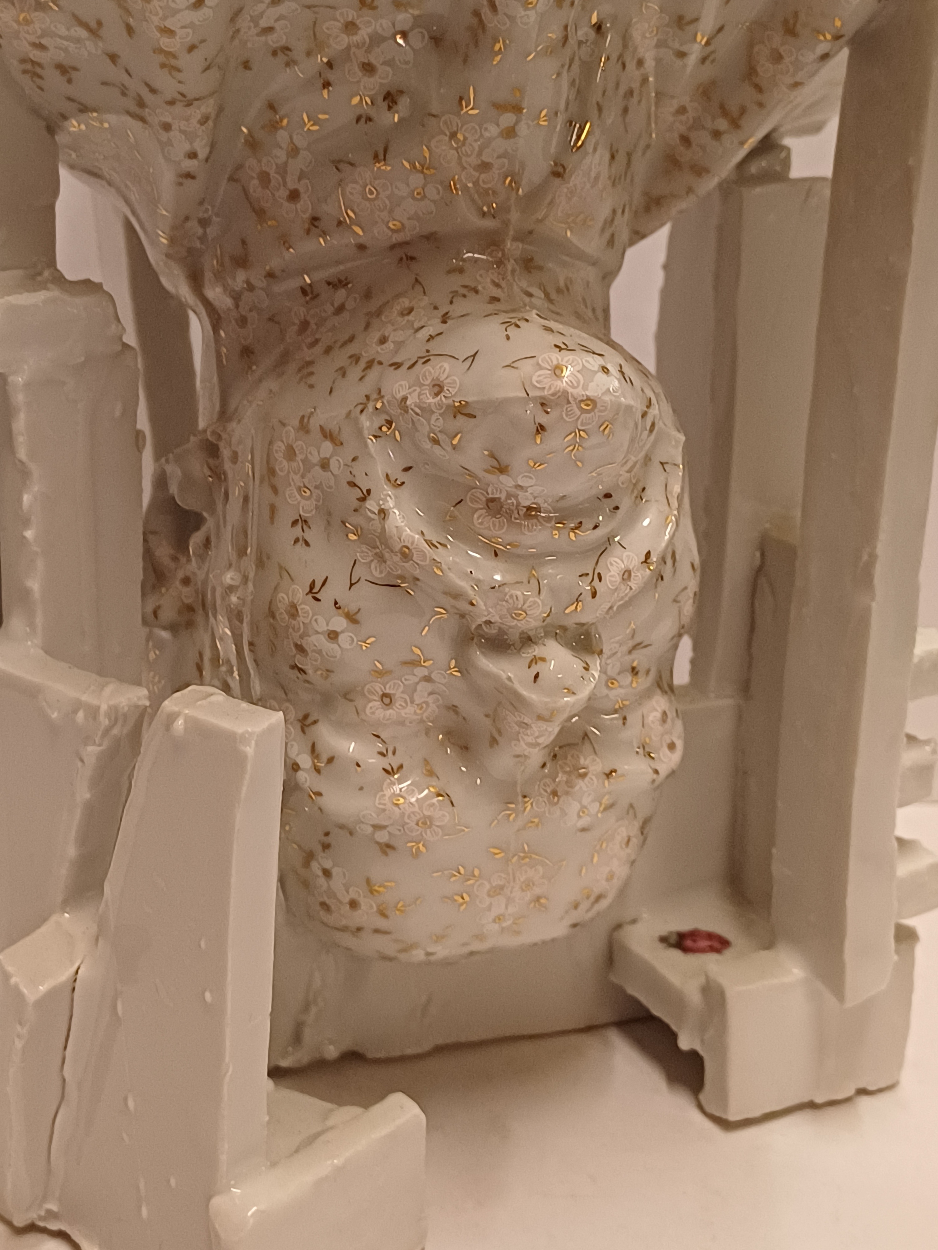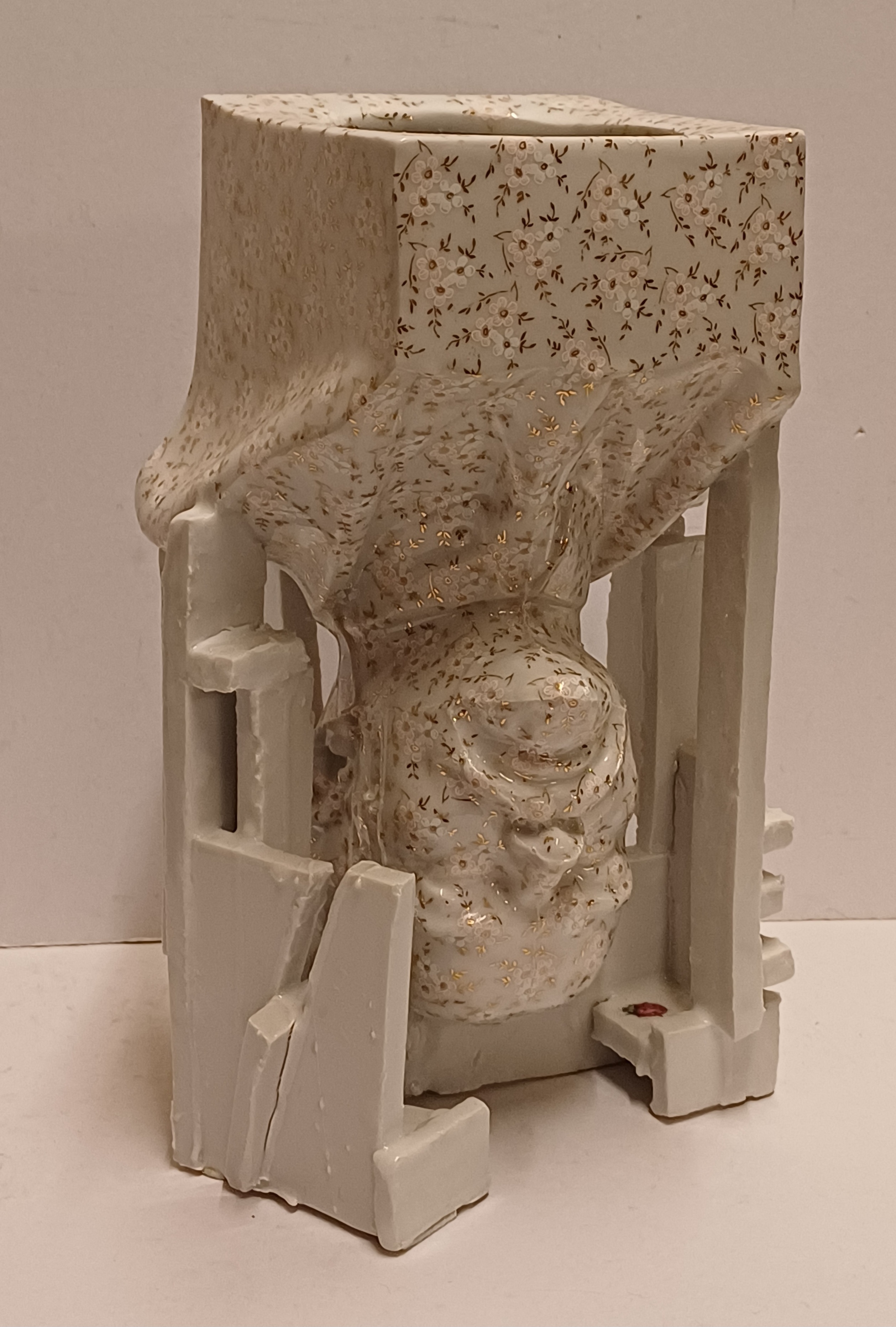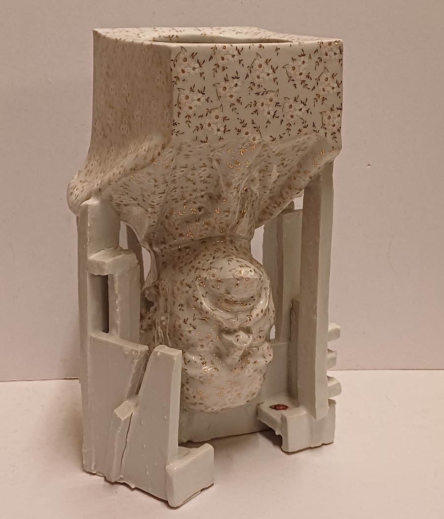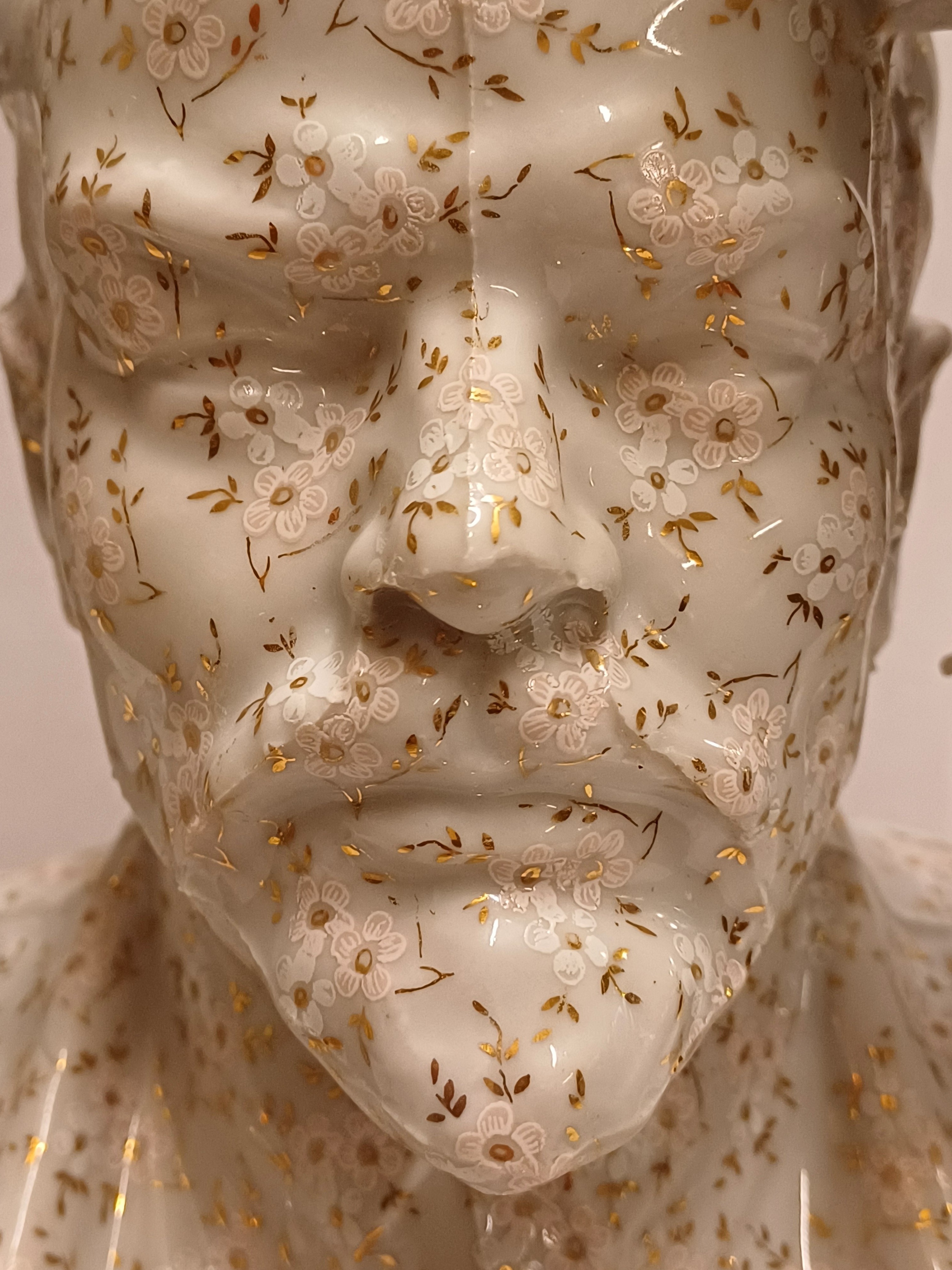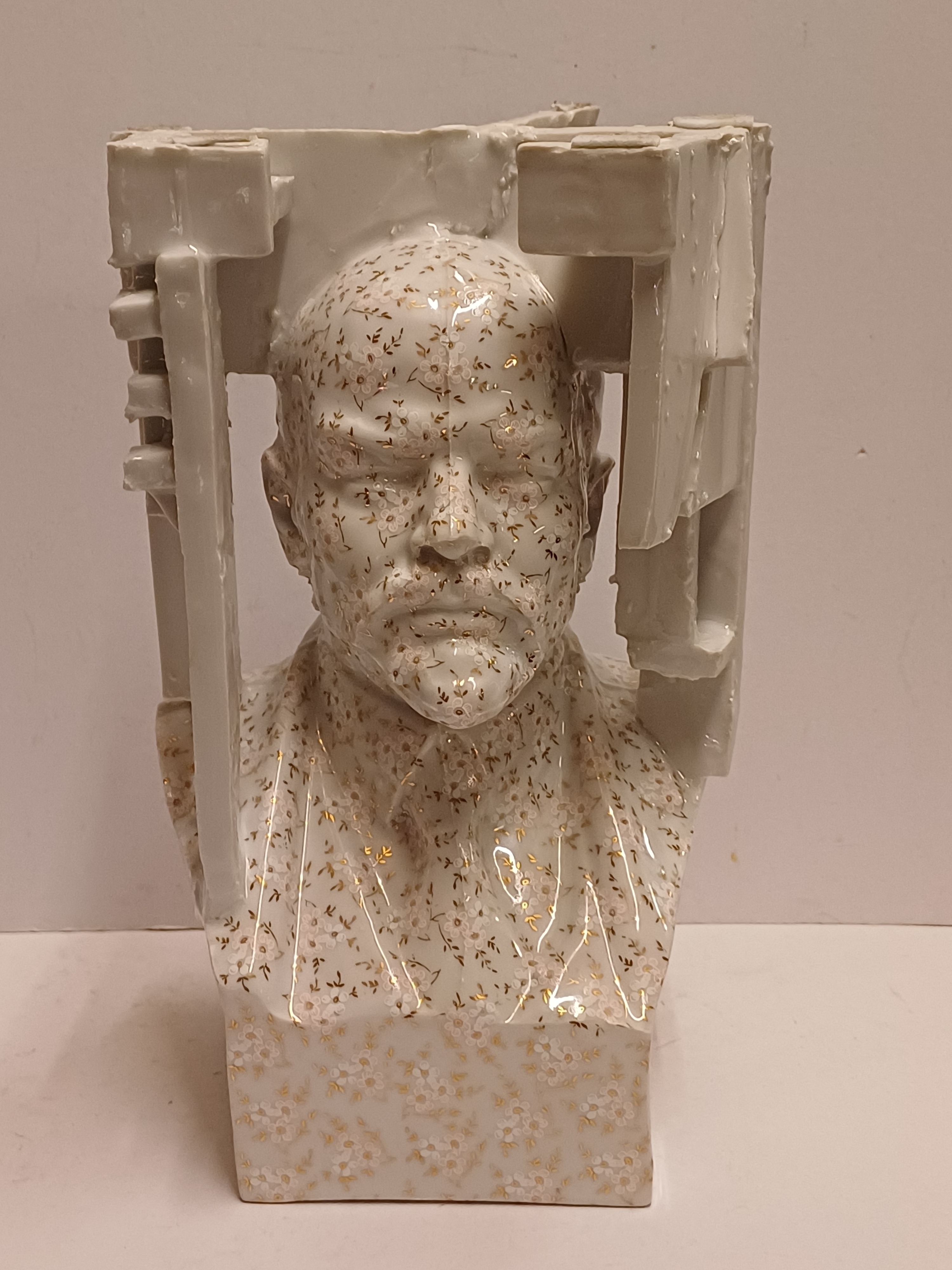 Jarrón de porcelana en forma de busto invertido de Lenin. Titulado "Vladimir Iljitch-Roses". Firmado en la parte inferior. 2011