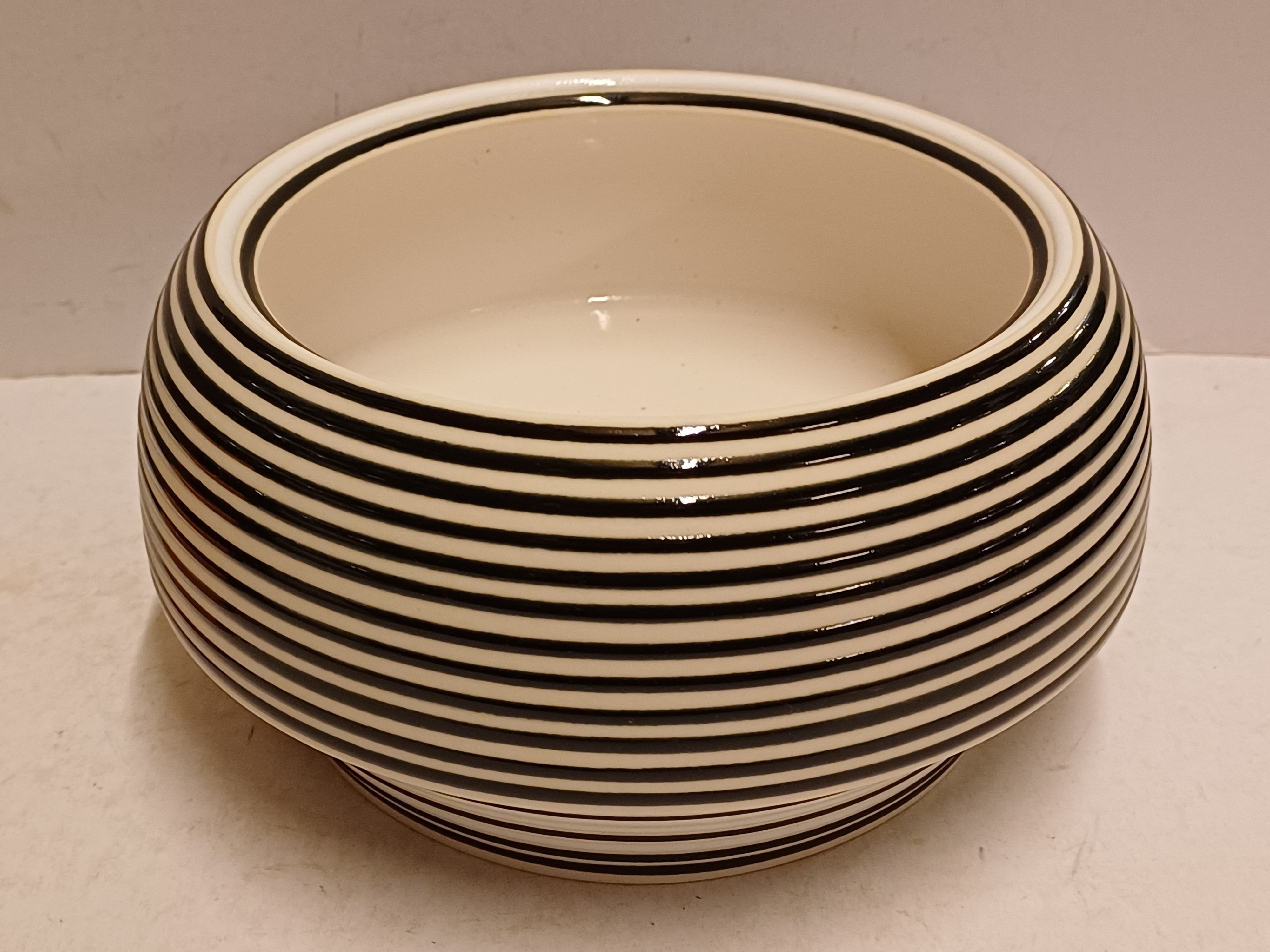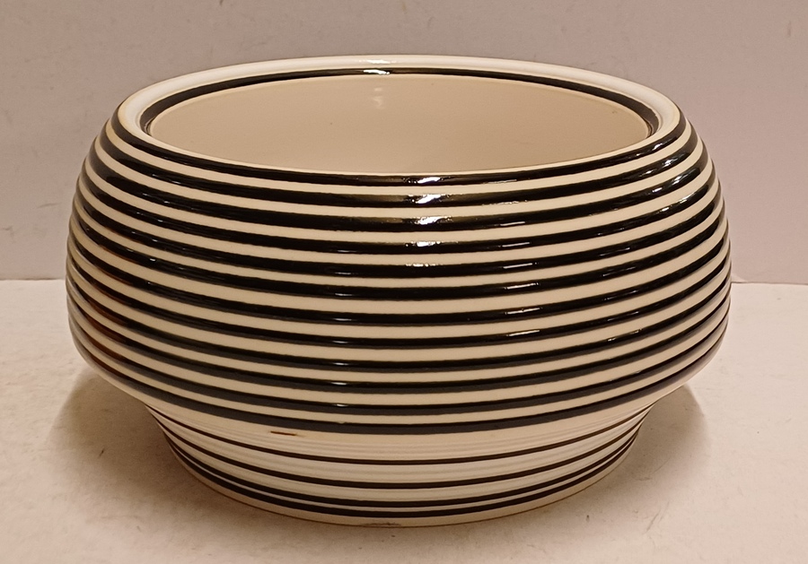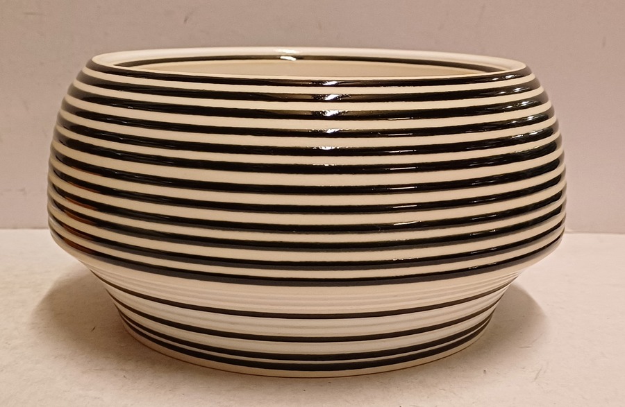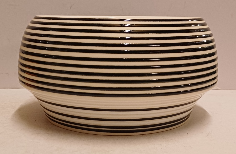 Hand gedraaide klom met verticaal lijnenspel in zwart. Onderzijde met kunstenaars monogram.