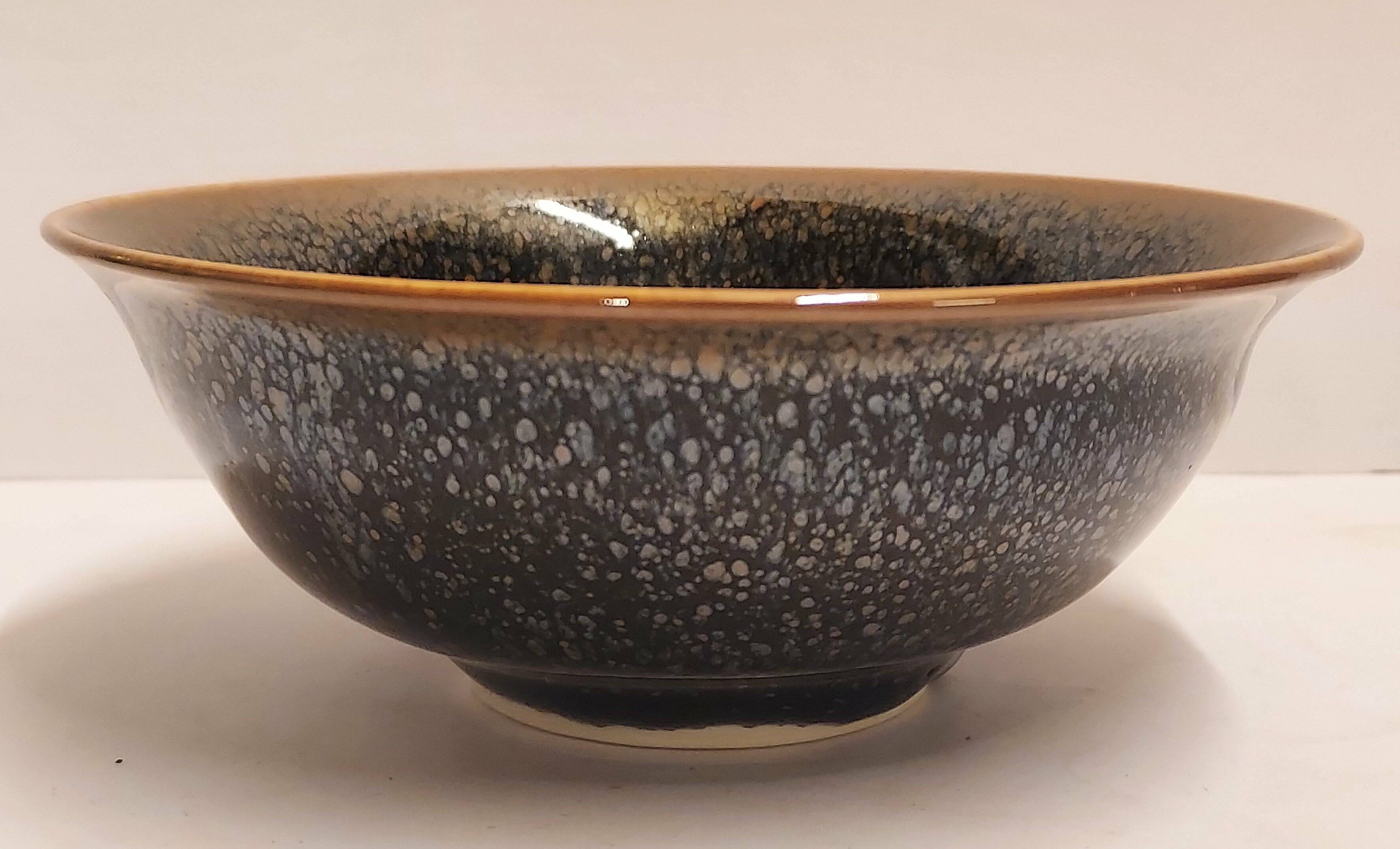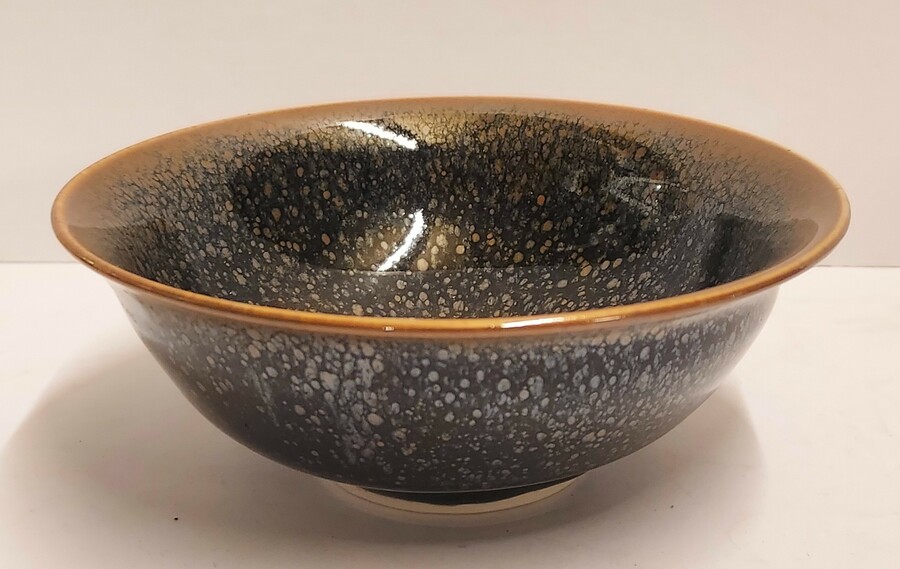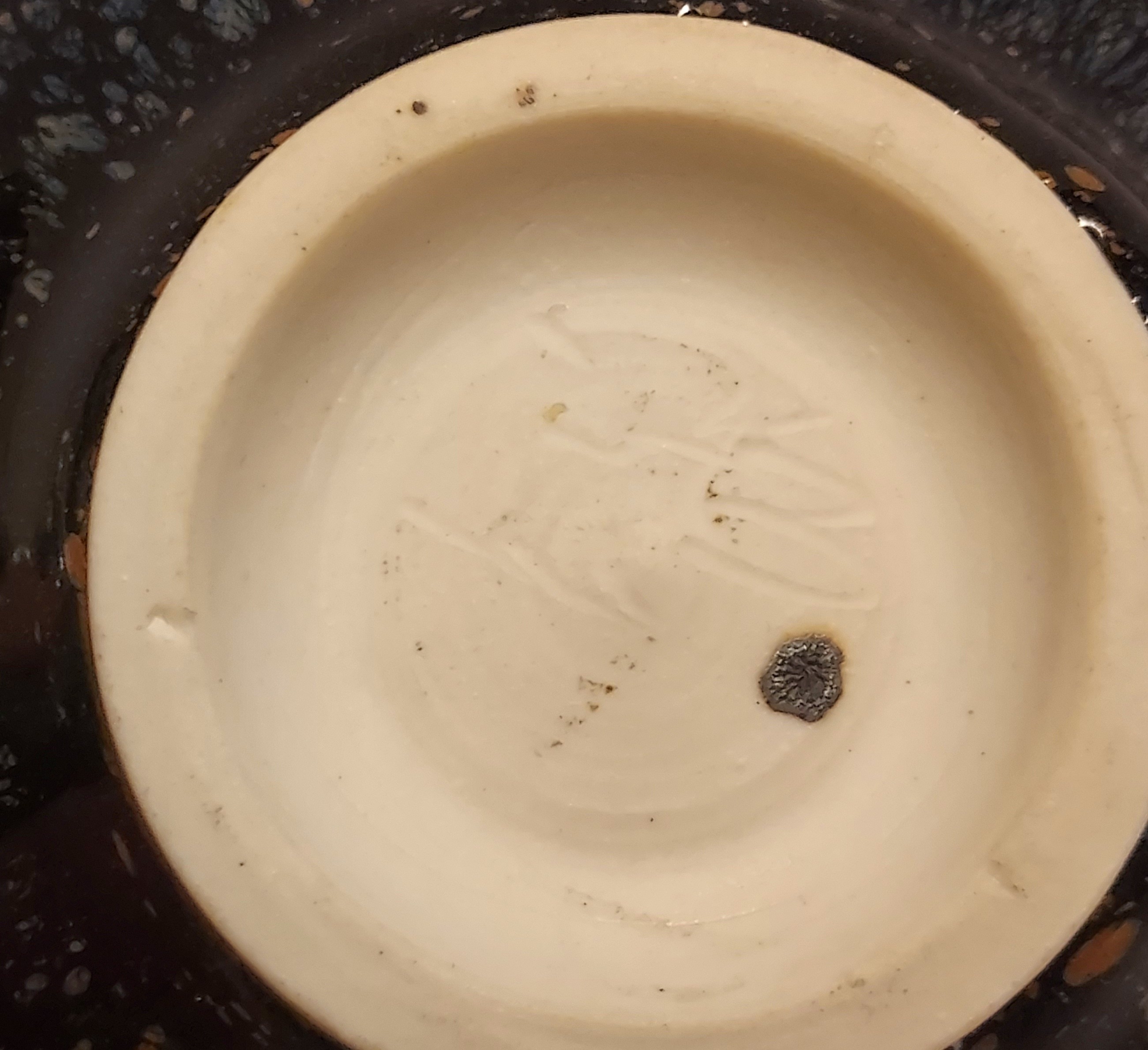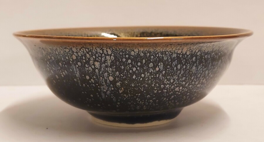 Con esmalte Tenmoku moteado. La parte inferior está firmada.