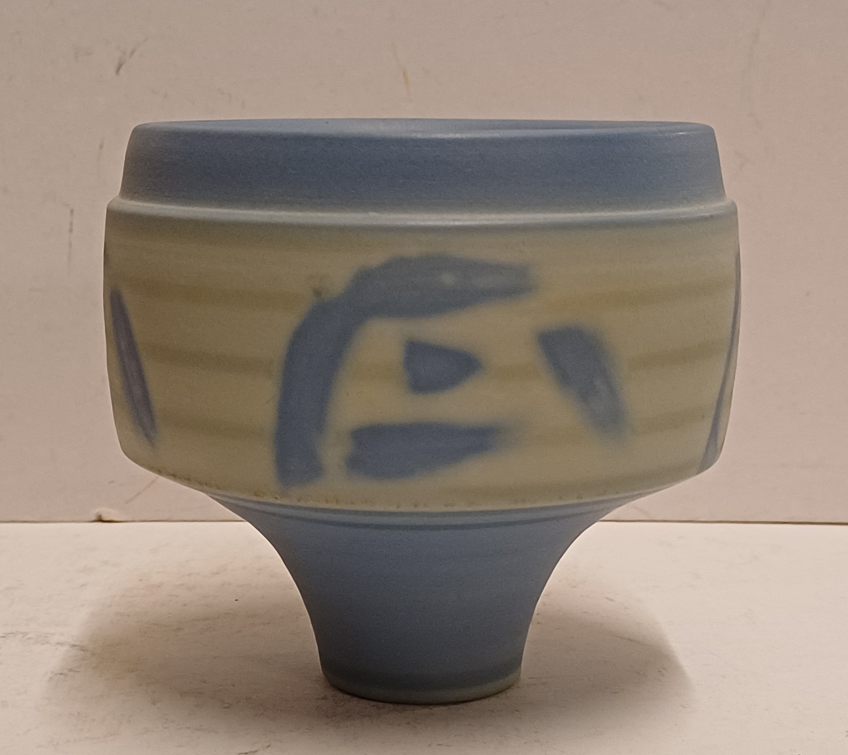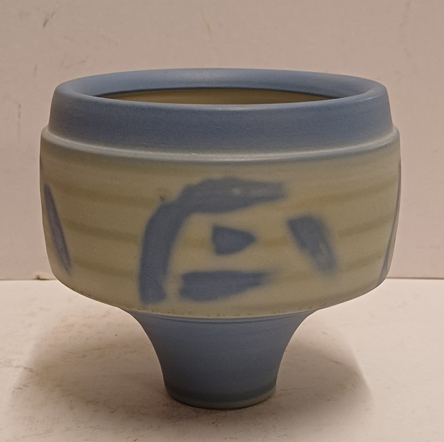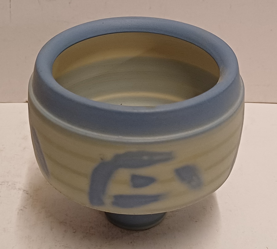 Aardewerken gedraaide kom met blauwe decoratie. Onderzijde niet gesigneerd.