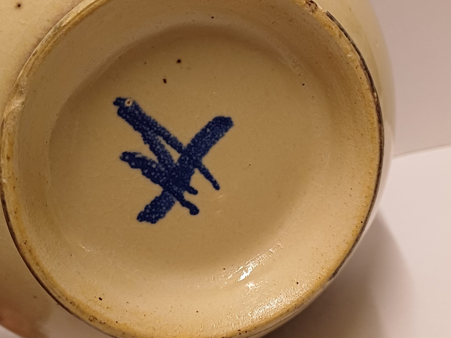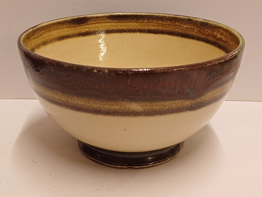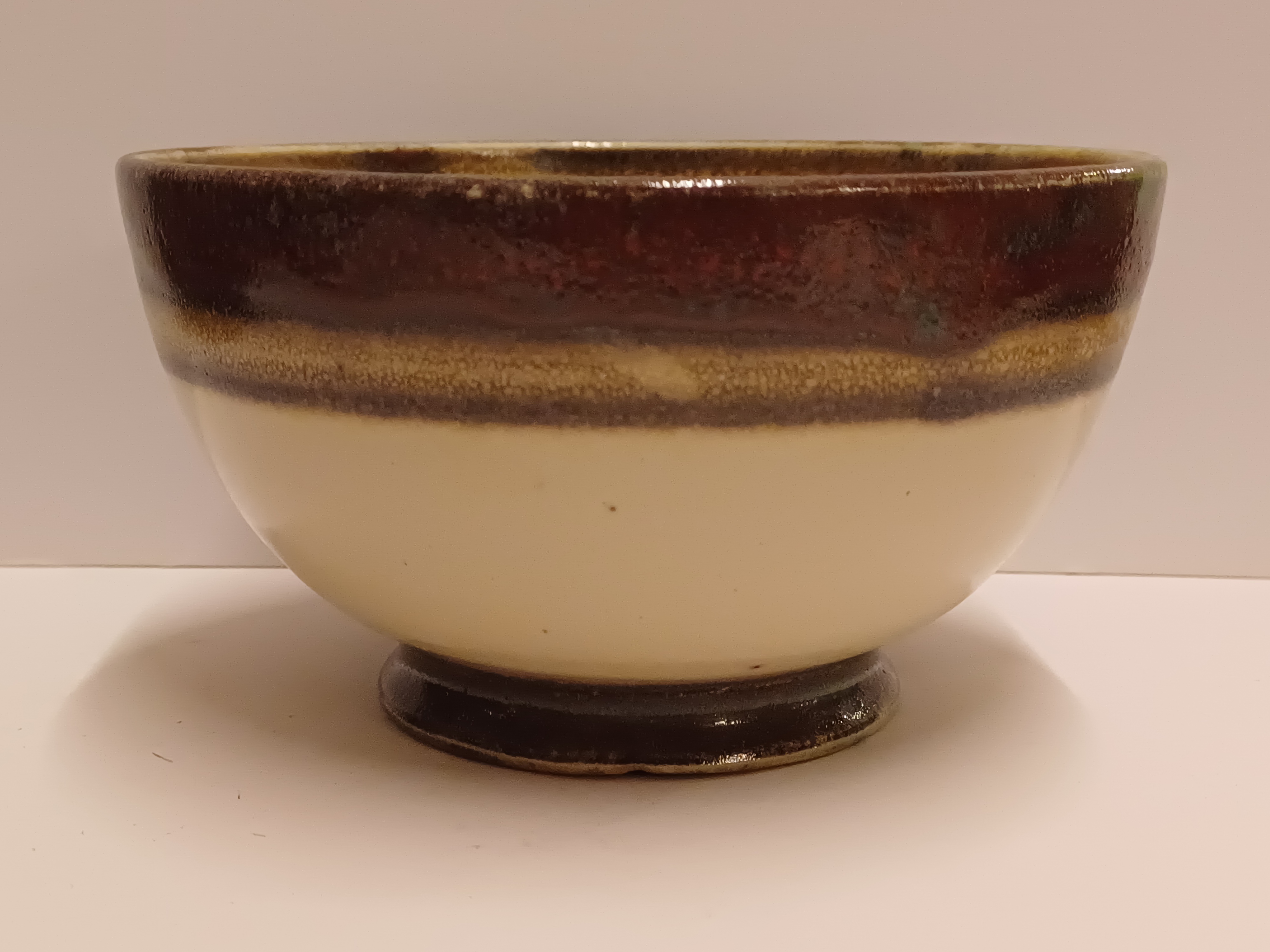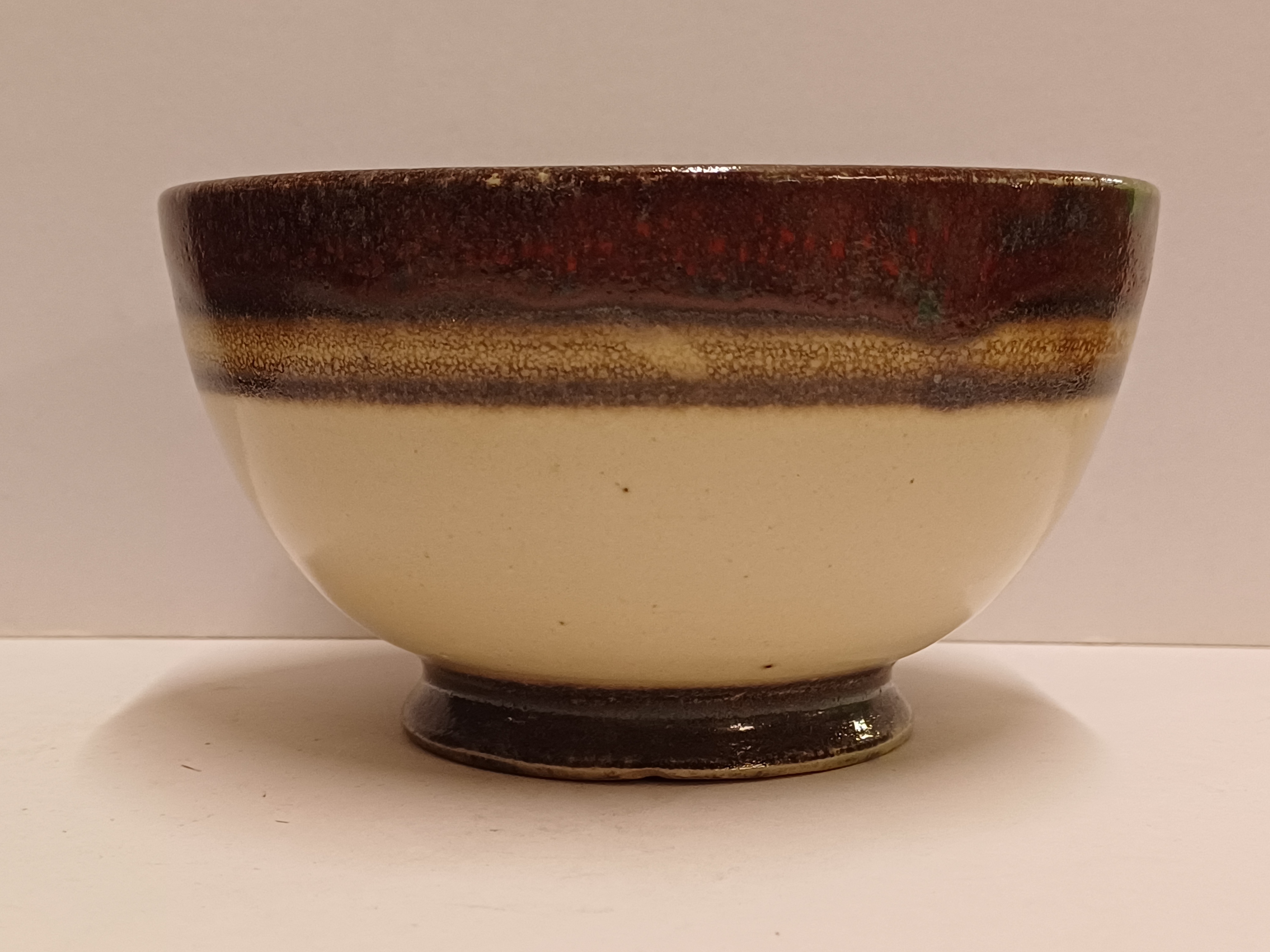 Aardewerken kom met horizontaal band decor. Onderzijde met signatuur.