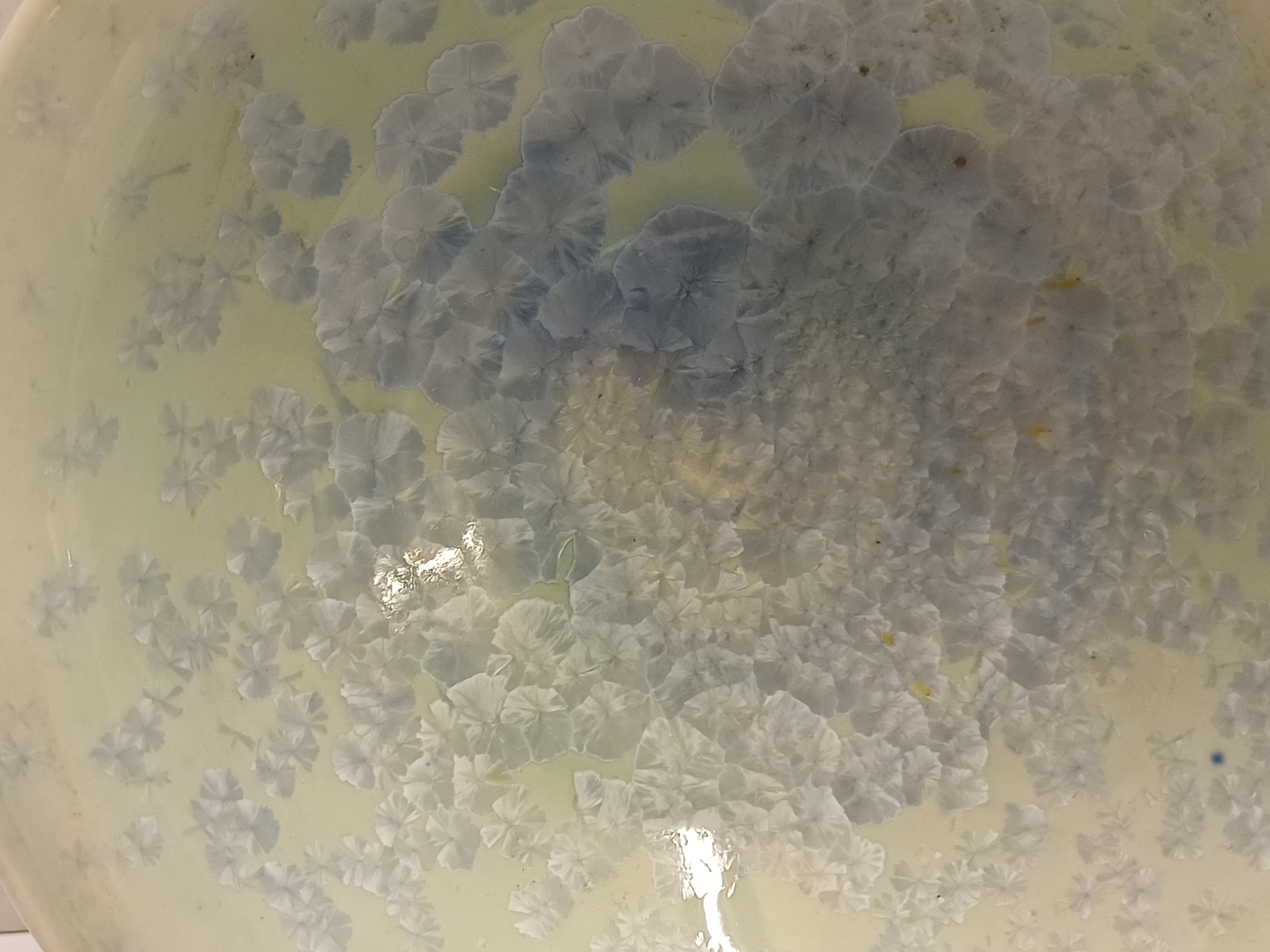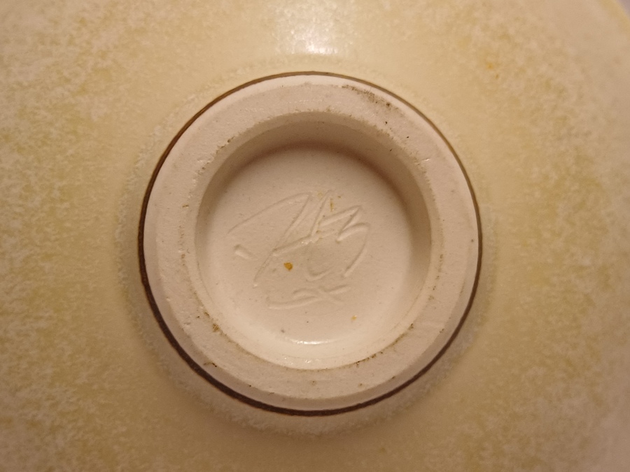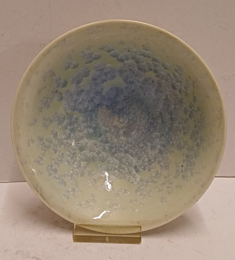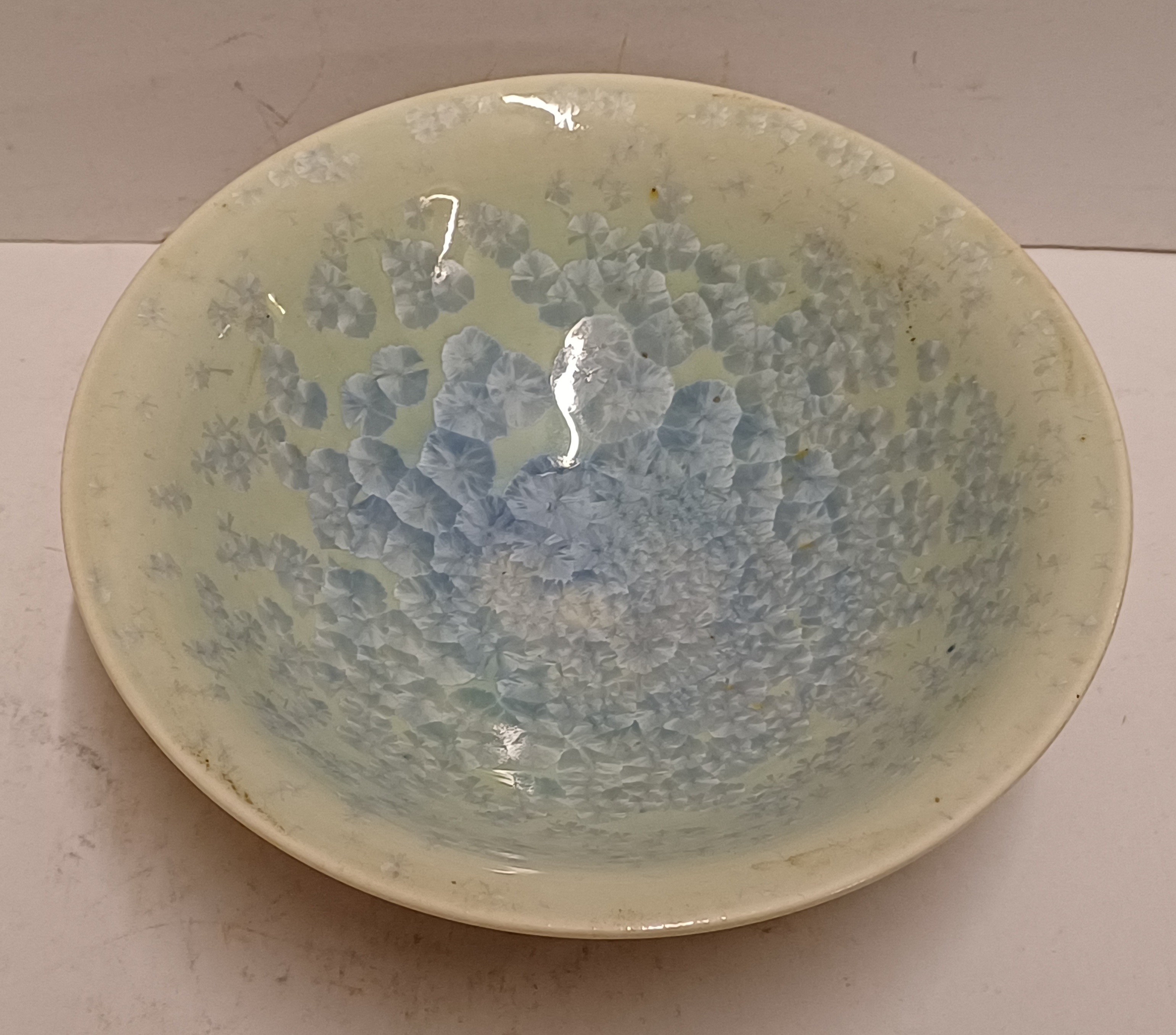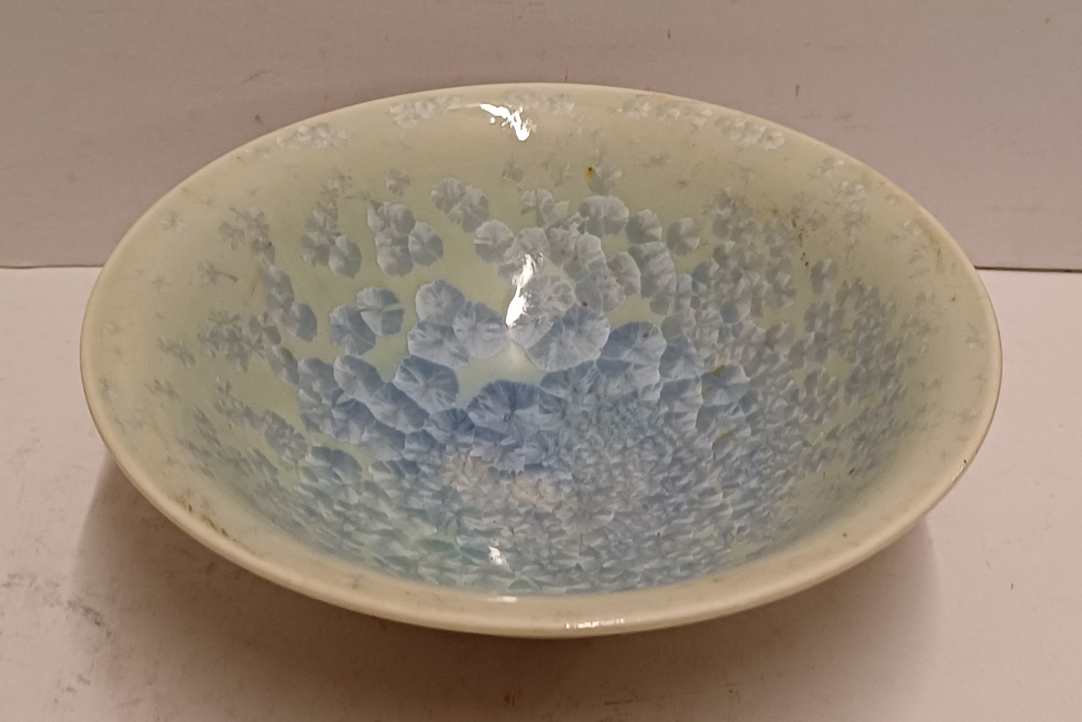 Steengoed kom met kristal glazuur aan de binnenzijde. Onderzijde gesigneerd.