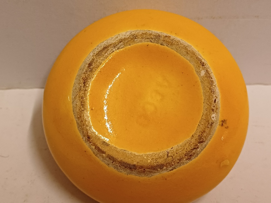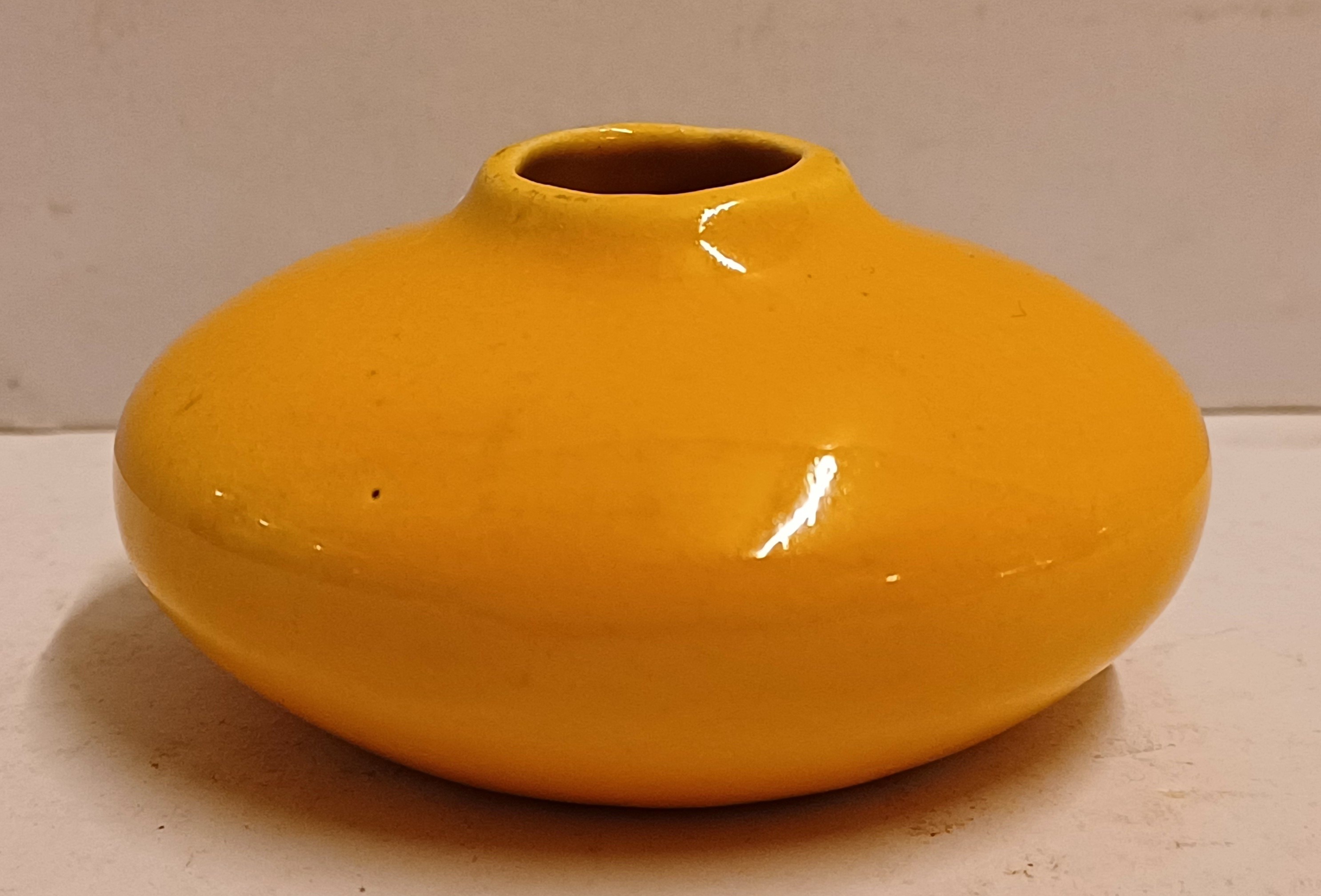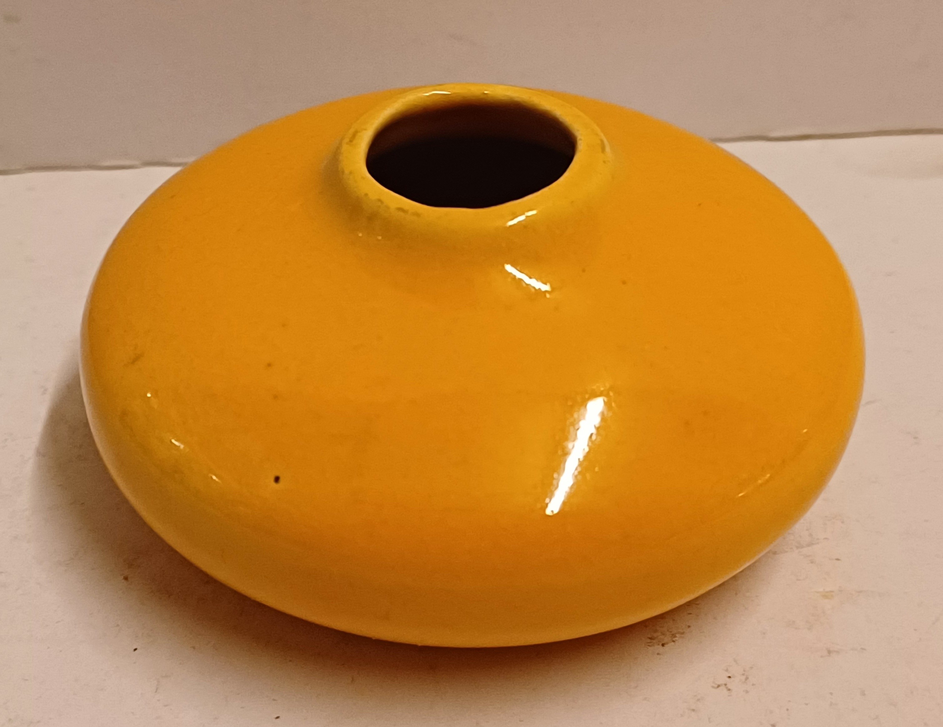 Jarrón de cerámica esmaltado en color ocre amarillo. Con marca en la parte inferior.