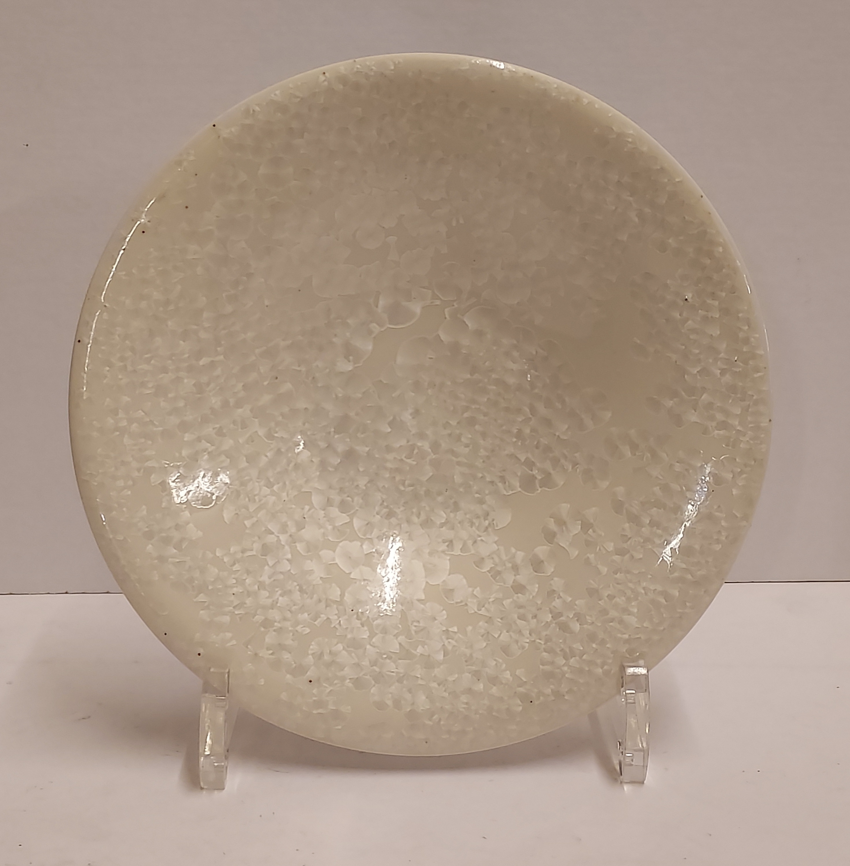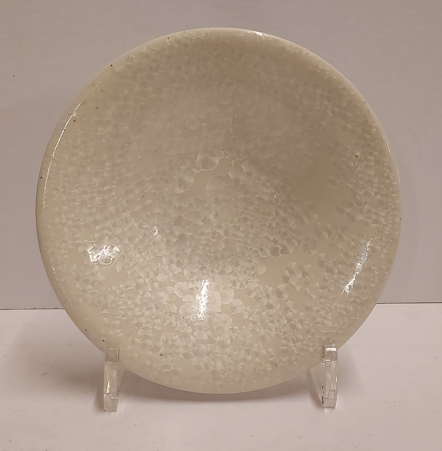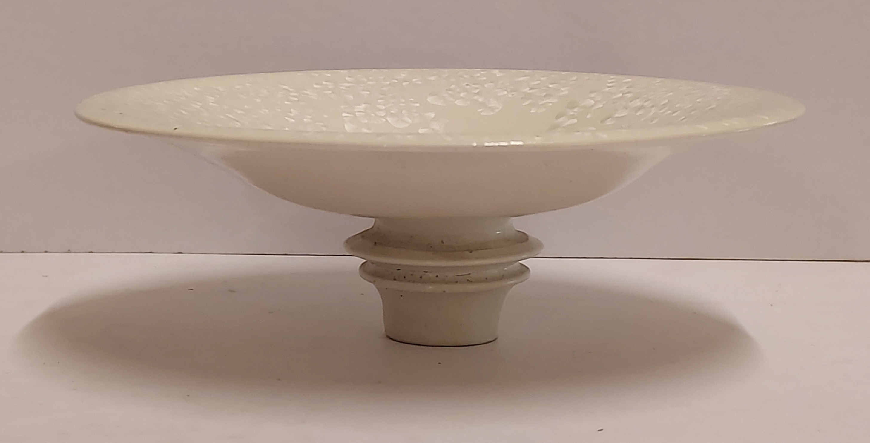 Pie con doble cuello, la parte superior con esmalte cristalino color marfil. Firmado con monograma.