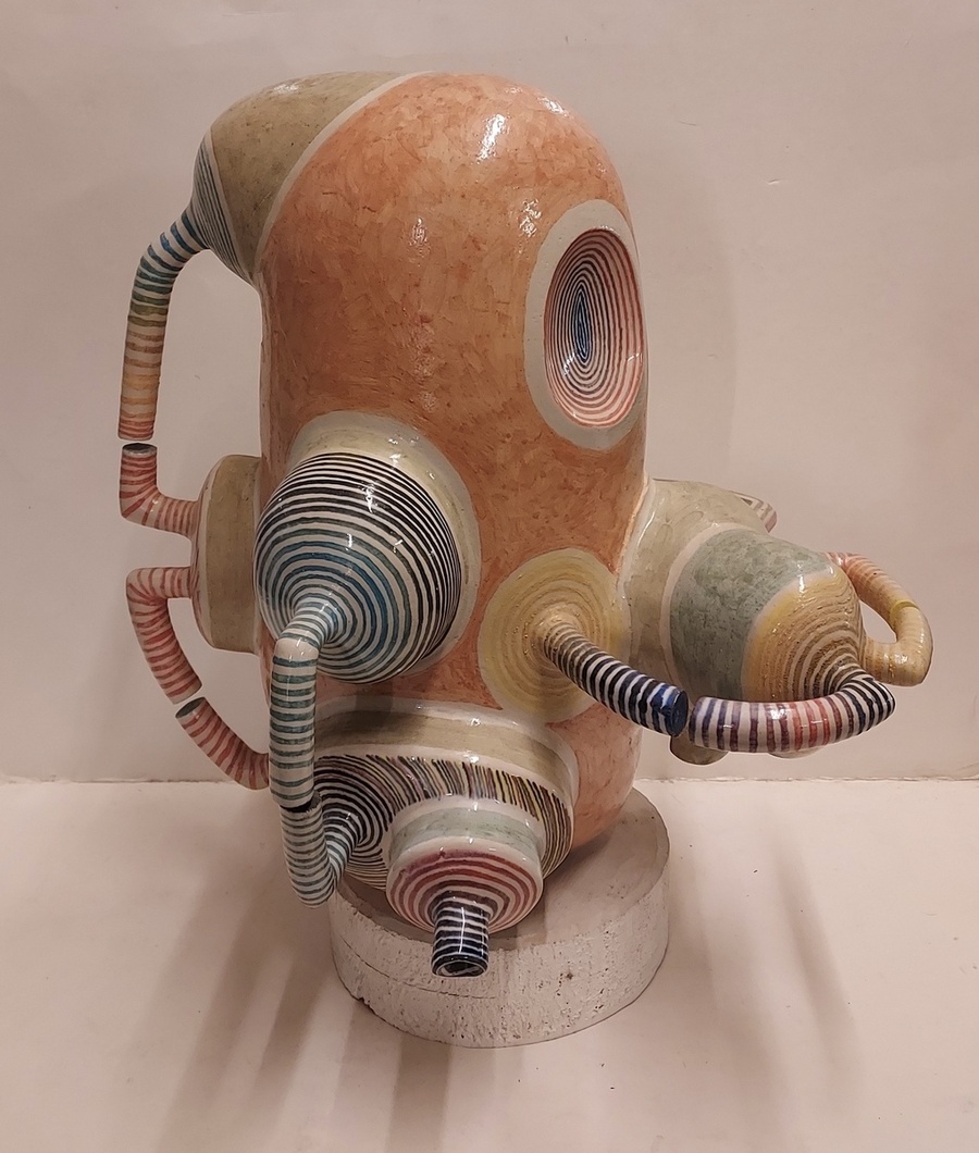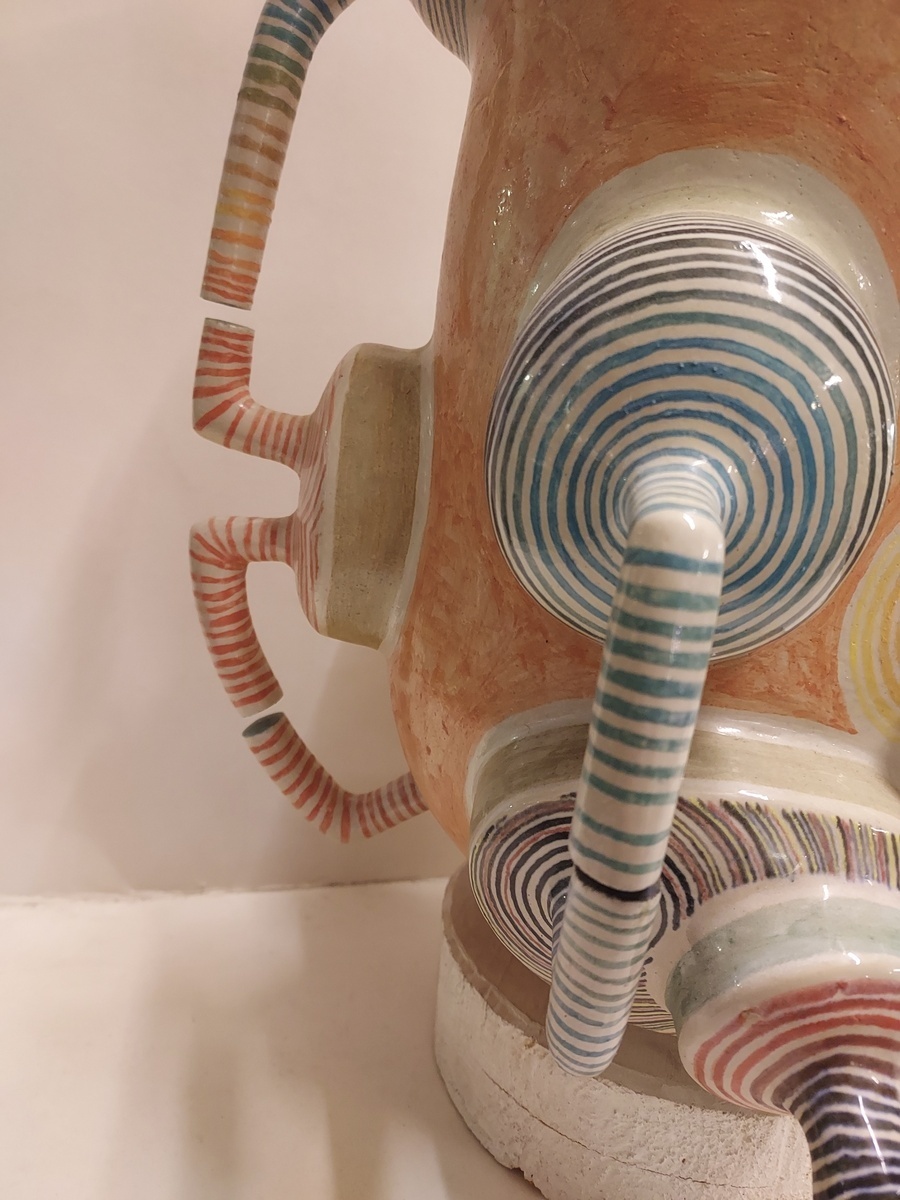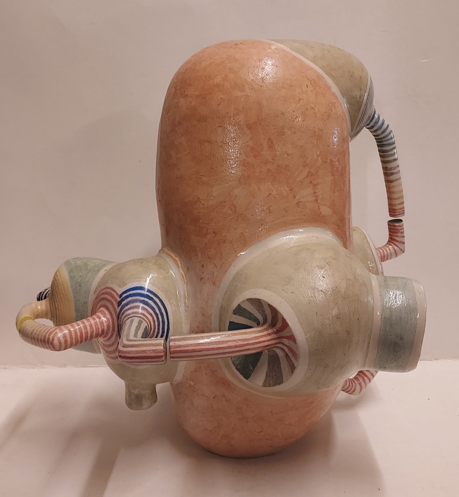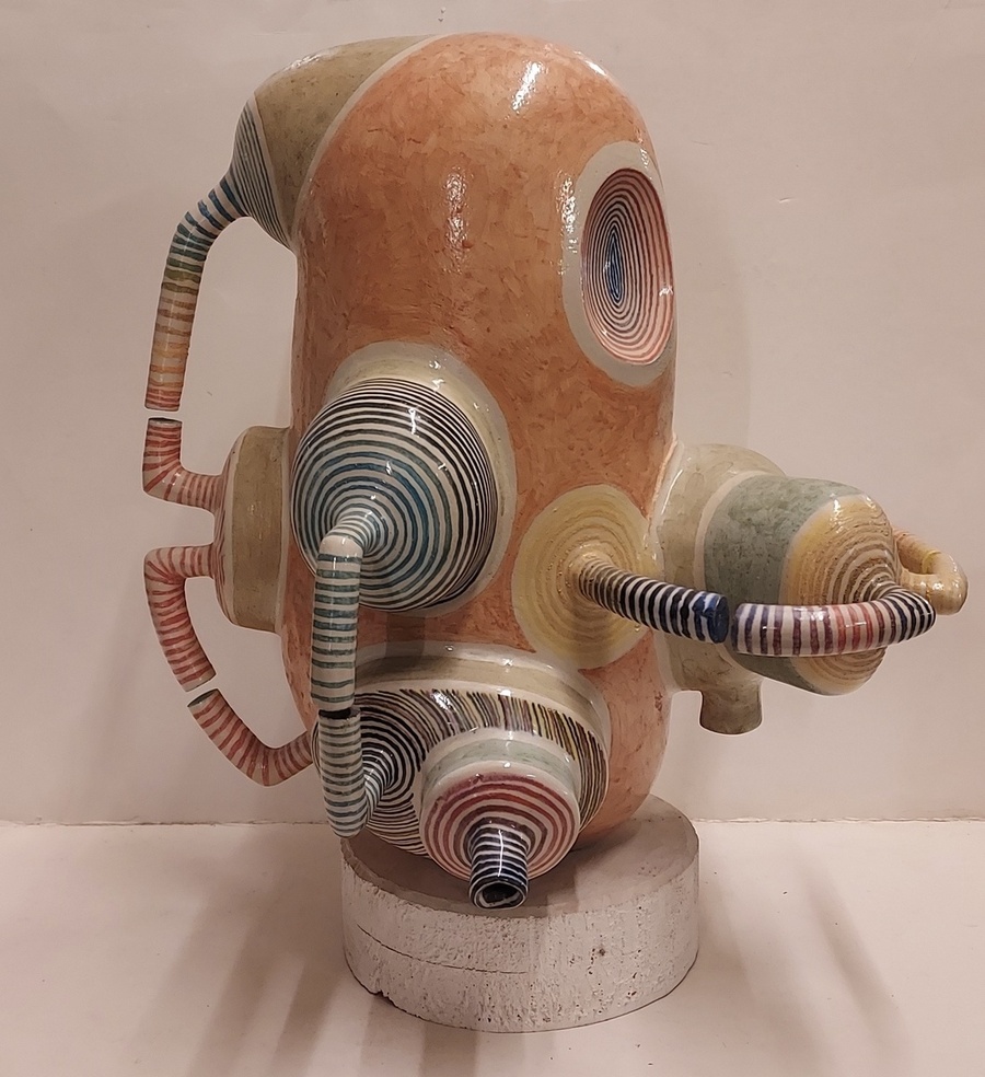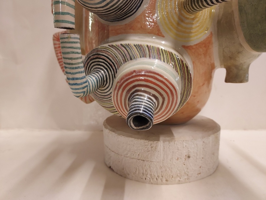 Escultura espacial de Gert de Rijk en colaboración con Z4. El grupo Z4 es una cooperativa cerámica compuesta por Gert de Rijk, Gerard van Rooy, Anco van der Haar y Henk van der Haar. Z4 realiza coproducciones cerámicas que permiten la aportación creativa de los cuatro miembros del grupo. Procedencia: Galería Katuin Groningen 1993. (con recibo de compra)