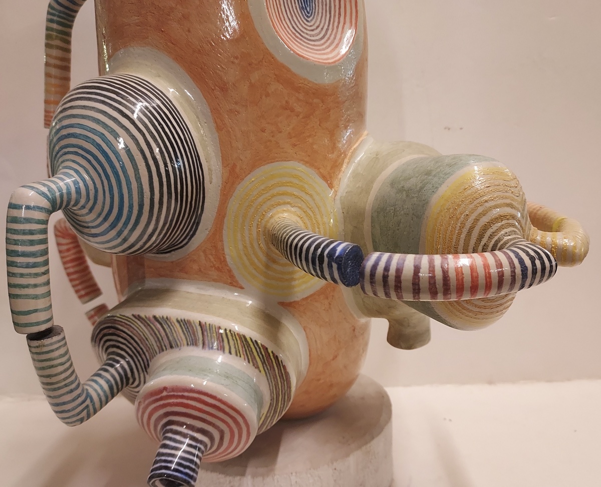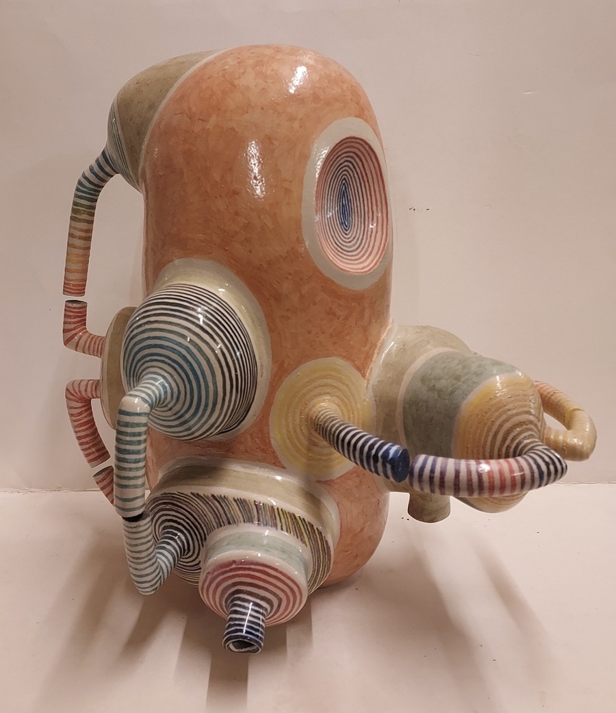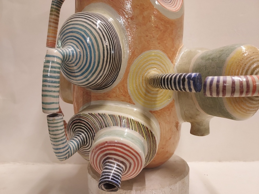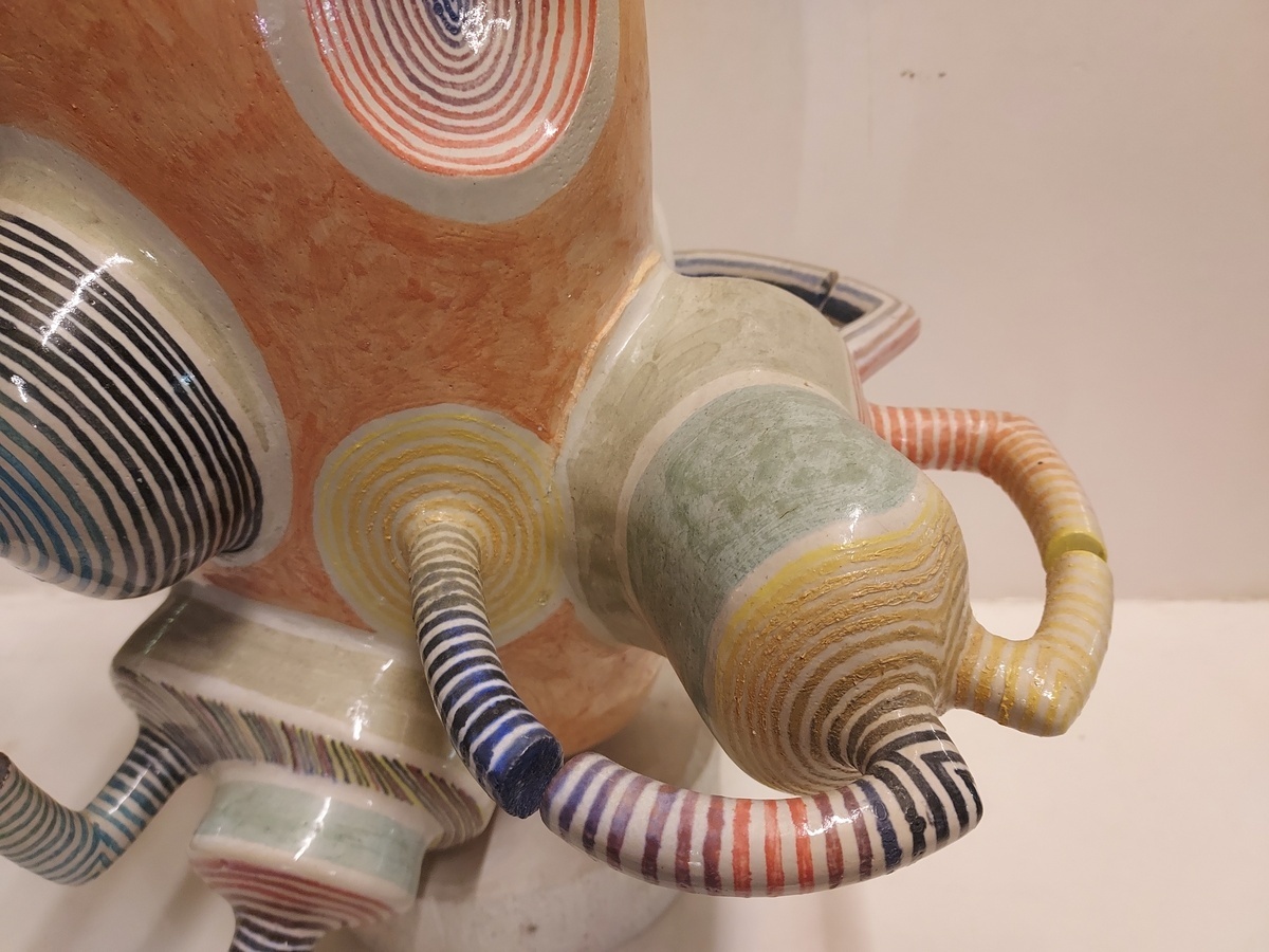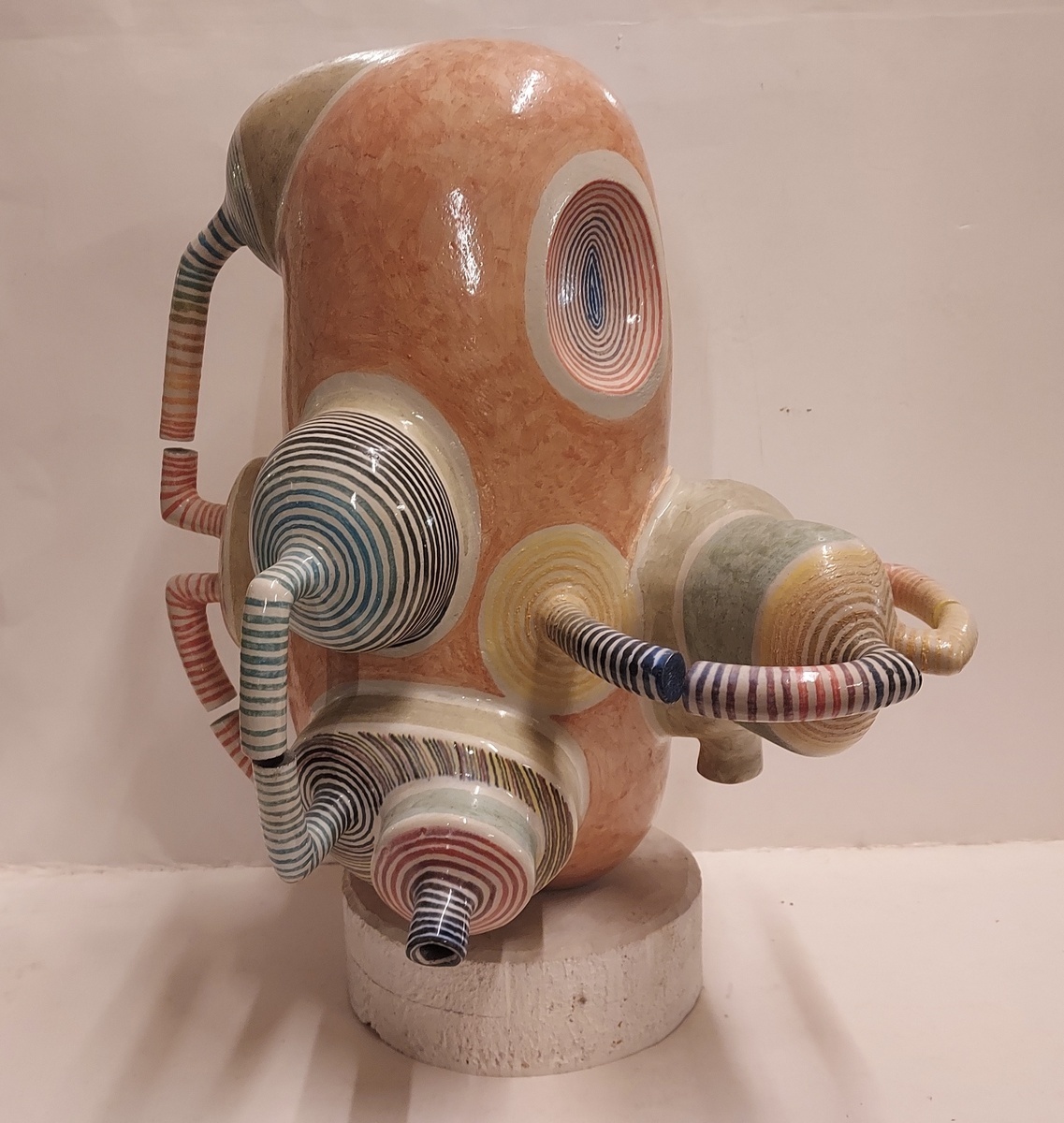 Escultura espacial de Gert de Rijk en colaboración con Z4. El grupo Z4 es una cooperativa cerámica compuesta por Gert de Rijk, Gerard van Rooy, Anco van der Haar y Henk van der Haar. Z4 realiza coproducciones cerámicas que permiten la aportación creativa de los cuatro miembros del grupo. Procedencia: Galería Katuin Groningen 1993. (con recibo de compra)