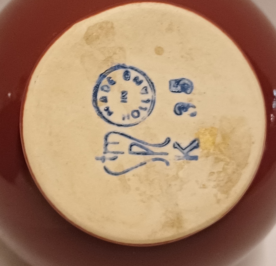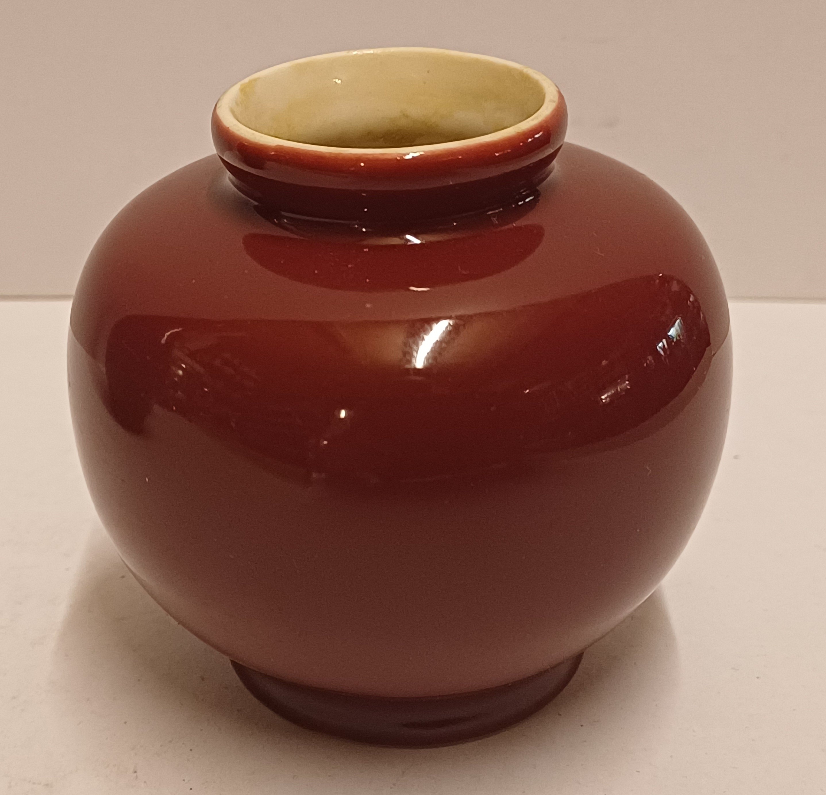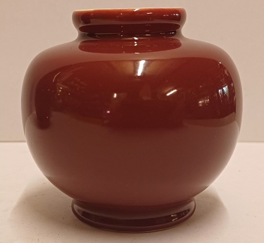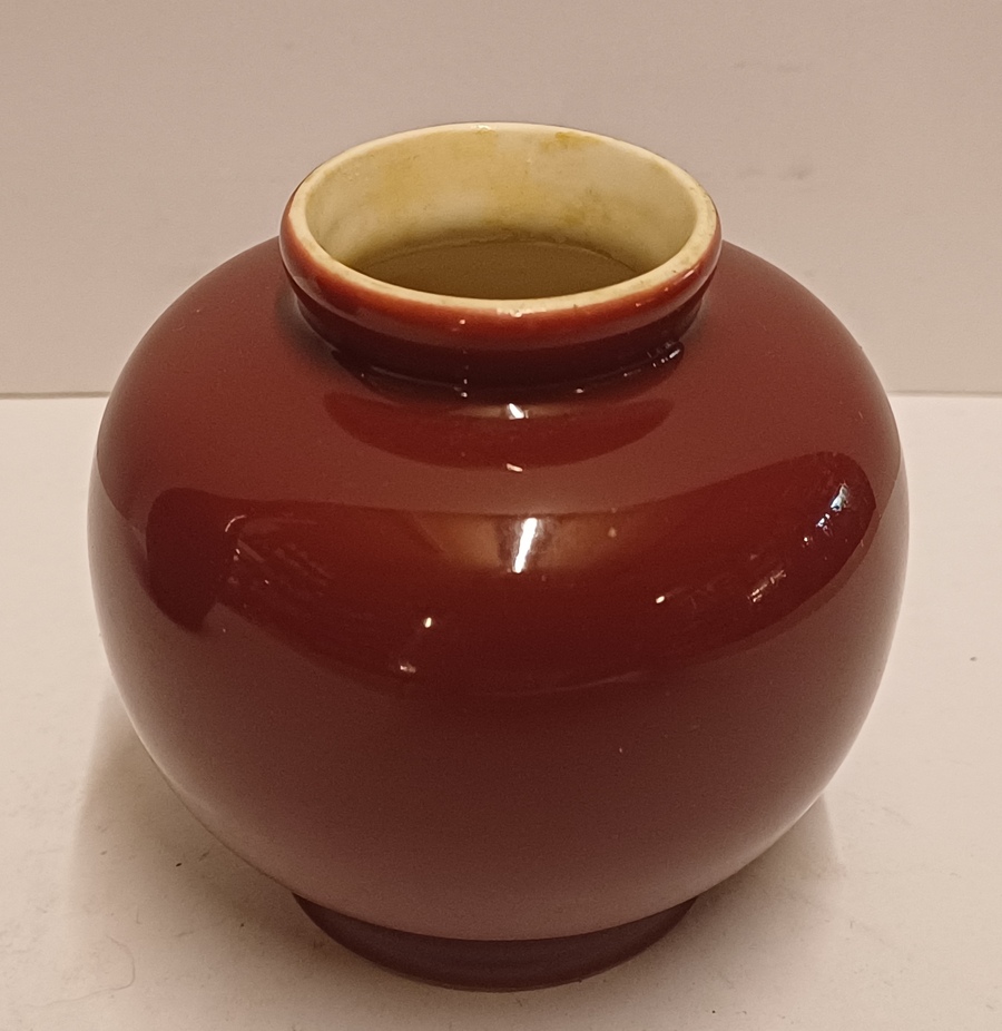 Jarrón de porcelana blanca con esmalte rojo burdeos. Diseño de Han Knaap. Parte inferior con marca de fábrica.