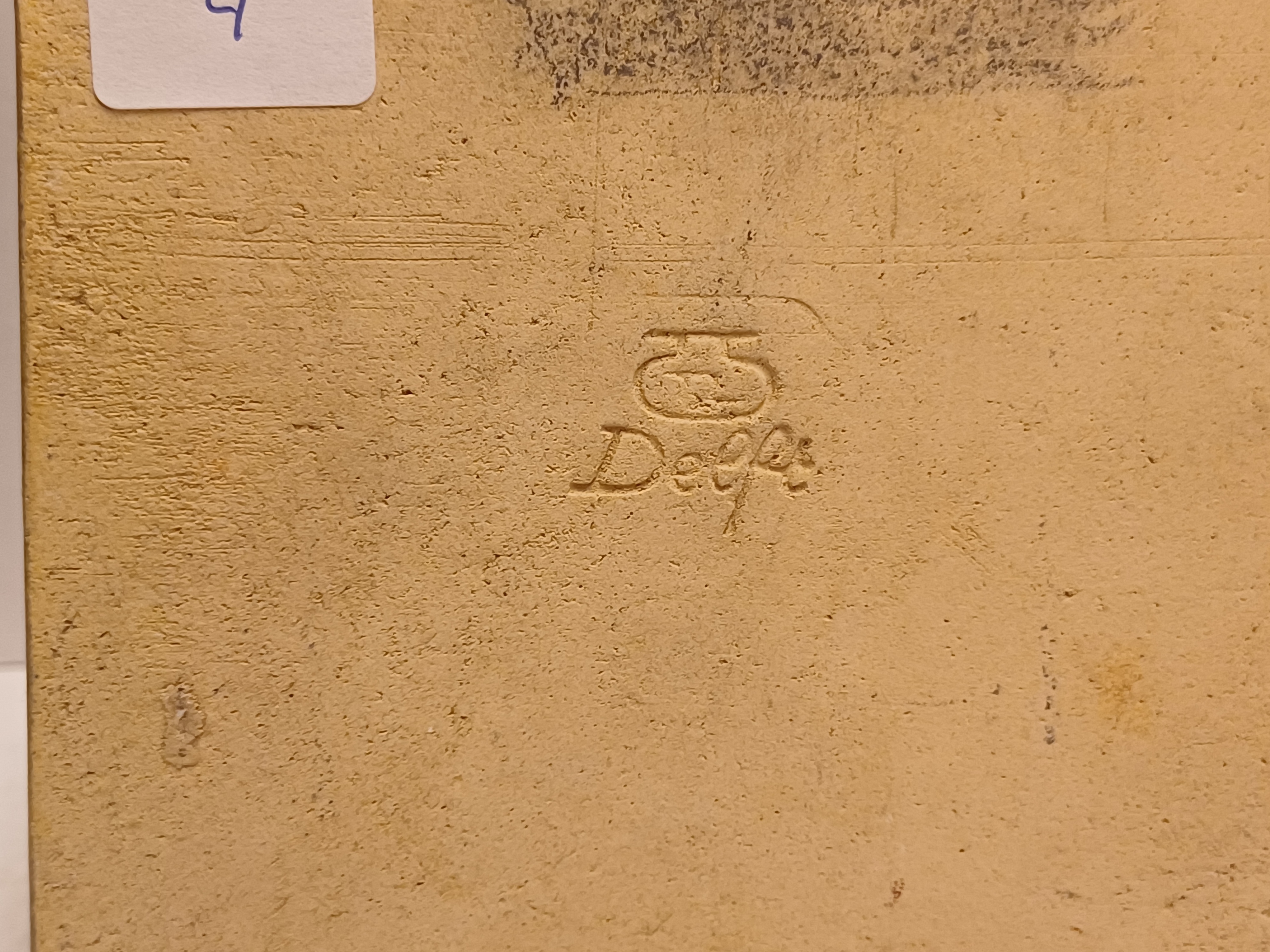 Uitvoering Porceleyne fles Delft. Achterzijde met fabrieksmerk.