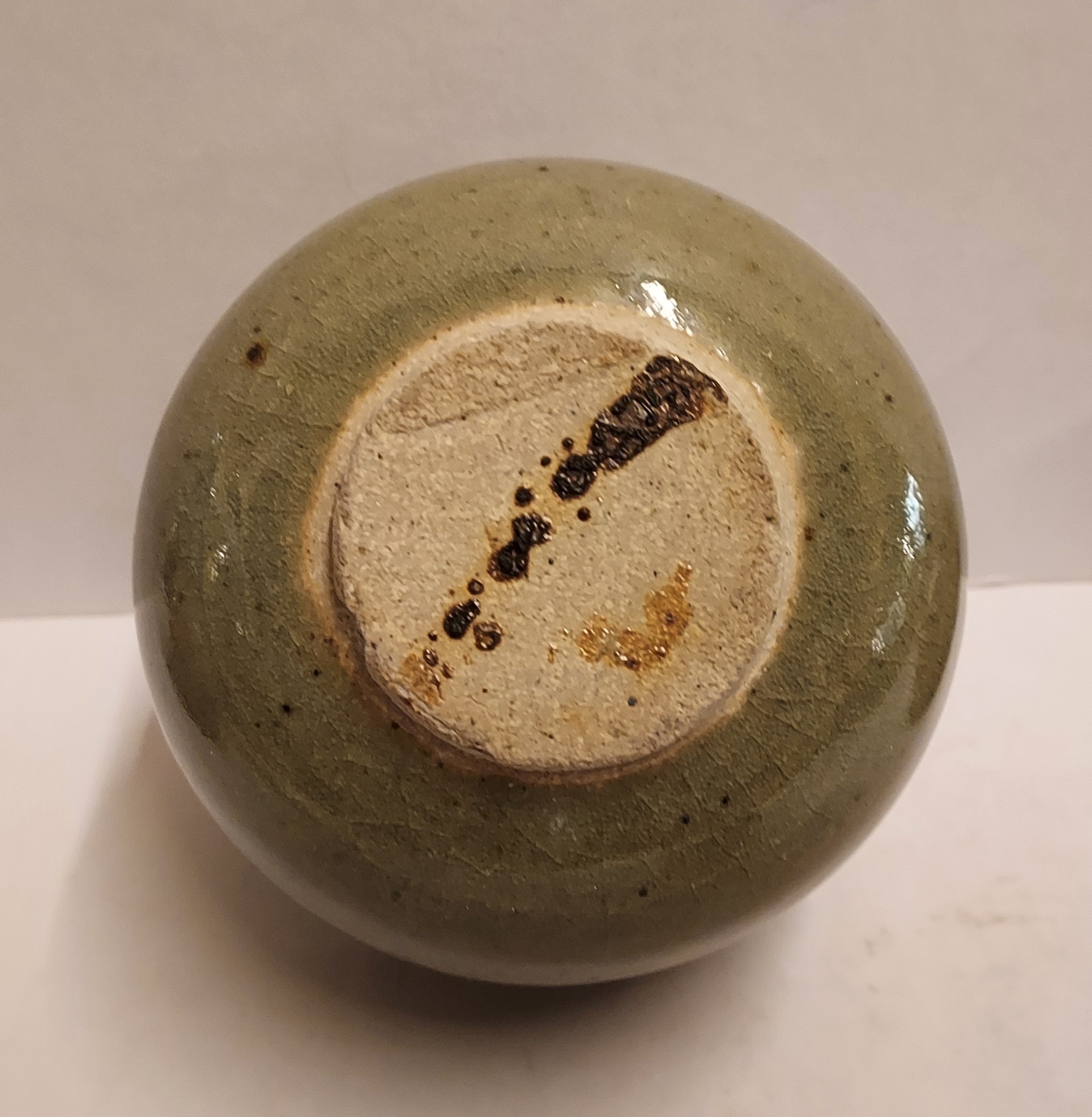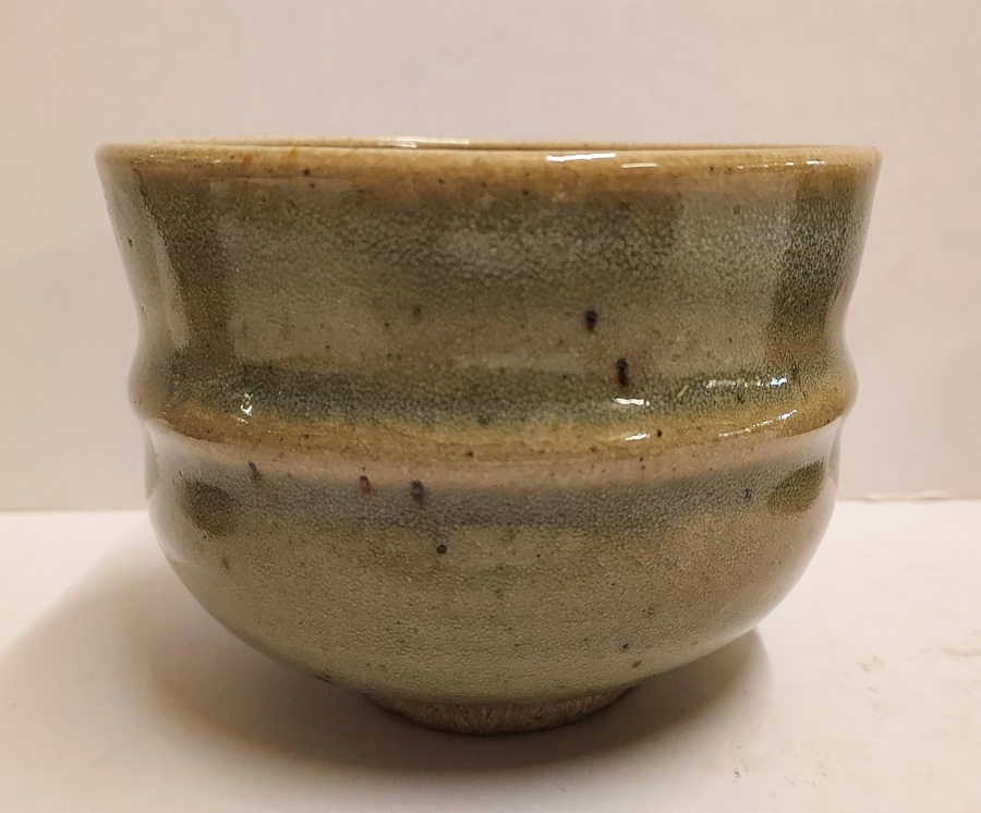 Taza de té de gres con esmalte celadón verde. No firmado.