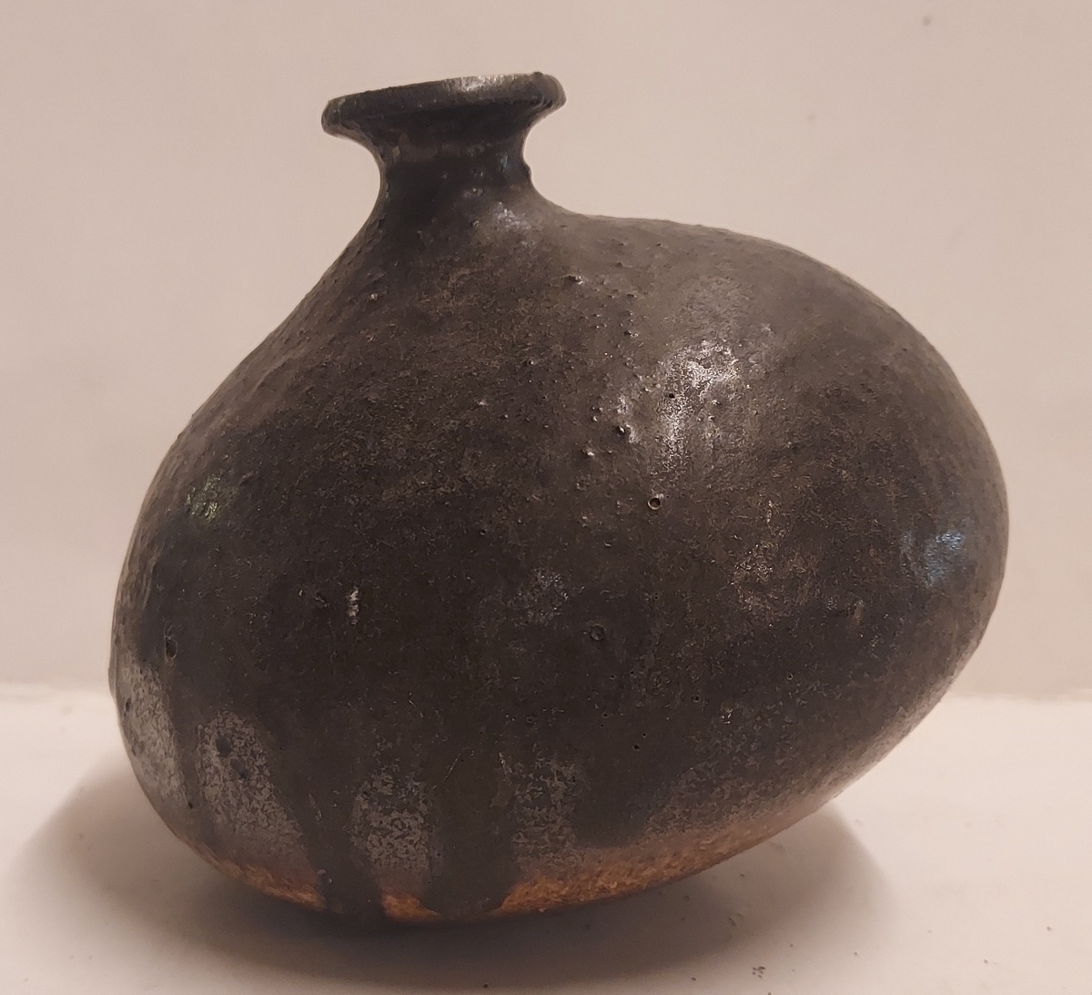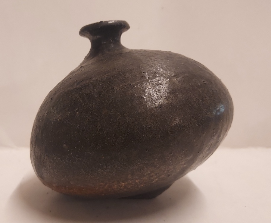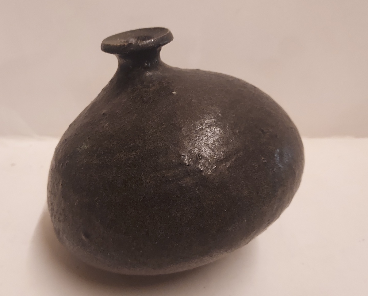 Jarrón biselado con esmalte negro. Marca grabada en la parte inferior.