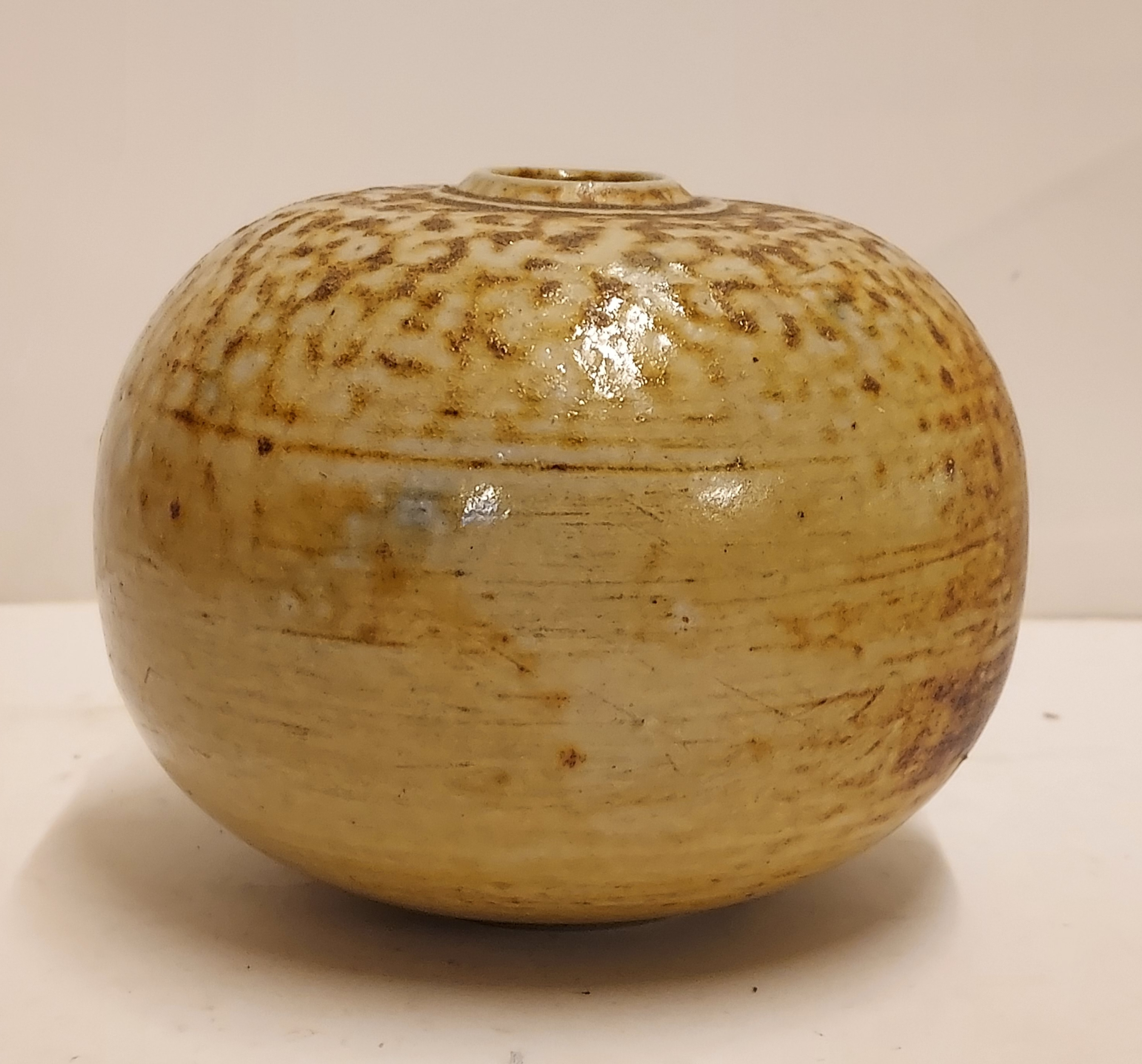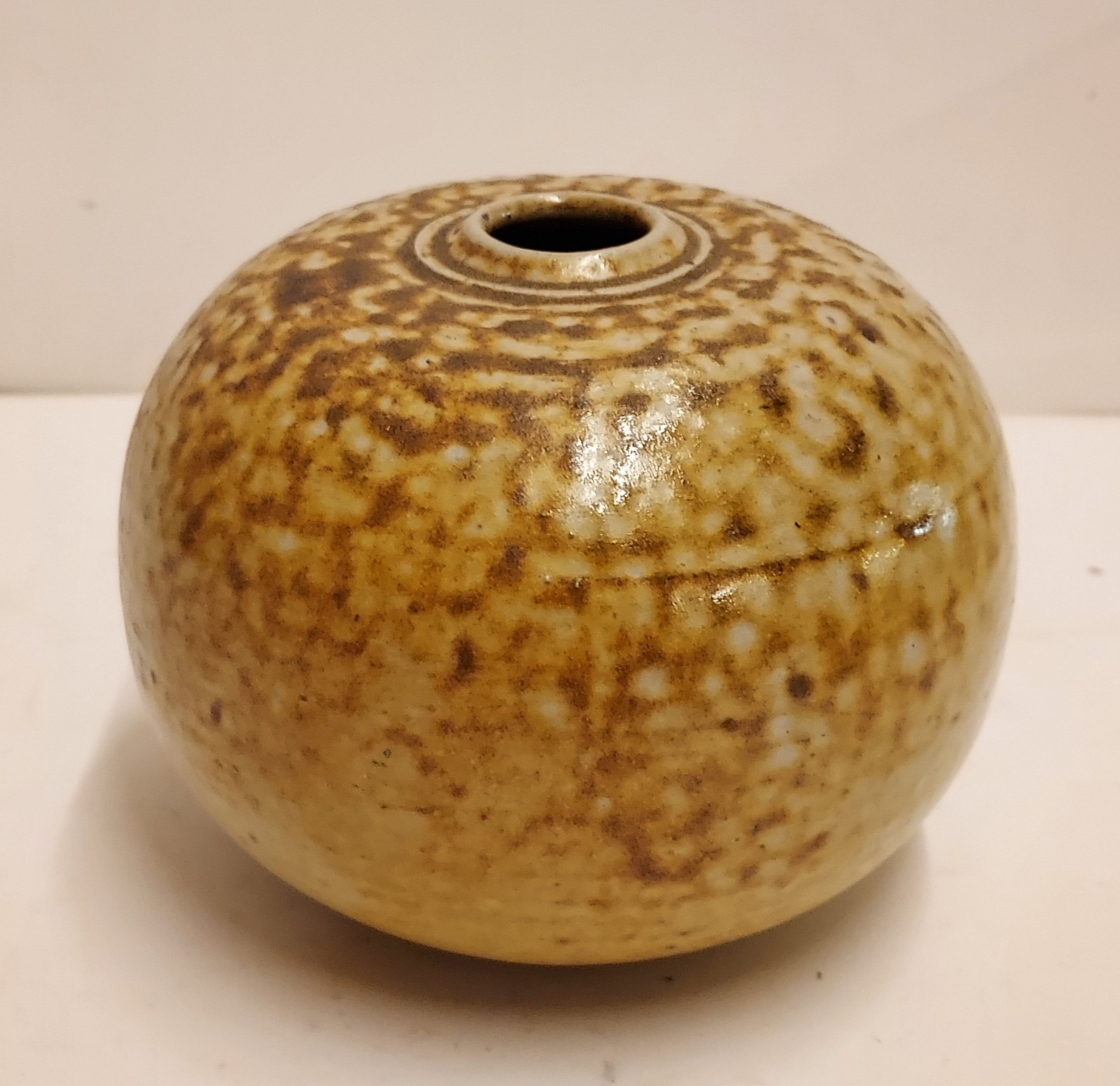 Con esmalte salino moteado. Parte inferior firmada.
