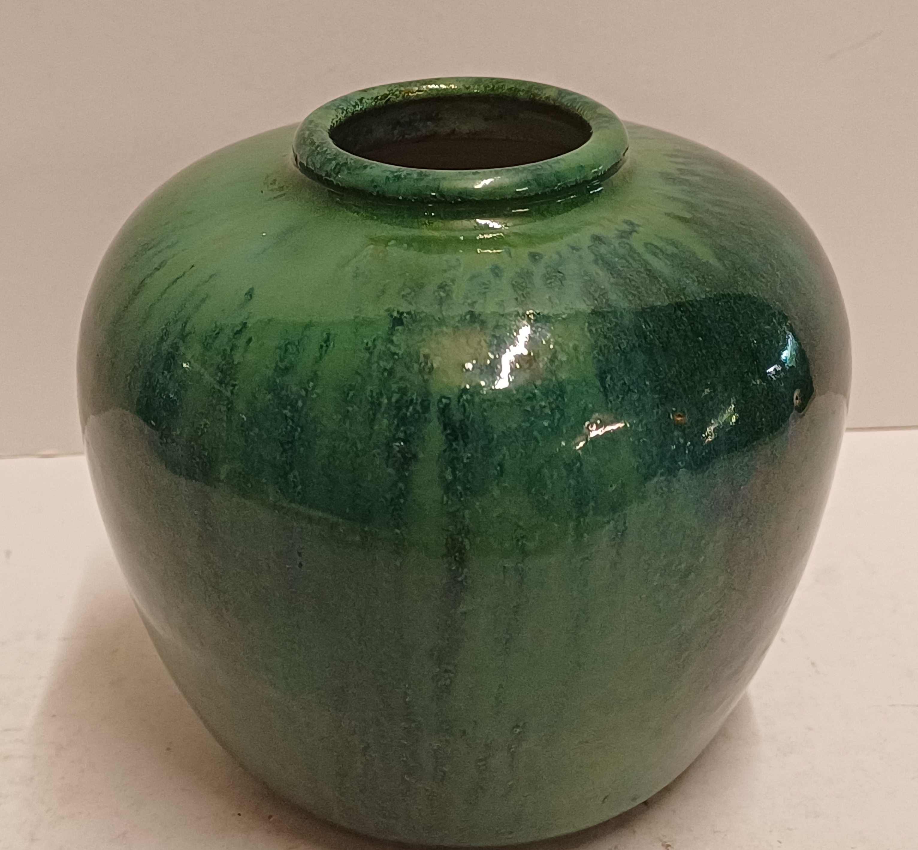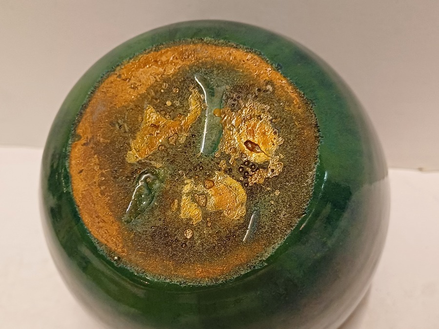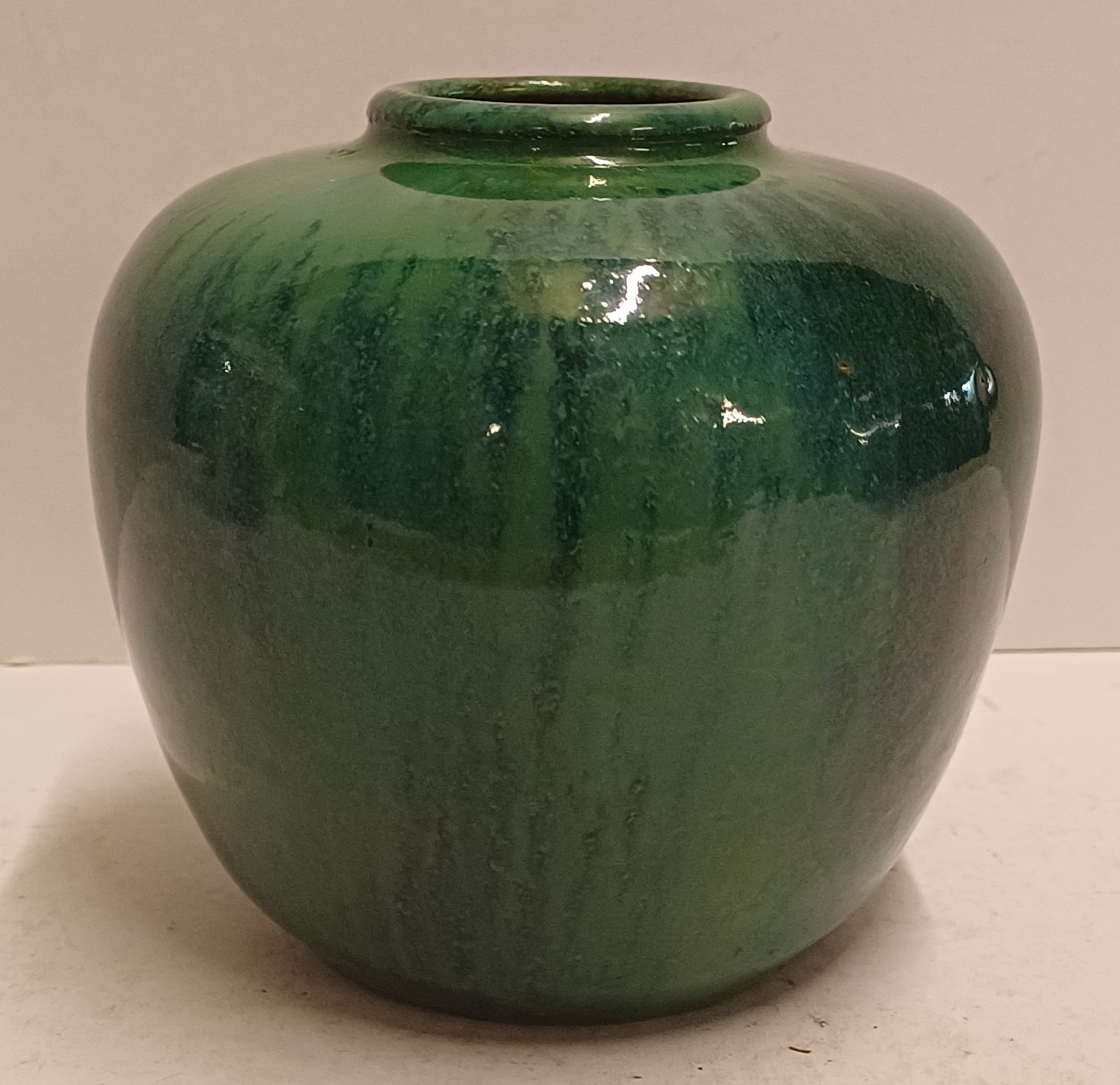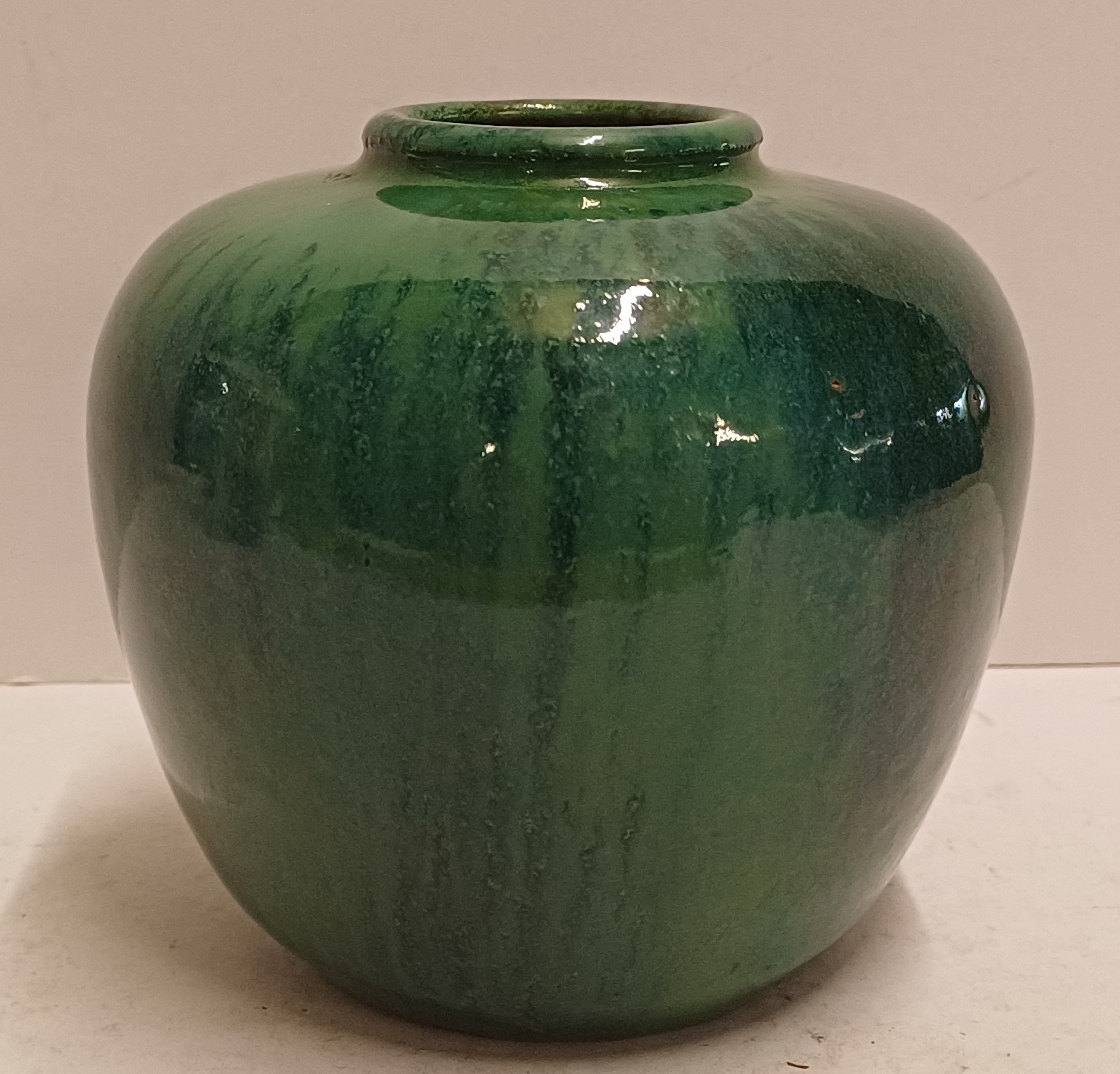 Jarrón abombado con esmalte fluido verde brillante. La parte inferior no está firmada.