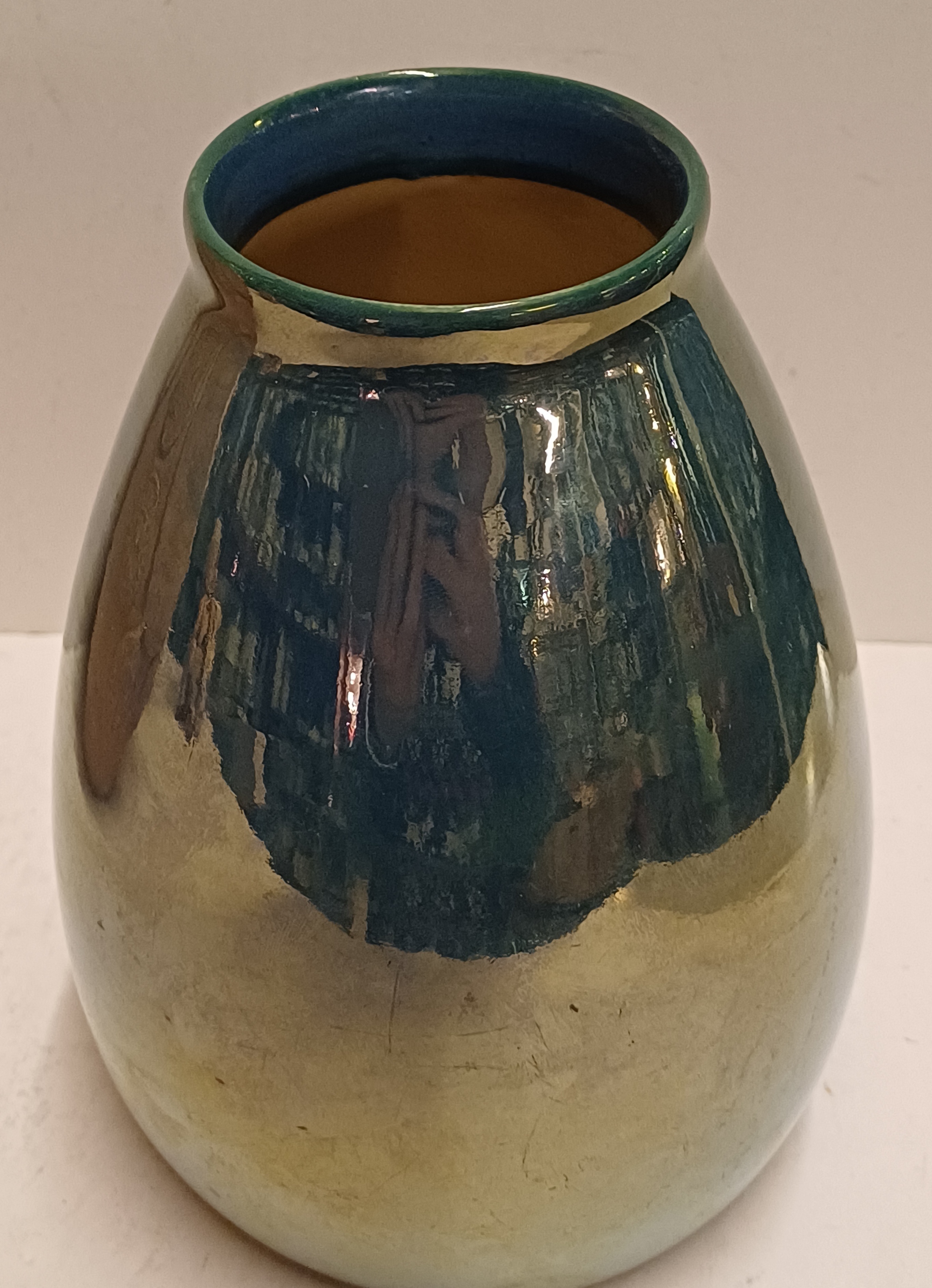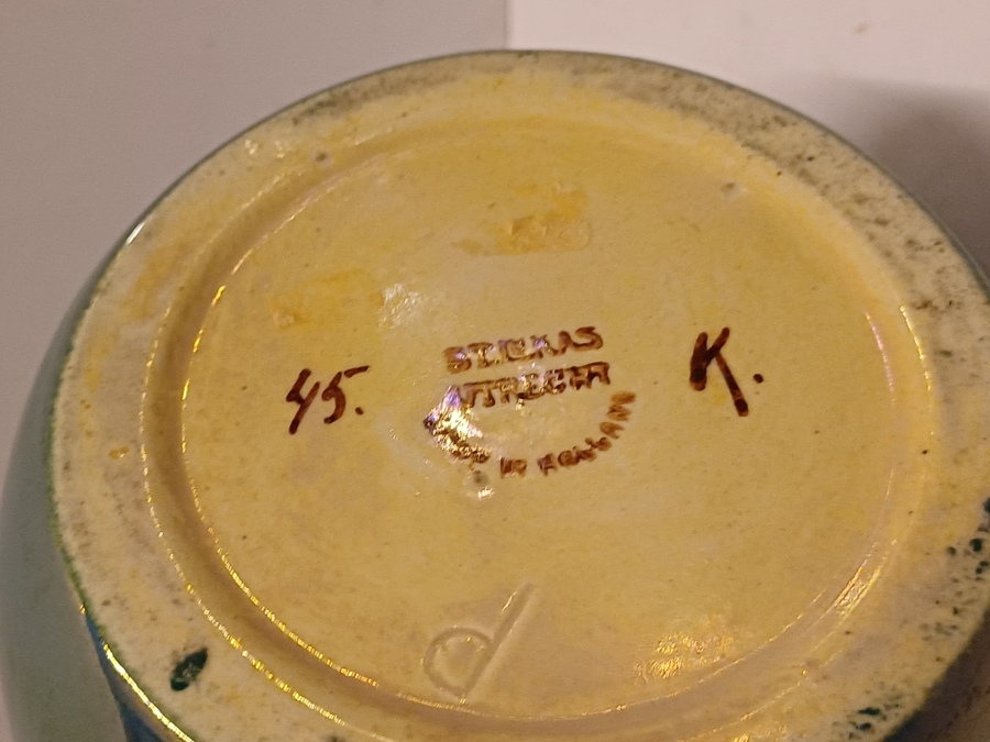 Gran jarrón de Sint Lucas con esmalte azul de lustre. Base firmada, número de modelo 45 y código de color K.