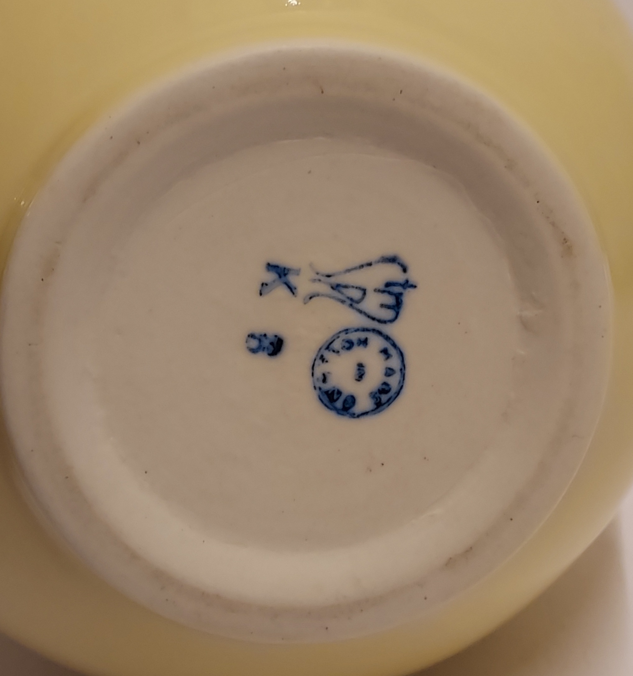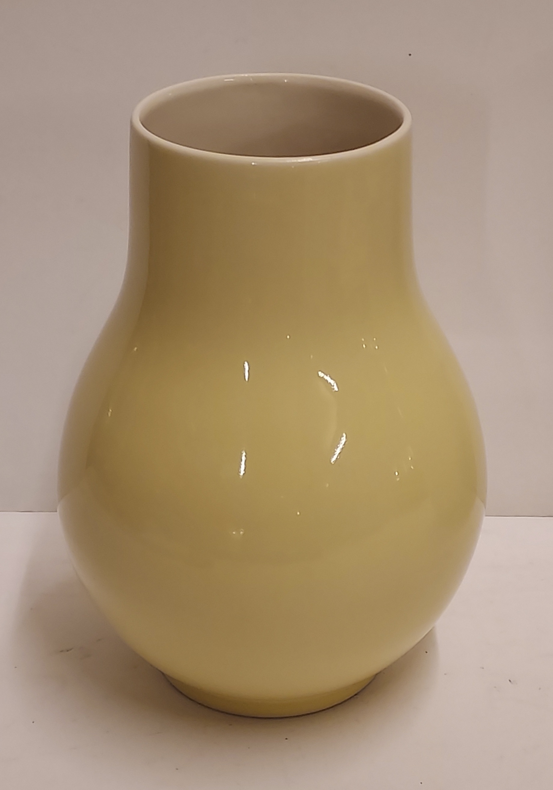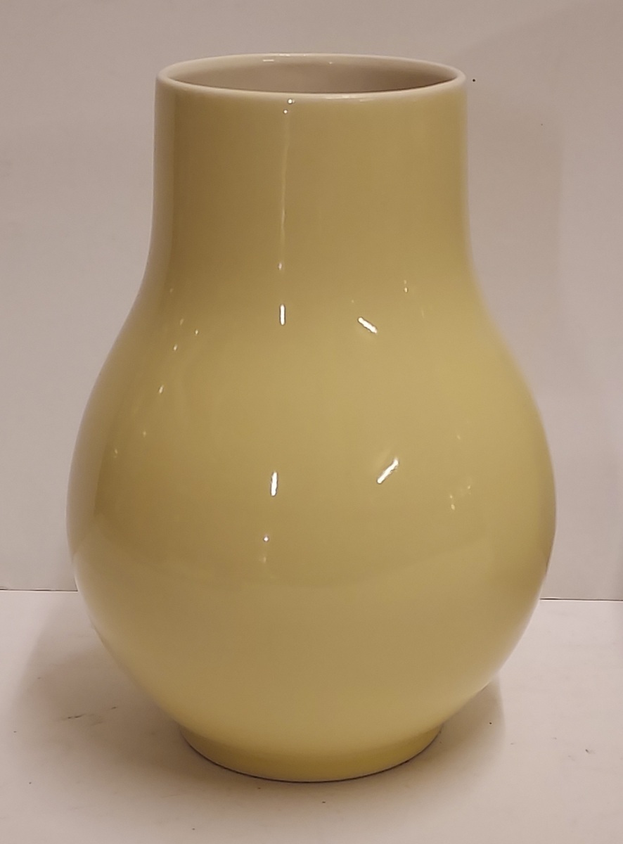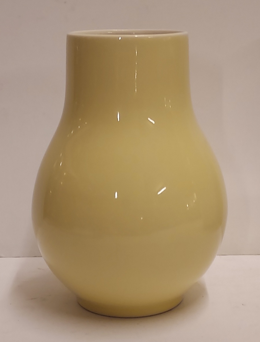 Jarrón esférico con esmalte amarillo. Diseño de Han Knaap, parte inferior con marca de fábrica Sint Maarten.