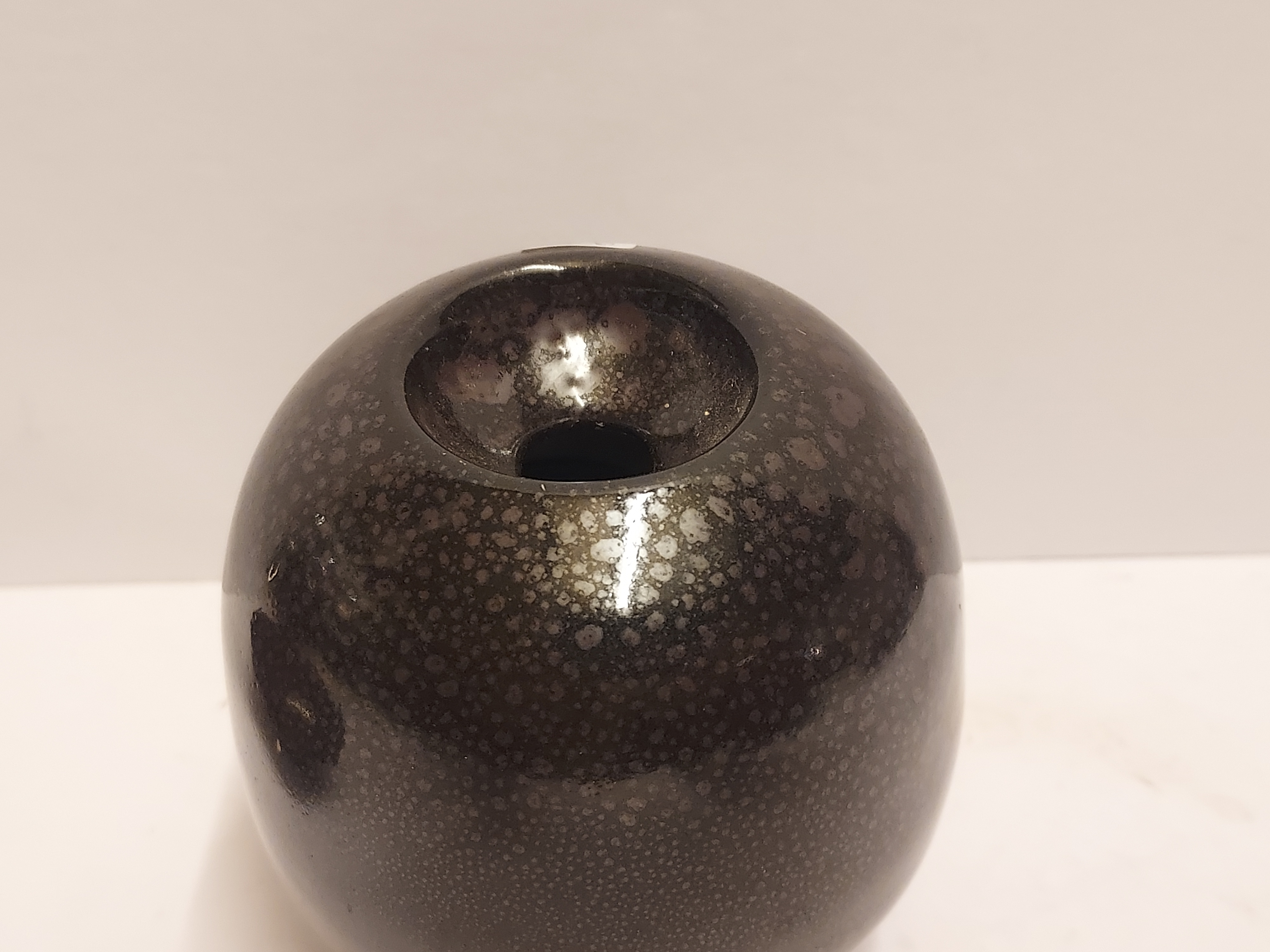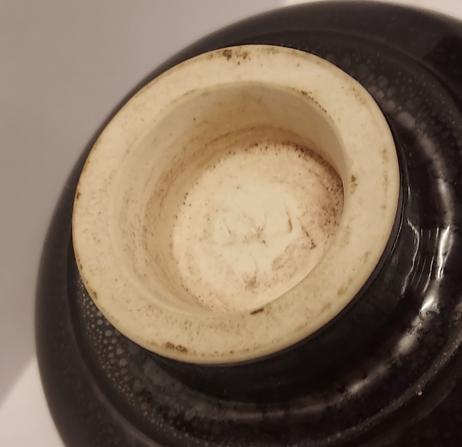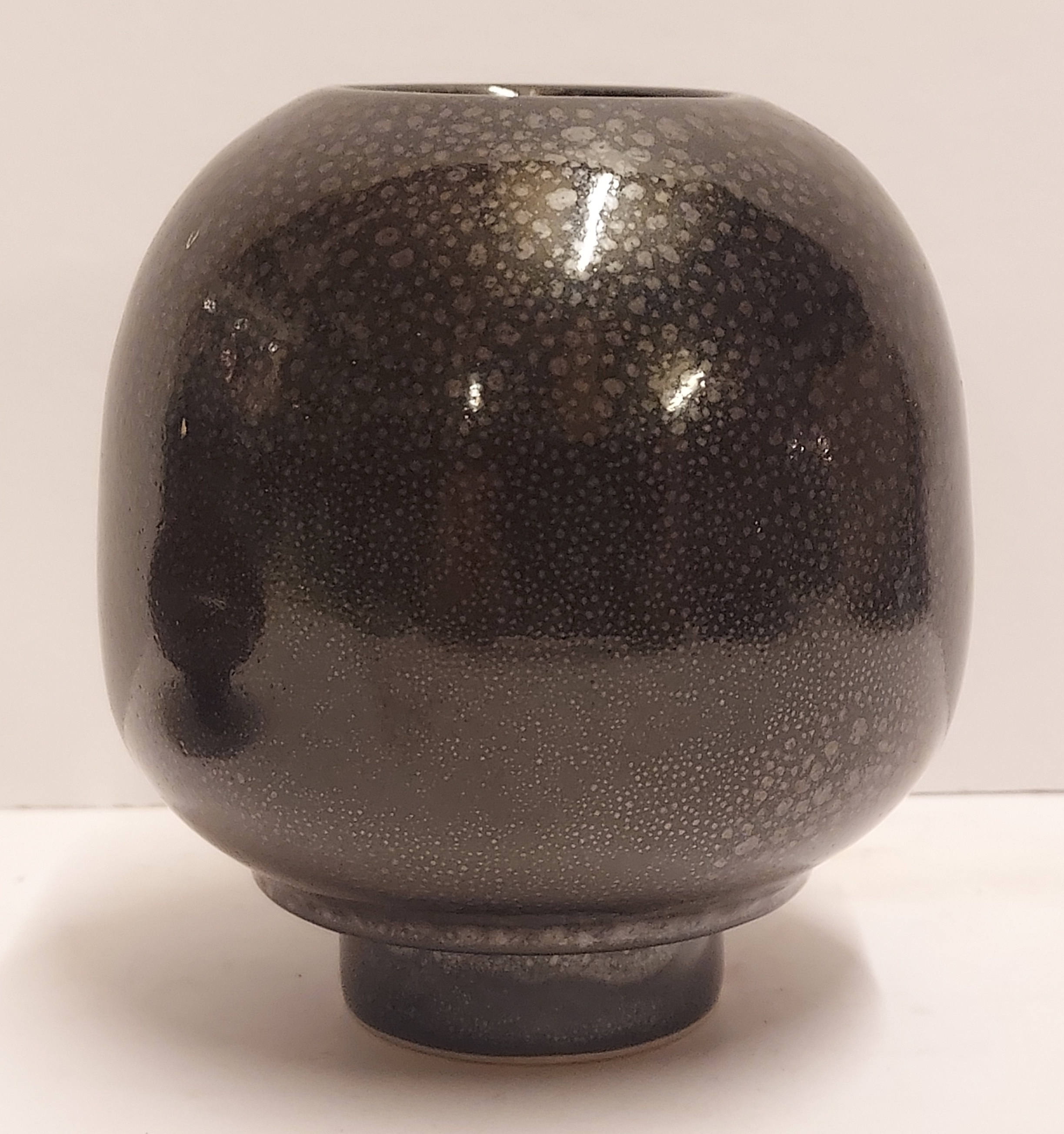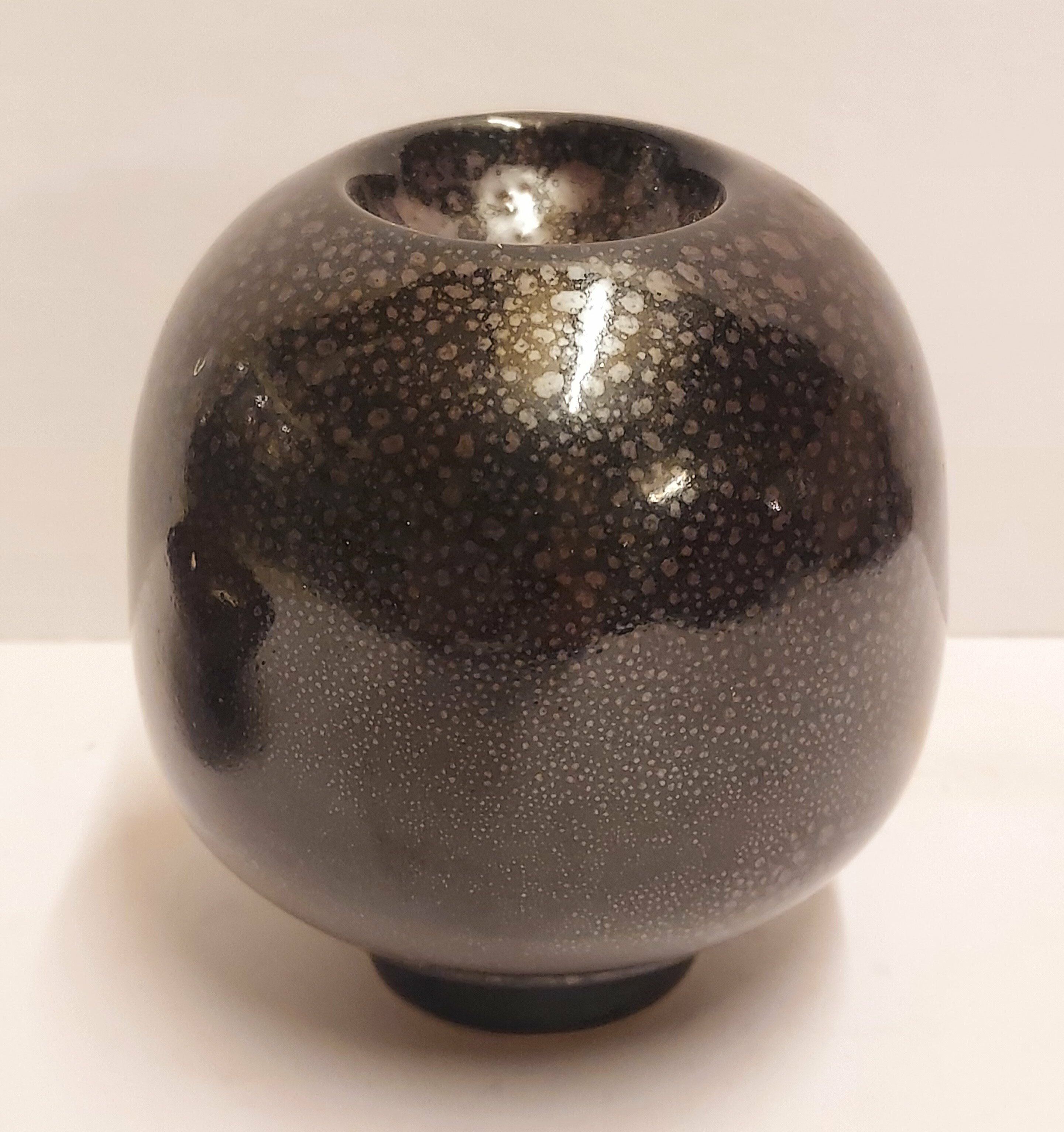Jarrón de gres con esmalte moteado negro. Firmado en la parte inferior.