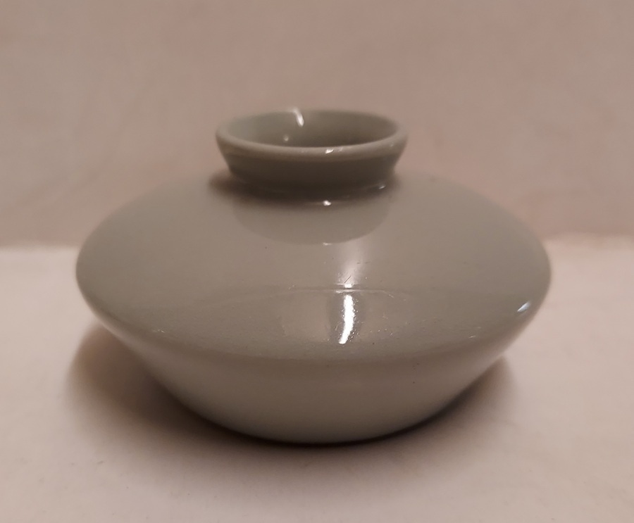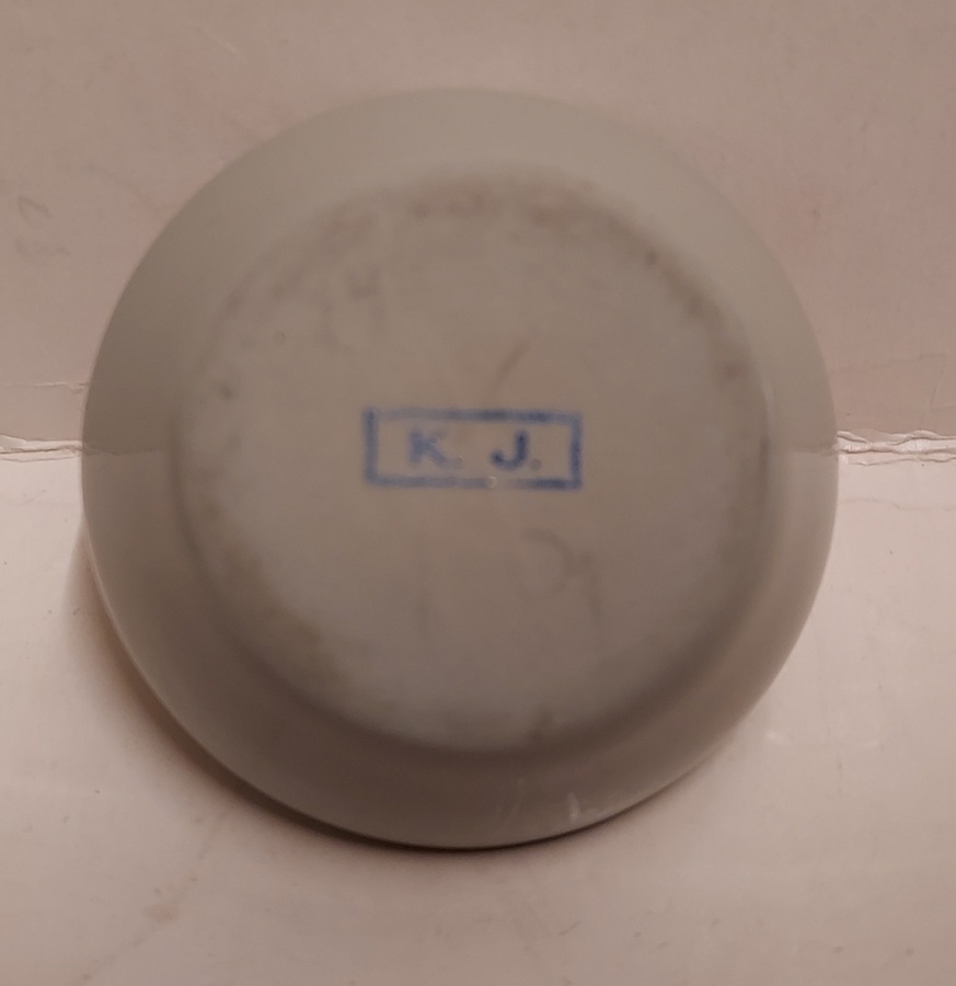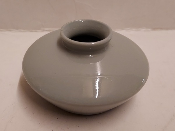 Jarrón con esmalte celadón gris. Parte inferior con marca K.J.