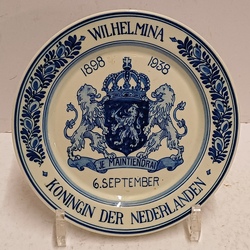 Herdenkingsbord H.M. Koningin Wilhelmina 1898-1938, Plateelbakkerij Schoonhoven