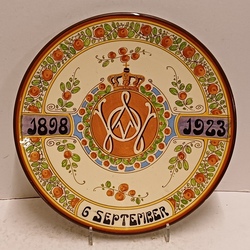 Herdenkingsbord 1898-1923 Jubileum Koningin Wilhelmina, Plateelbakkerij Ivora