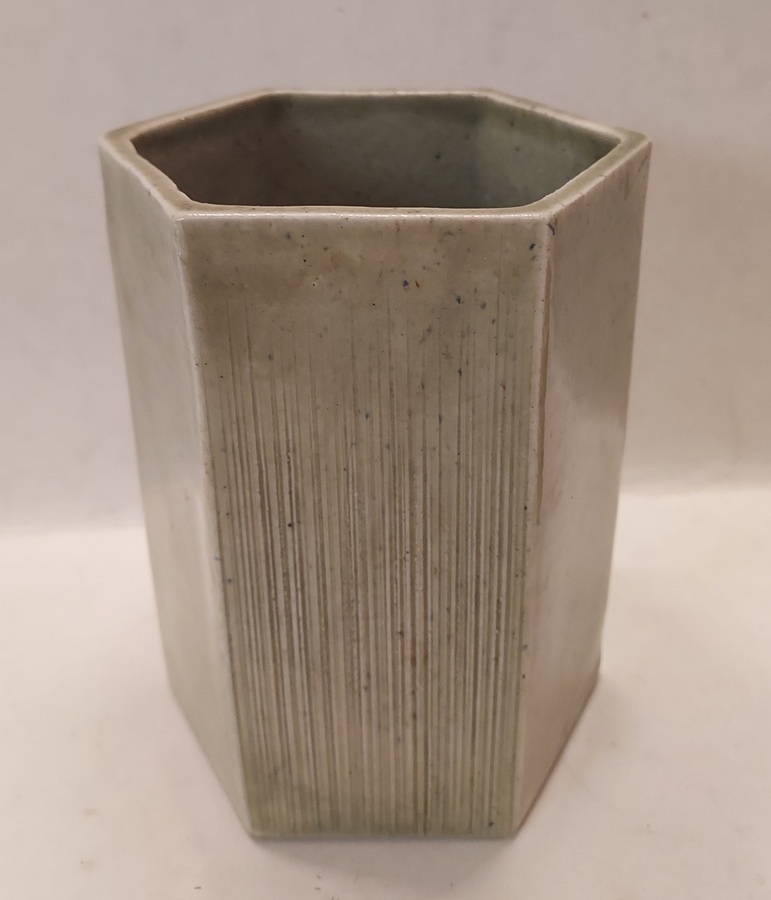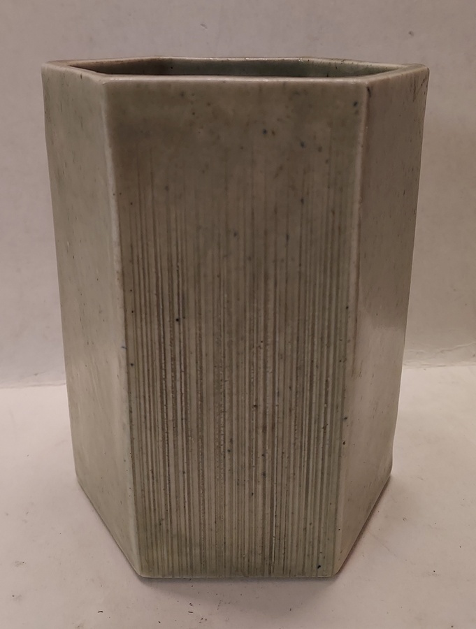 Vase octogonal avec glaçure céladon verte et décoration incisée.