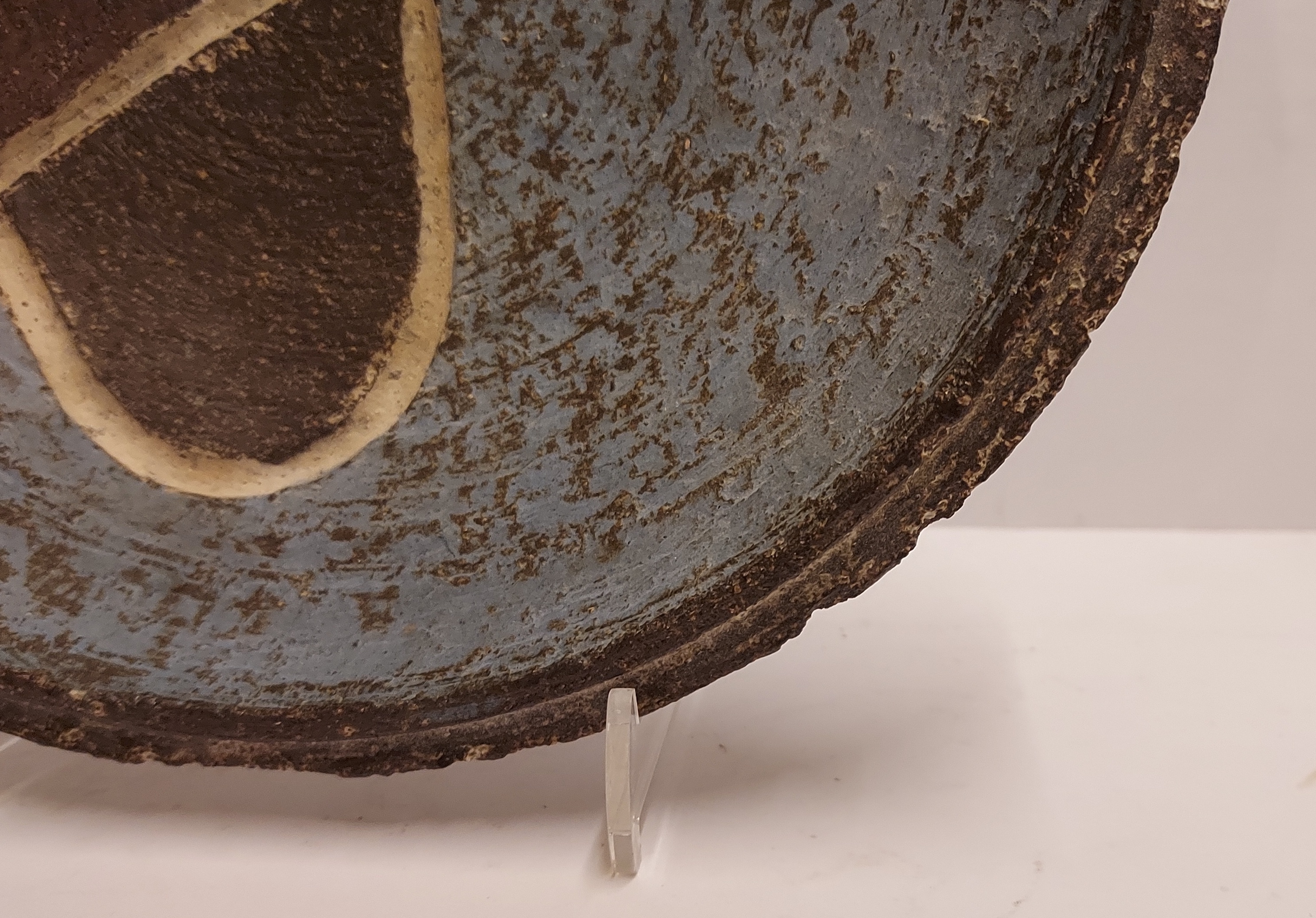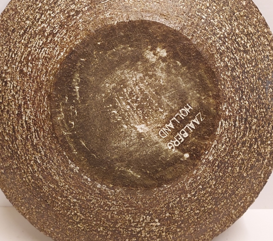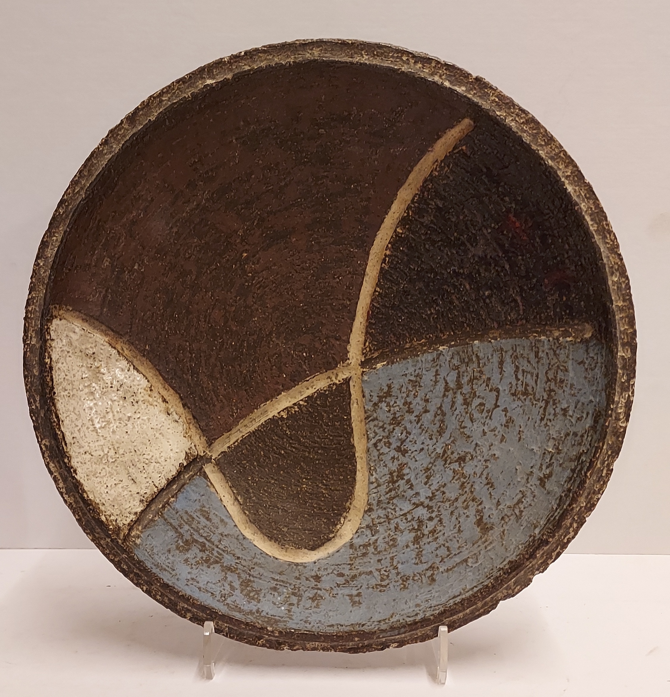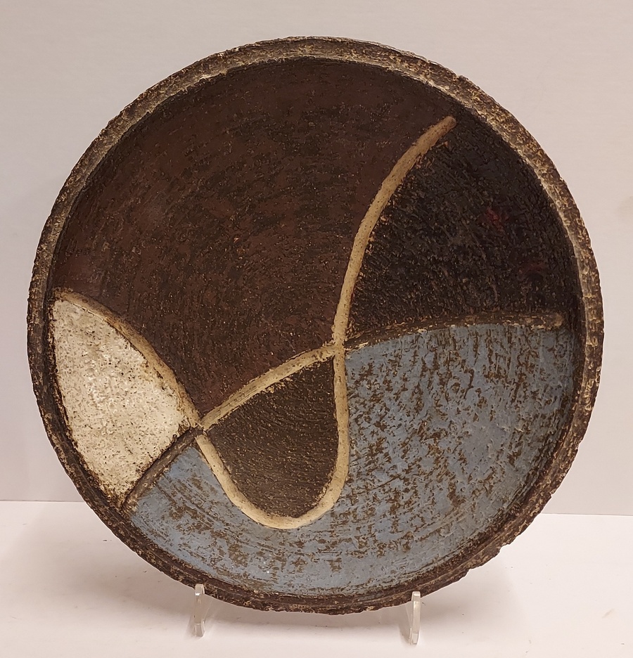 Assiette en terre cuite avec décoration abstraite. Design par Ru de Boer, avec tampon de la fabrique au verso.
