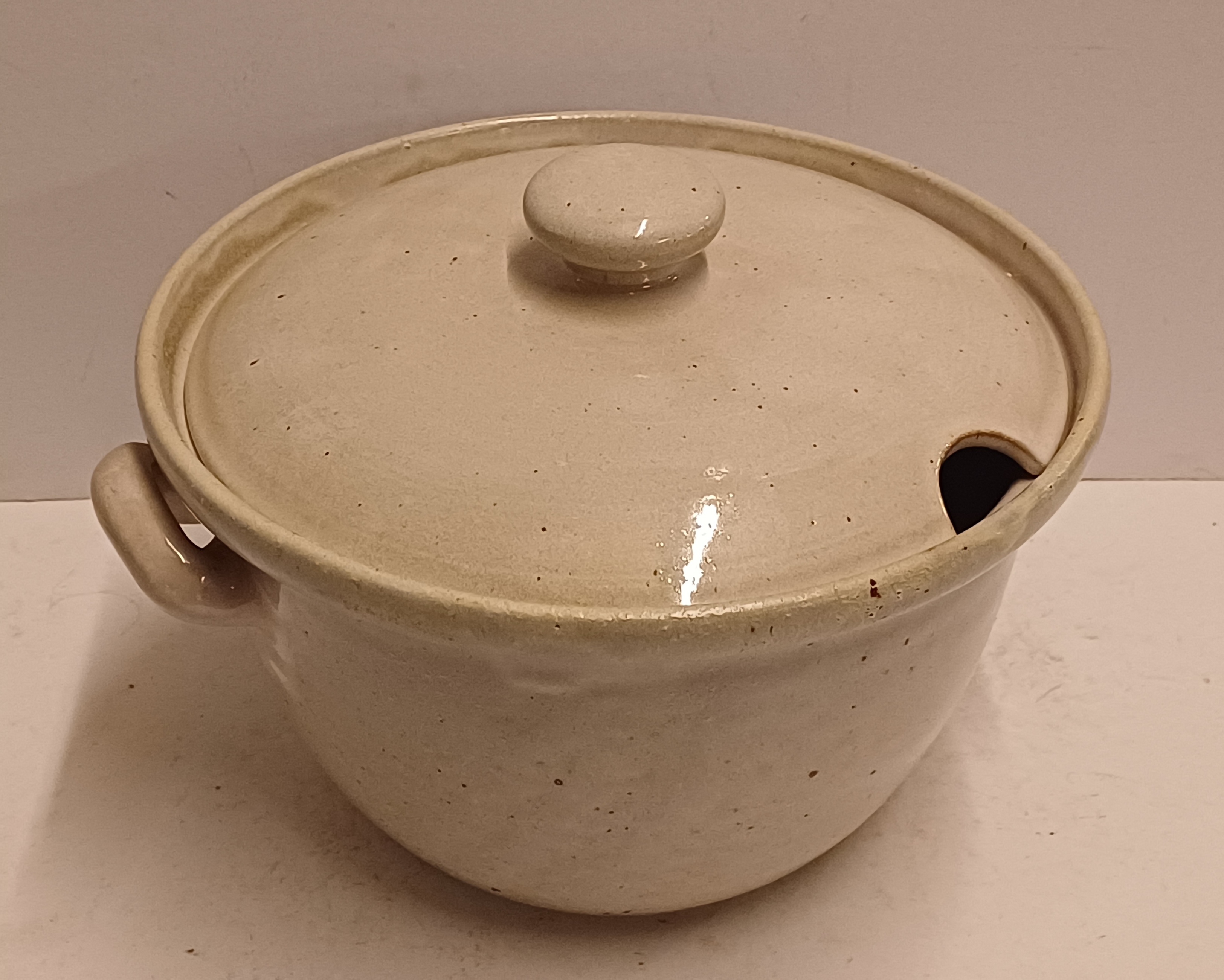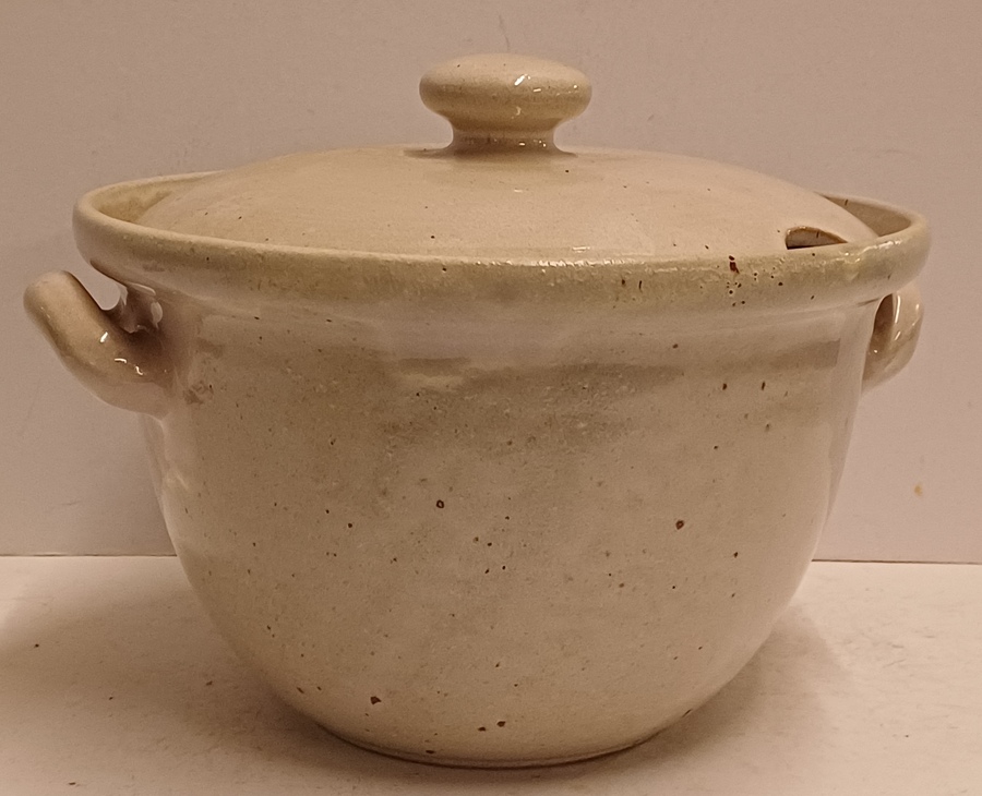 Terrine en terre cuite à pâte rouge avec un émail stannifère blanc. Dessous avec tampon Zaalberg. Vers 1935.