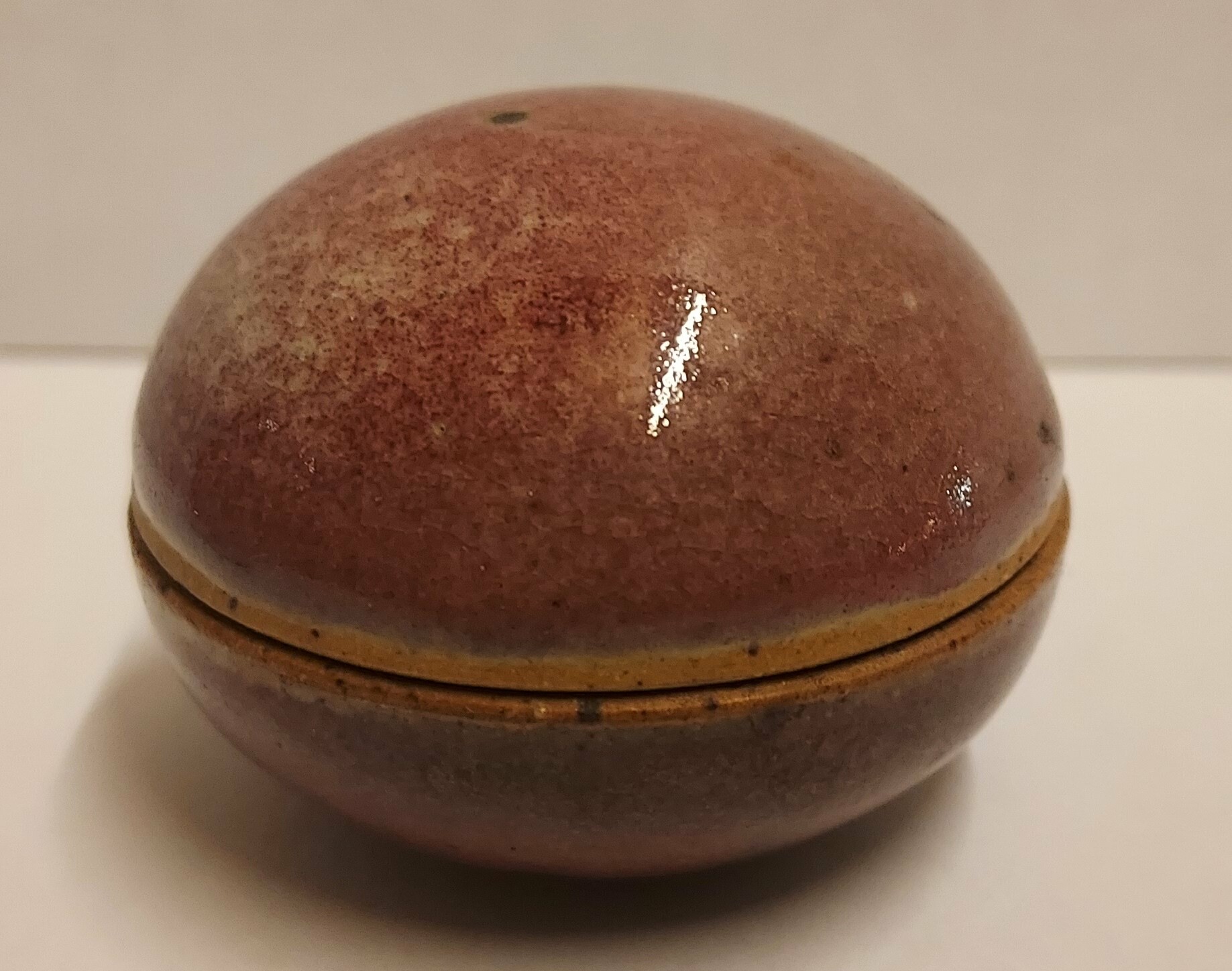Petite boîte avec couvercle bombé. Signée sur le dessous.